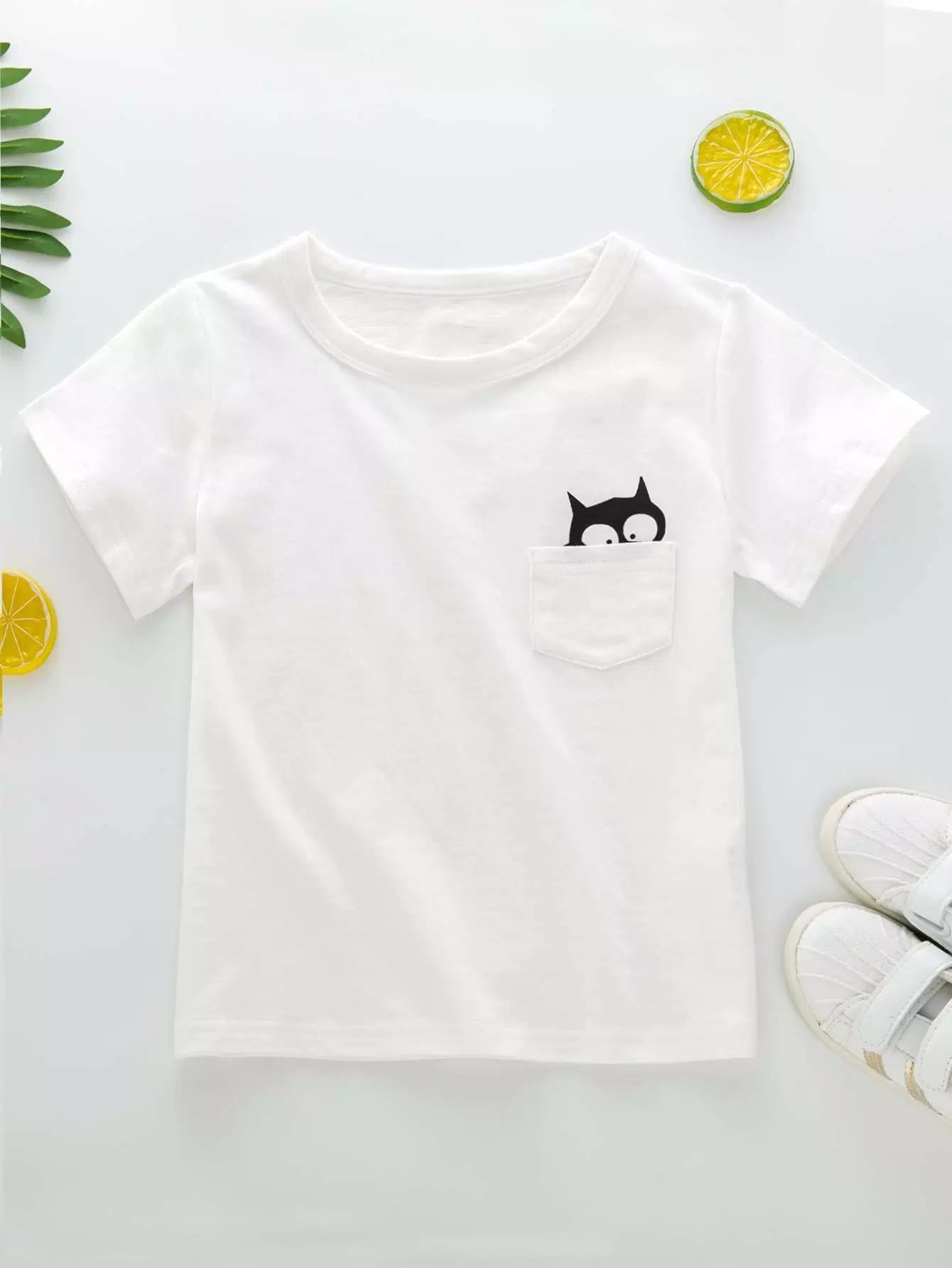 Kids - Toddler Boys Cartoon Cat Print Tee