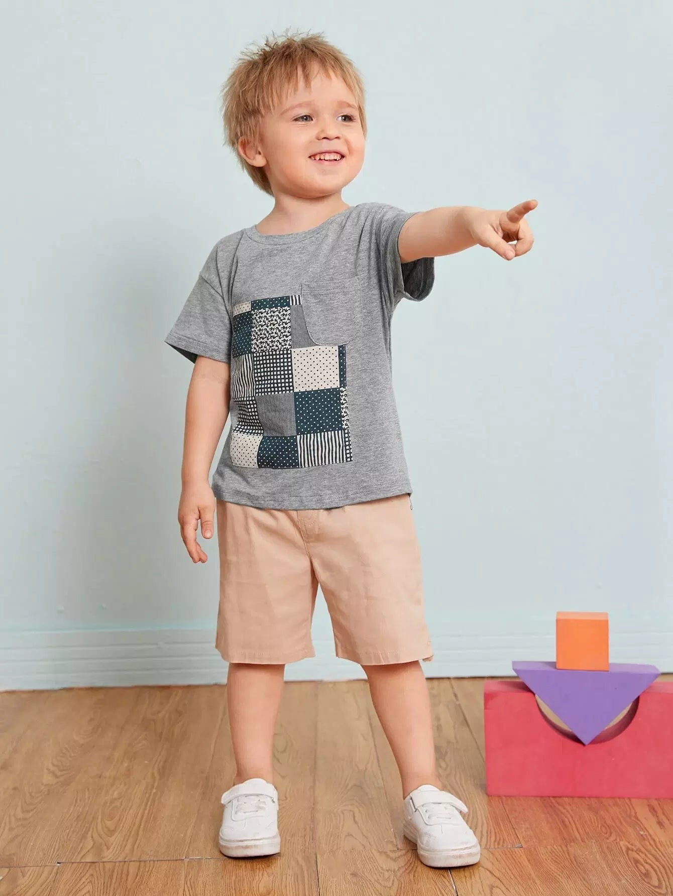 Toddler Boys Patchwork Print Pocket Detail Tee