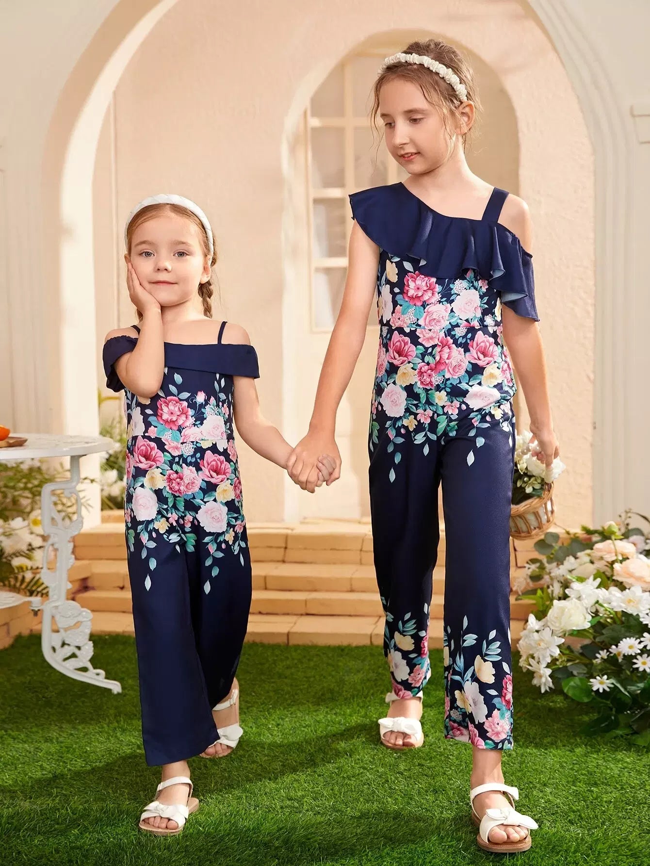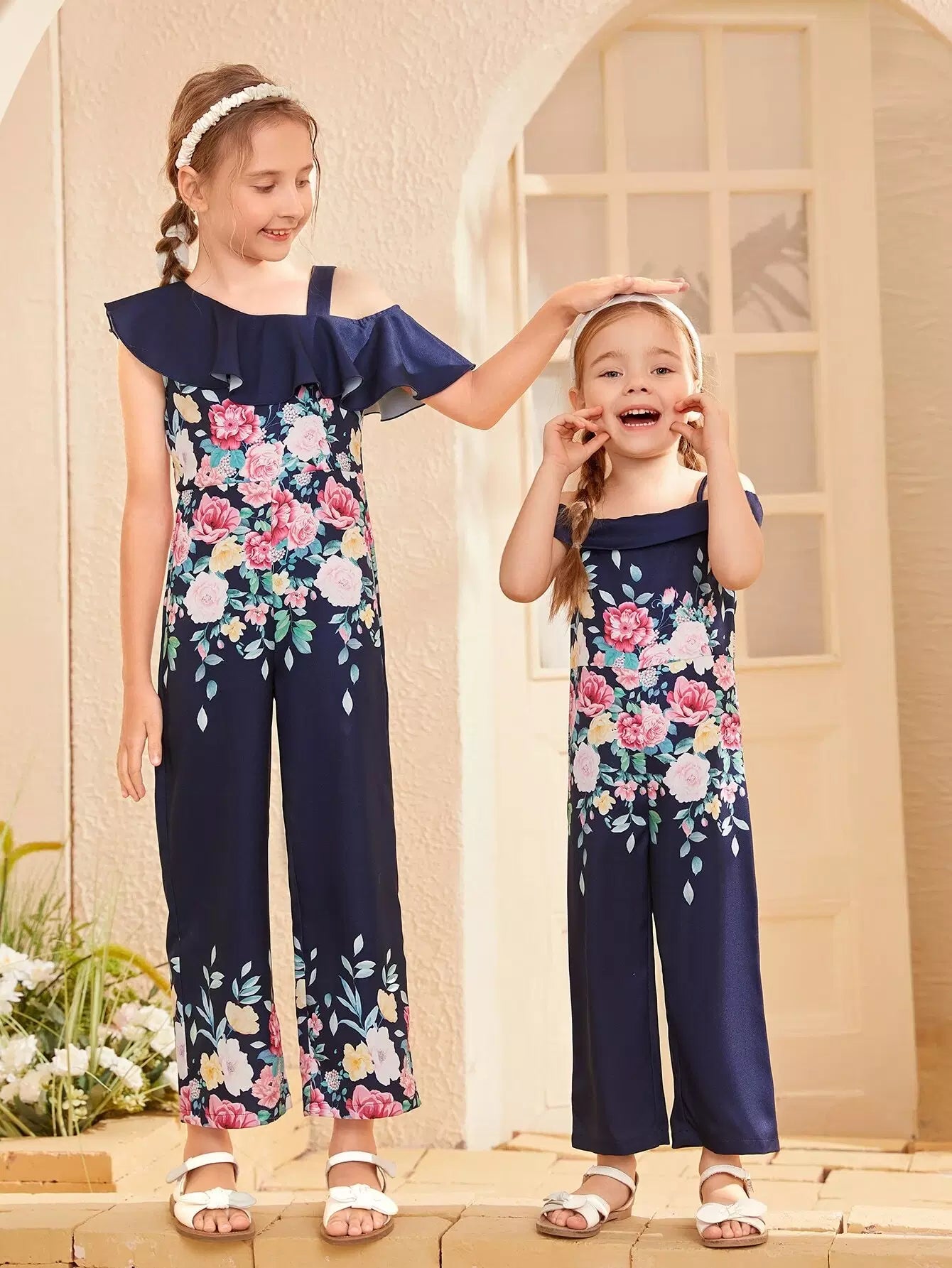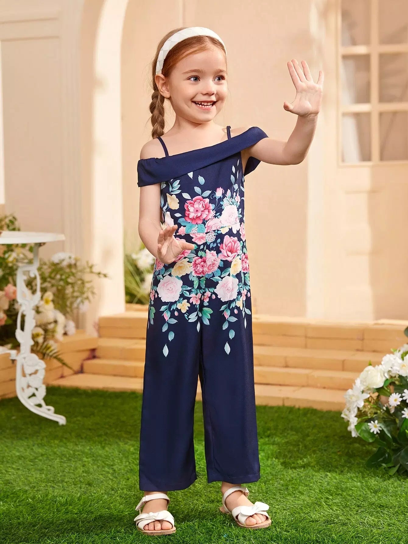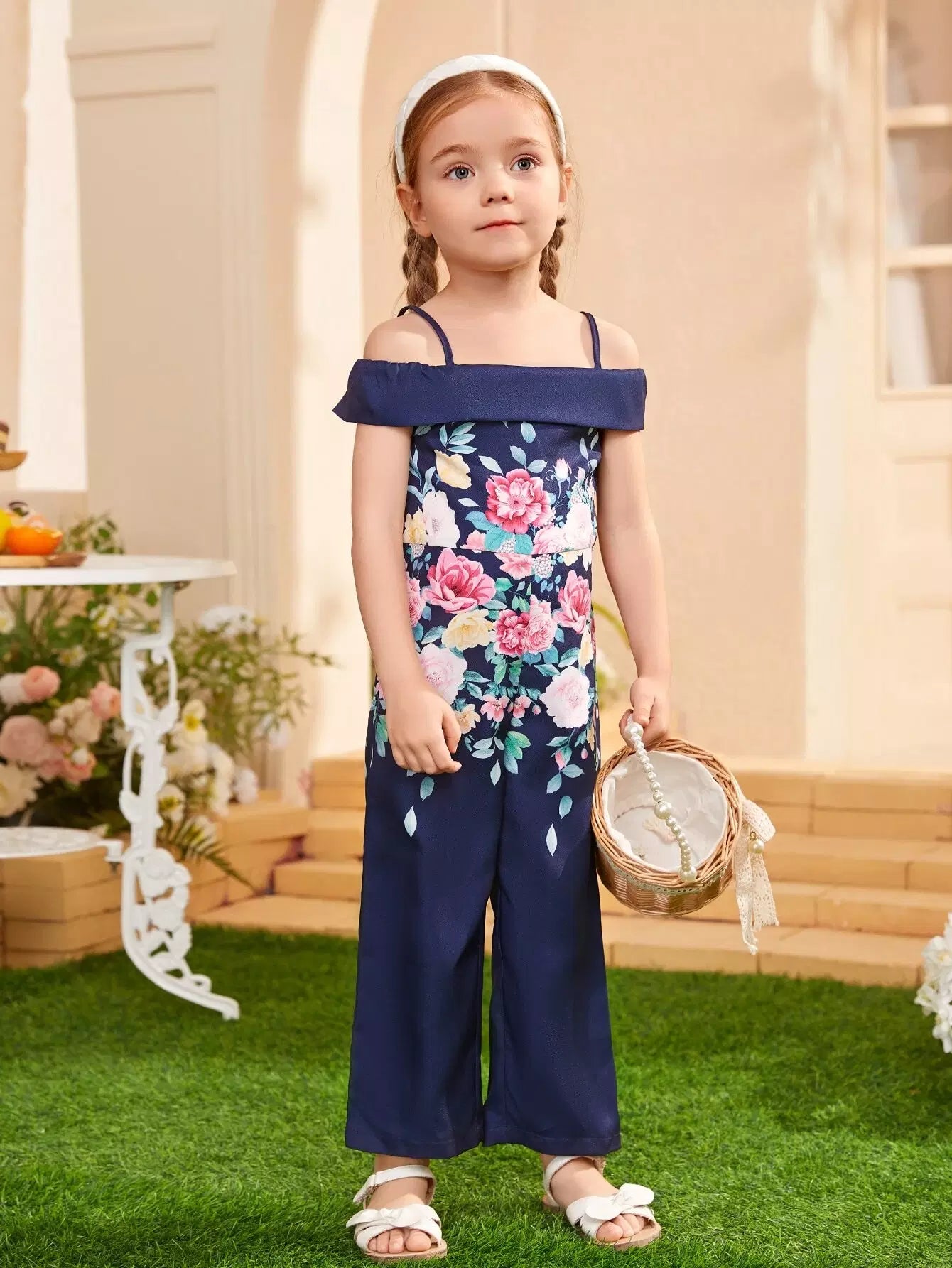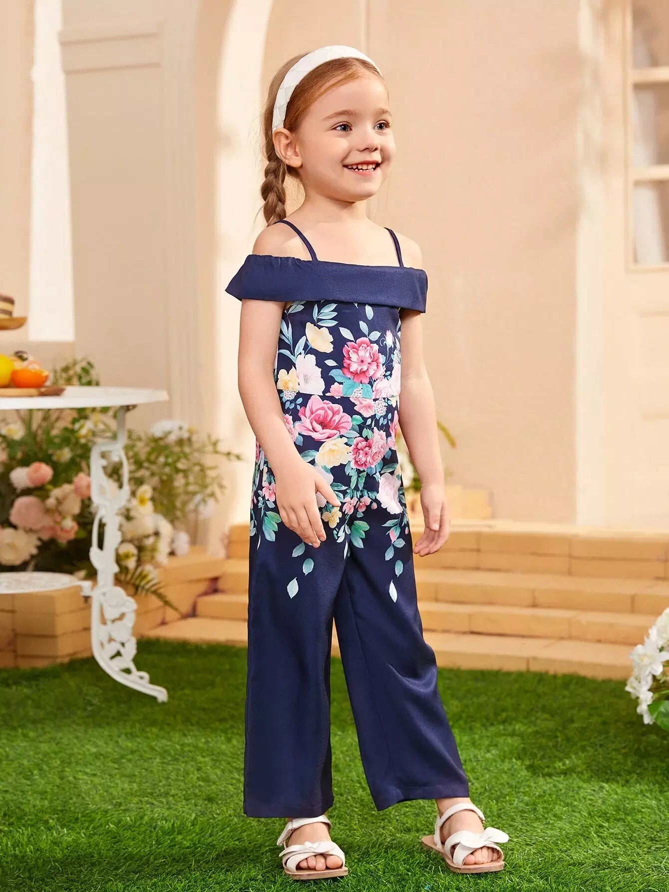 Toddler Girls 1pc Floral Print Cold Shoulder Jumpsuit