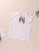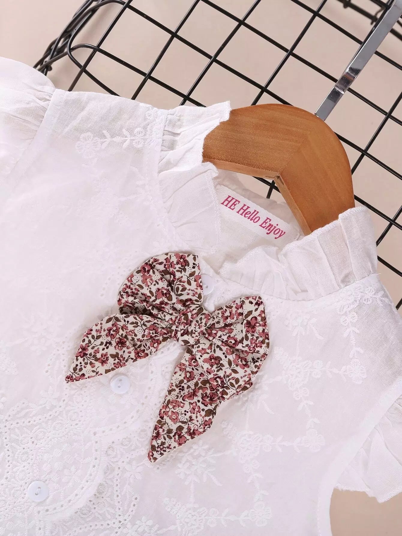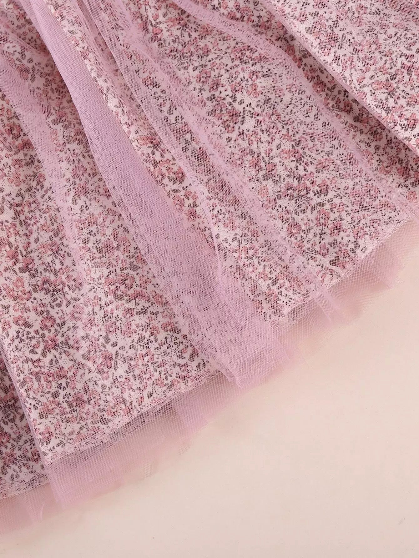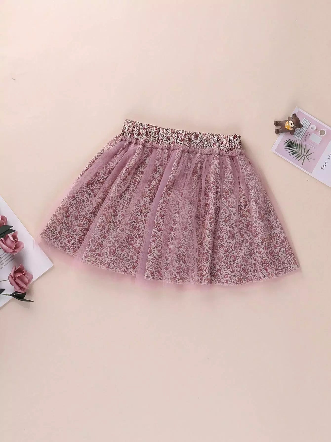 Toddler Girls Bow Front Blouse & Ditsy Floral Mesh Overlay Skirt