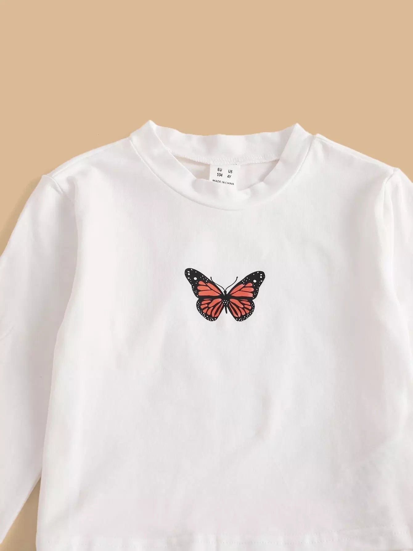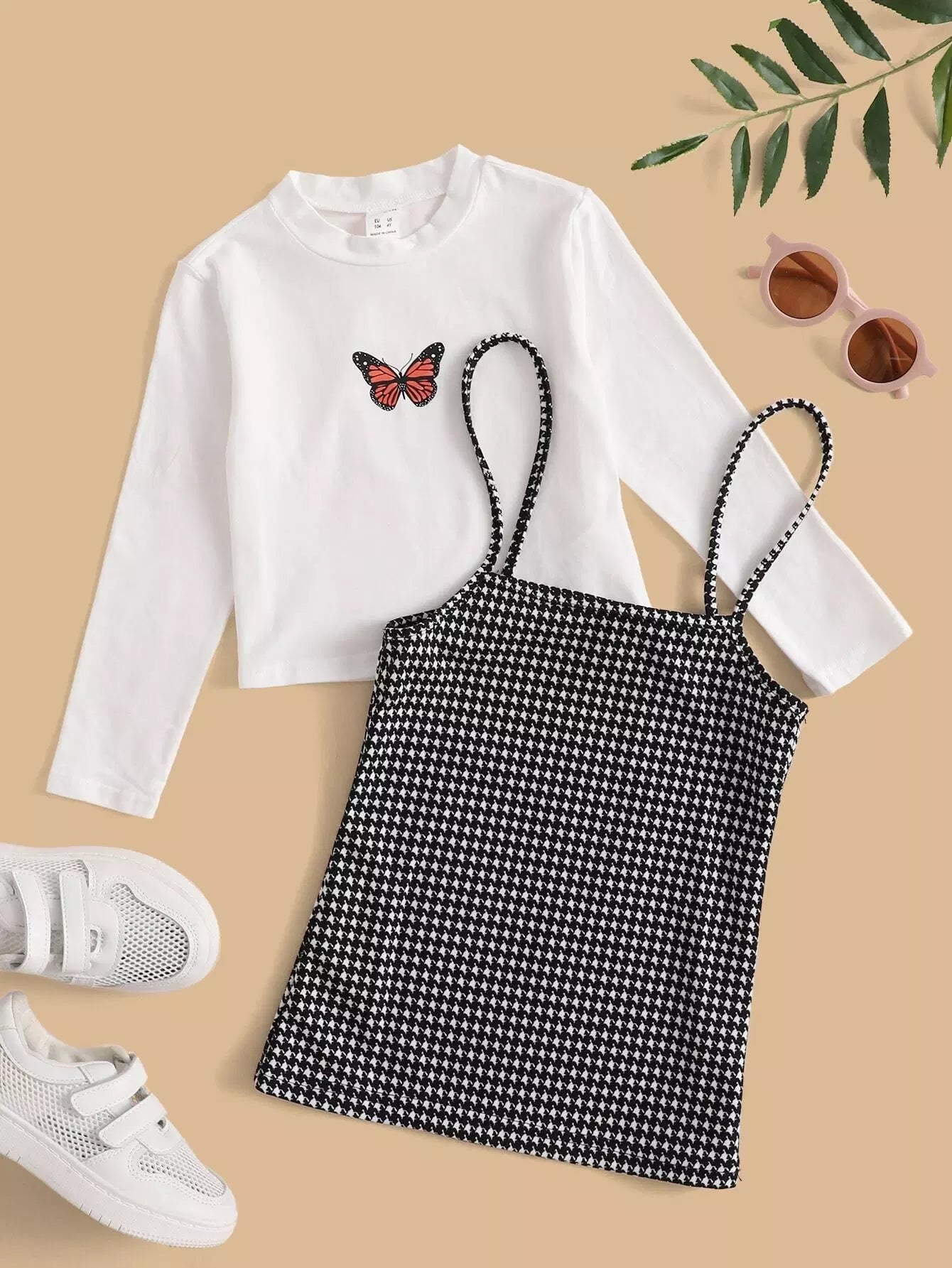 Toddler Girls Butterfly Print & Houndstooth Print Dress