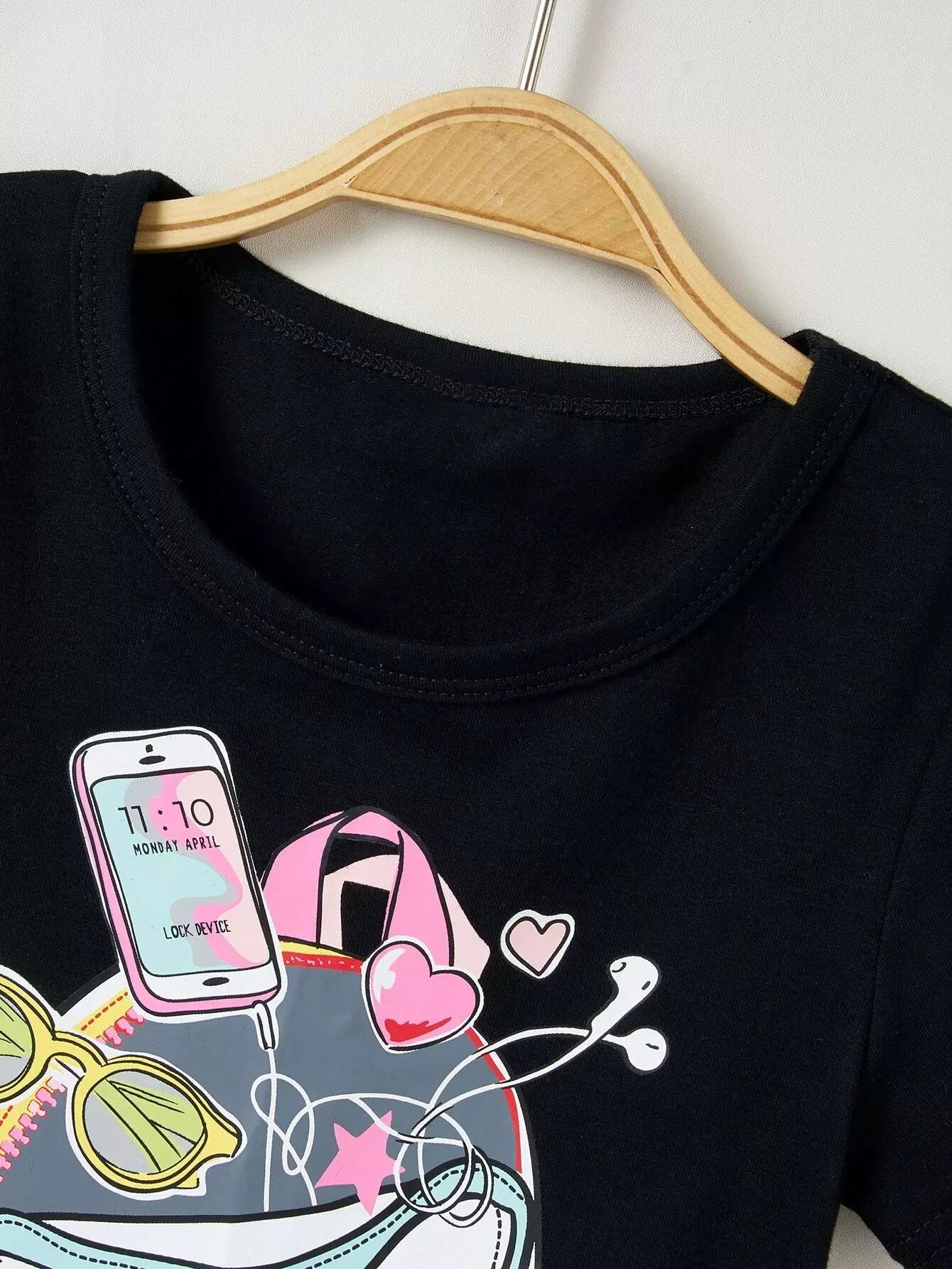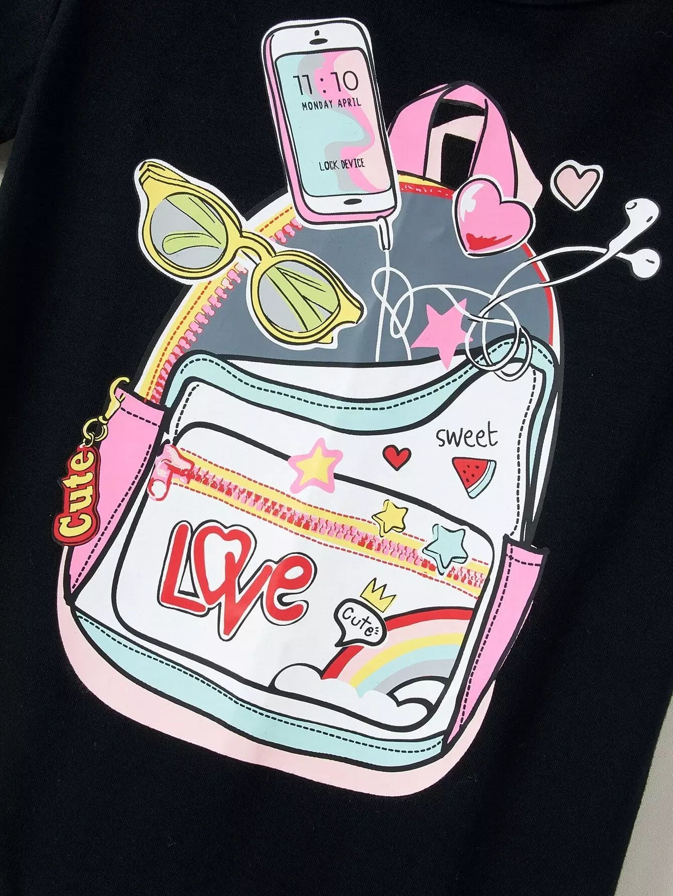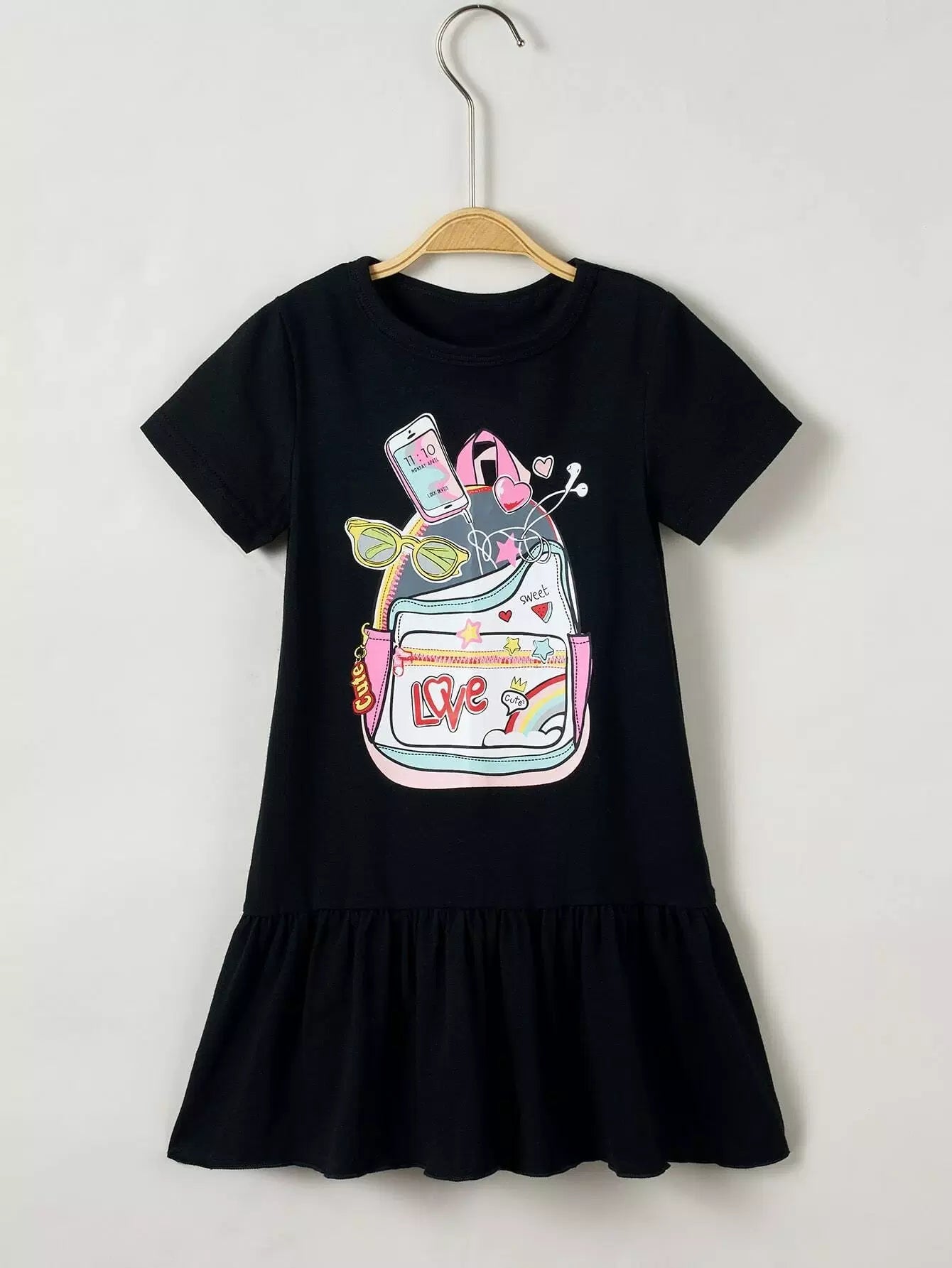 Toddler Girls Cartoon Graphic Ruffle Hem Dress