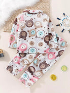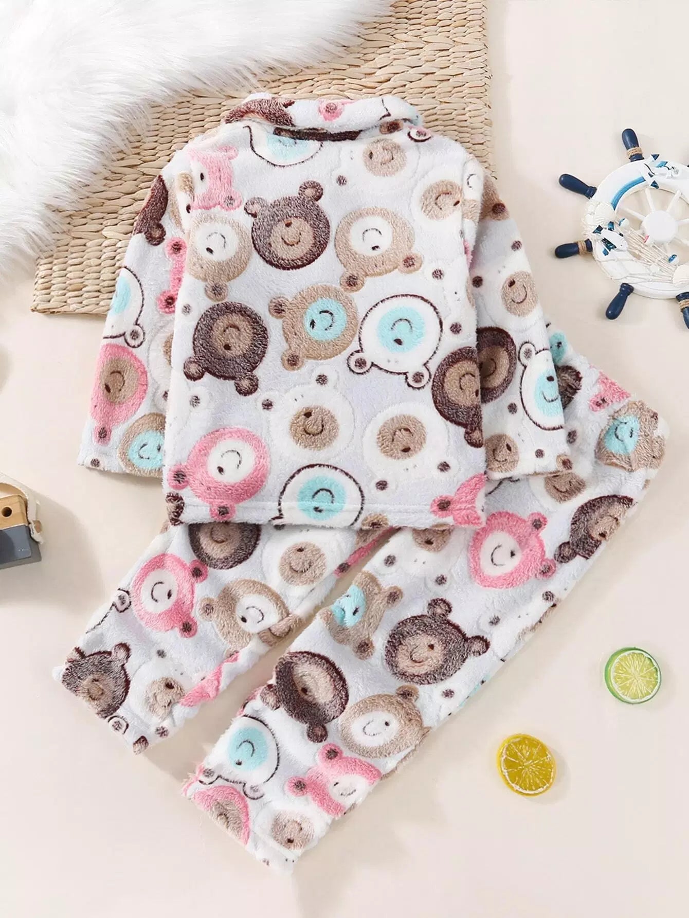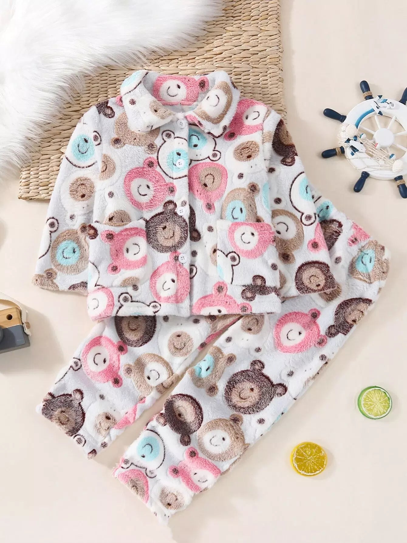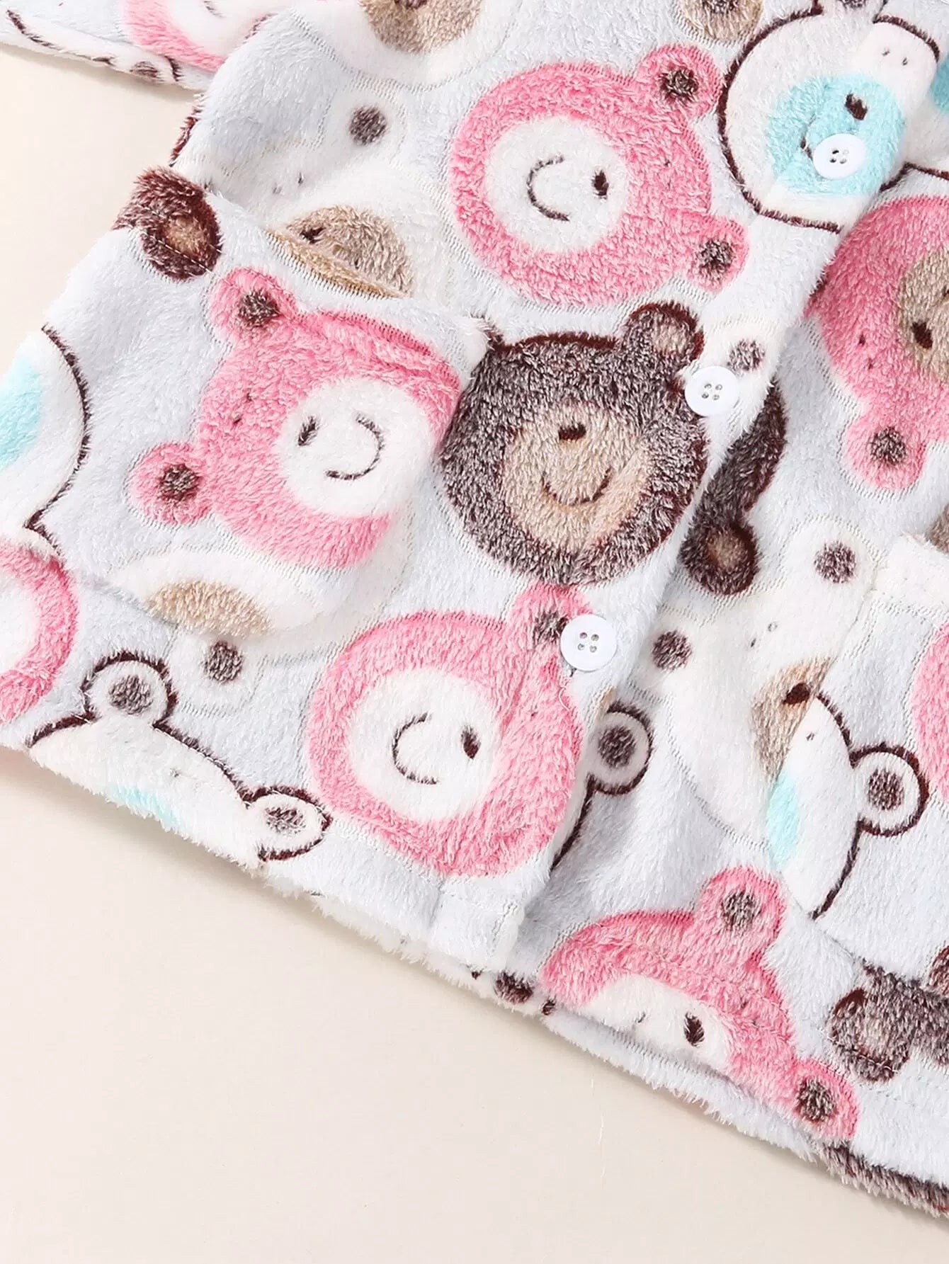 Toddler Girls Cartoon Pattern Dual Pocket Flannel Jacket & Pants