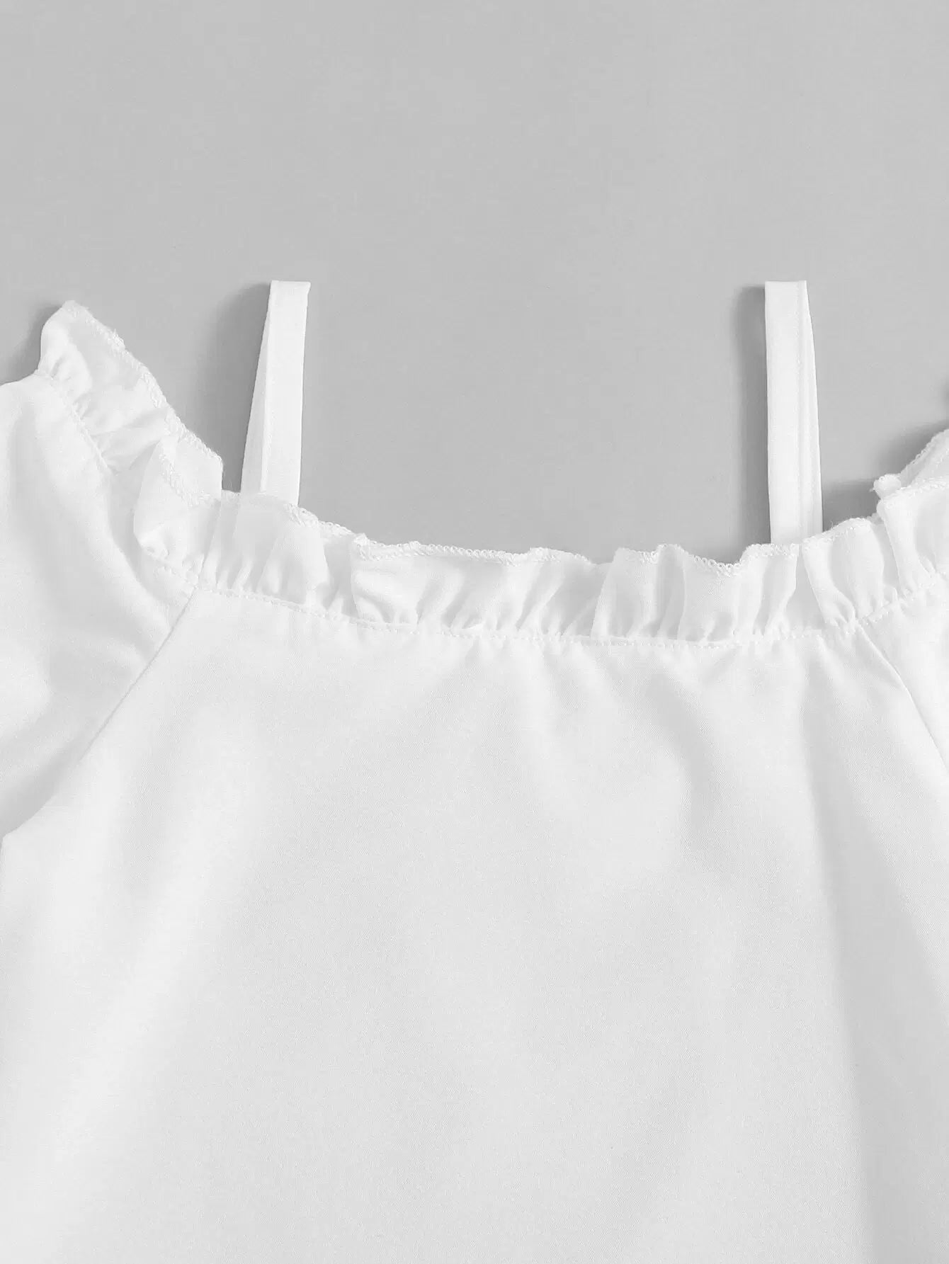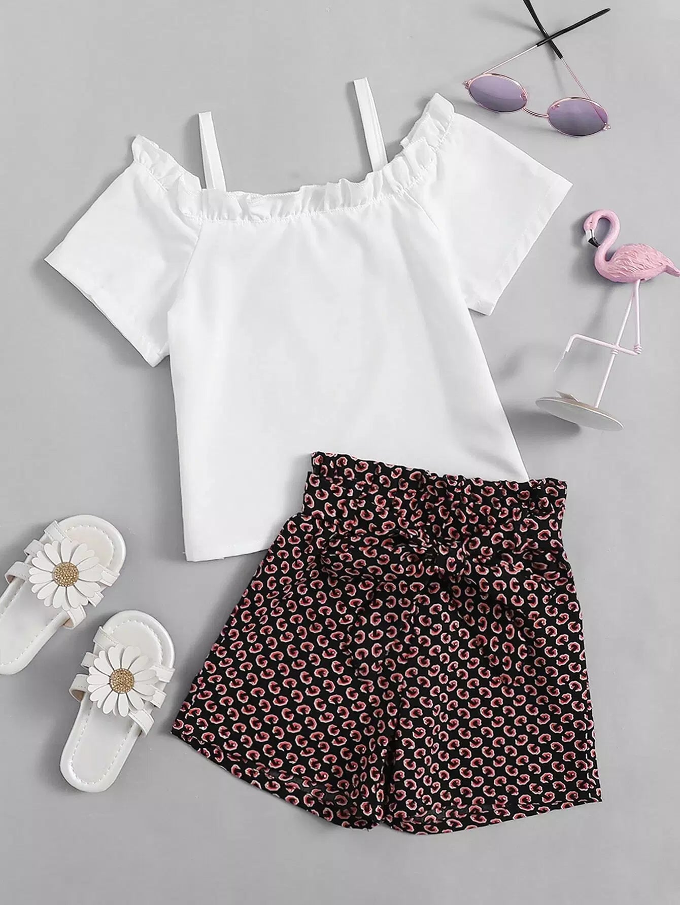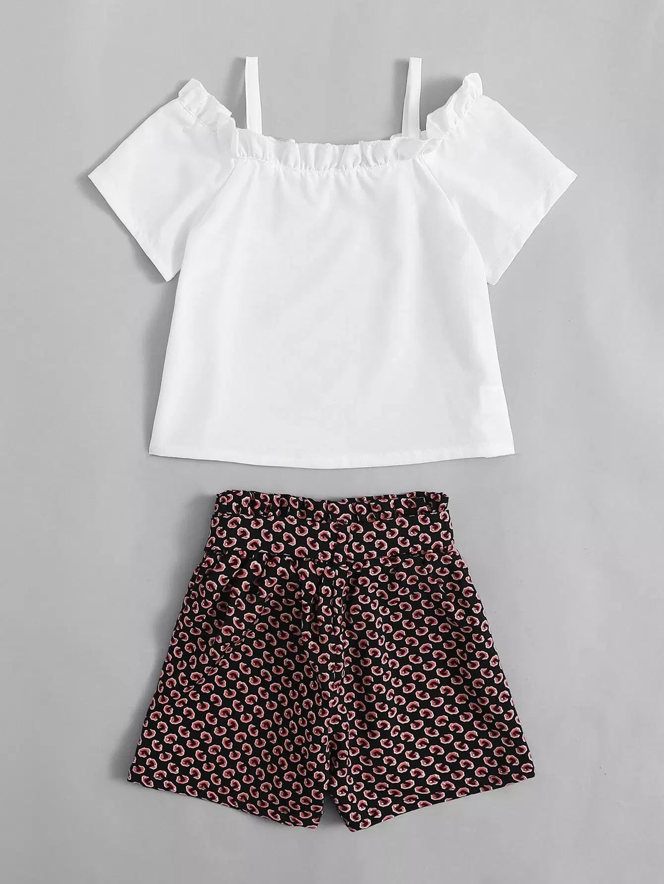 Toddler Girls Cold Shoulder Top Without Belted Paperbag Shorts