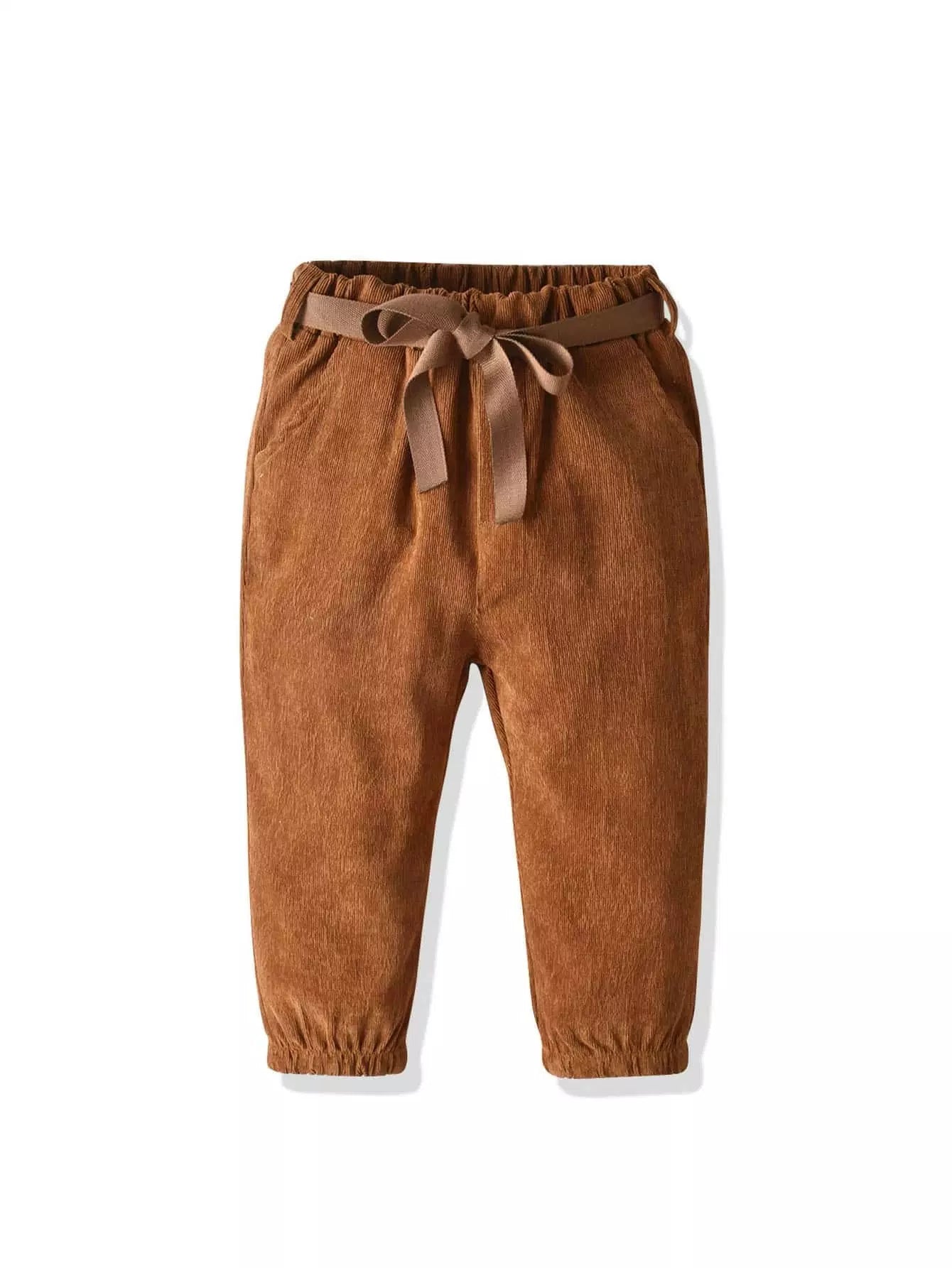 Toddler Girls Corduroy Self Tie Carrot Pants