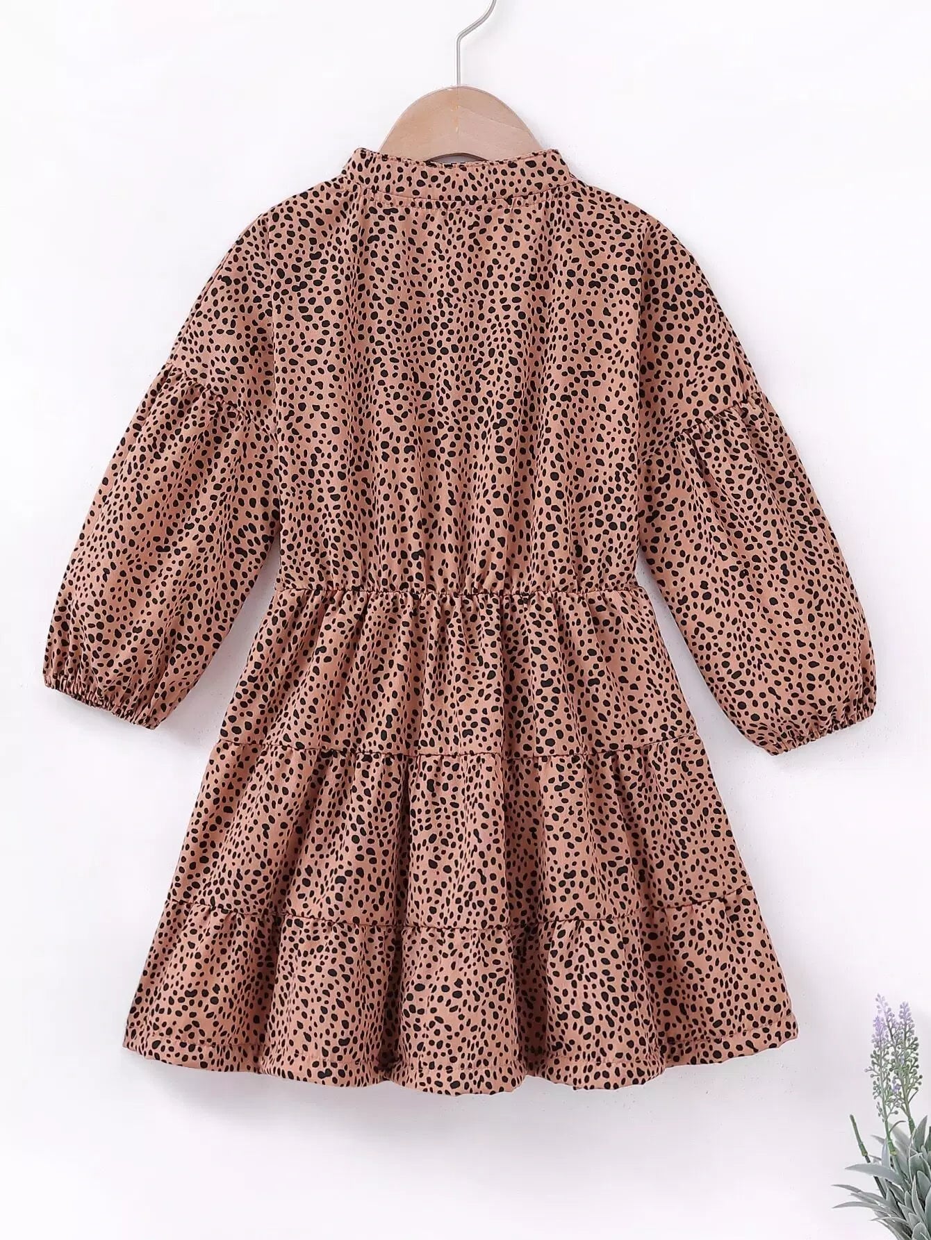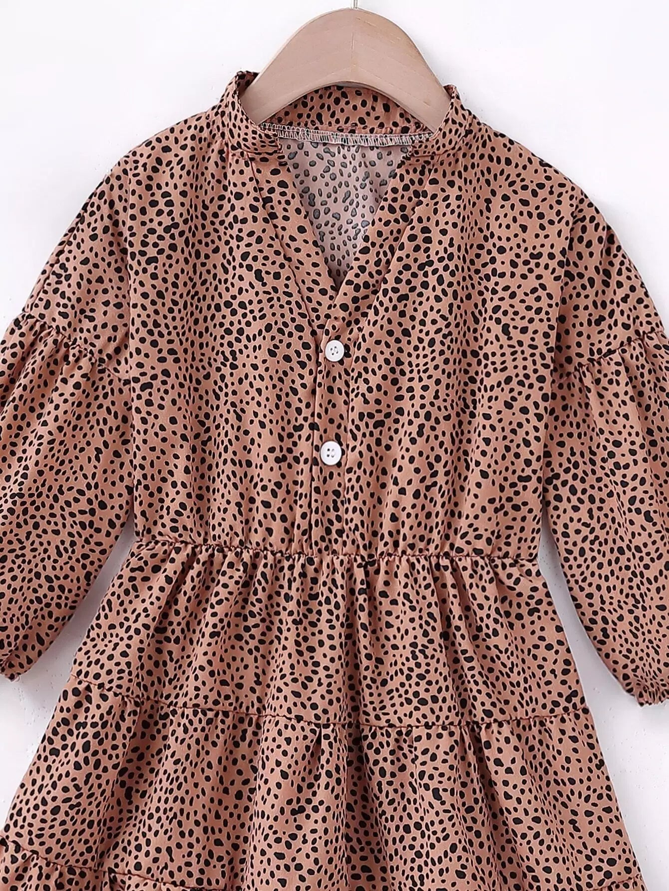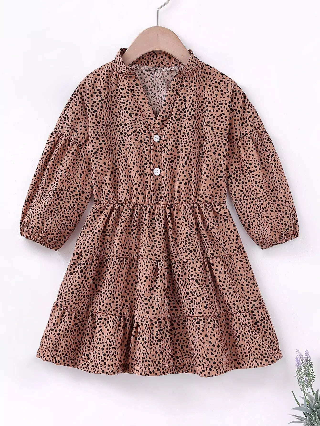Toddler Girls Dalmatian Print Lantern Sleeve Ruffle Hem Dress