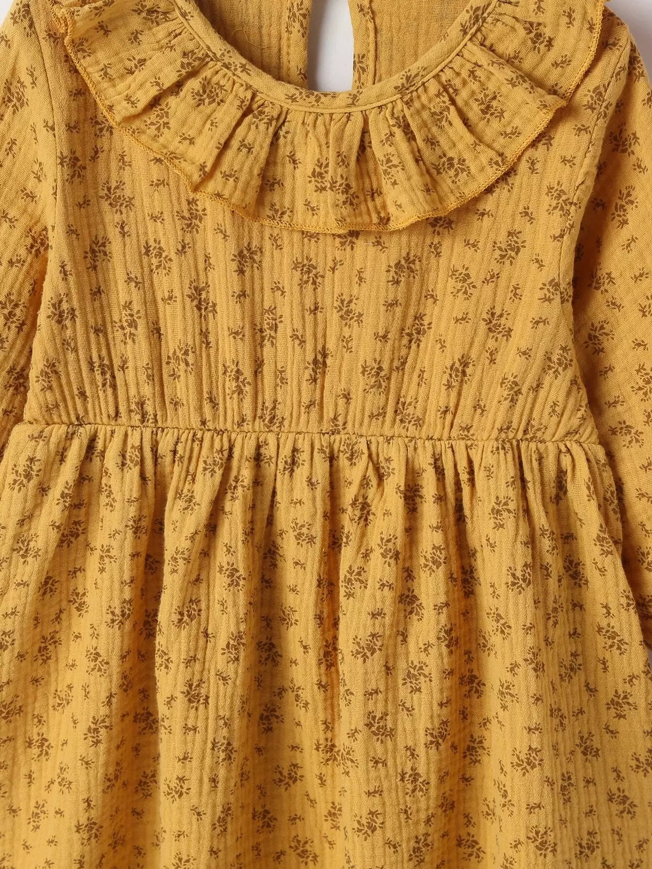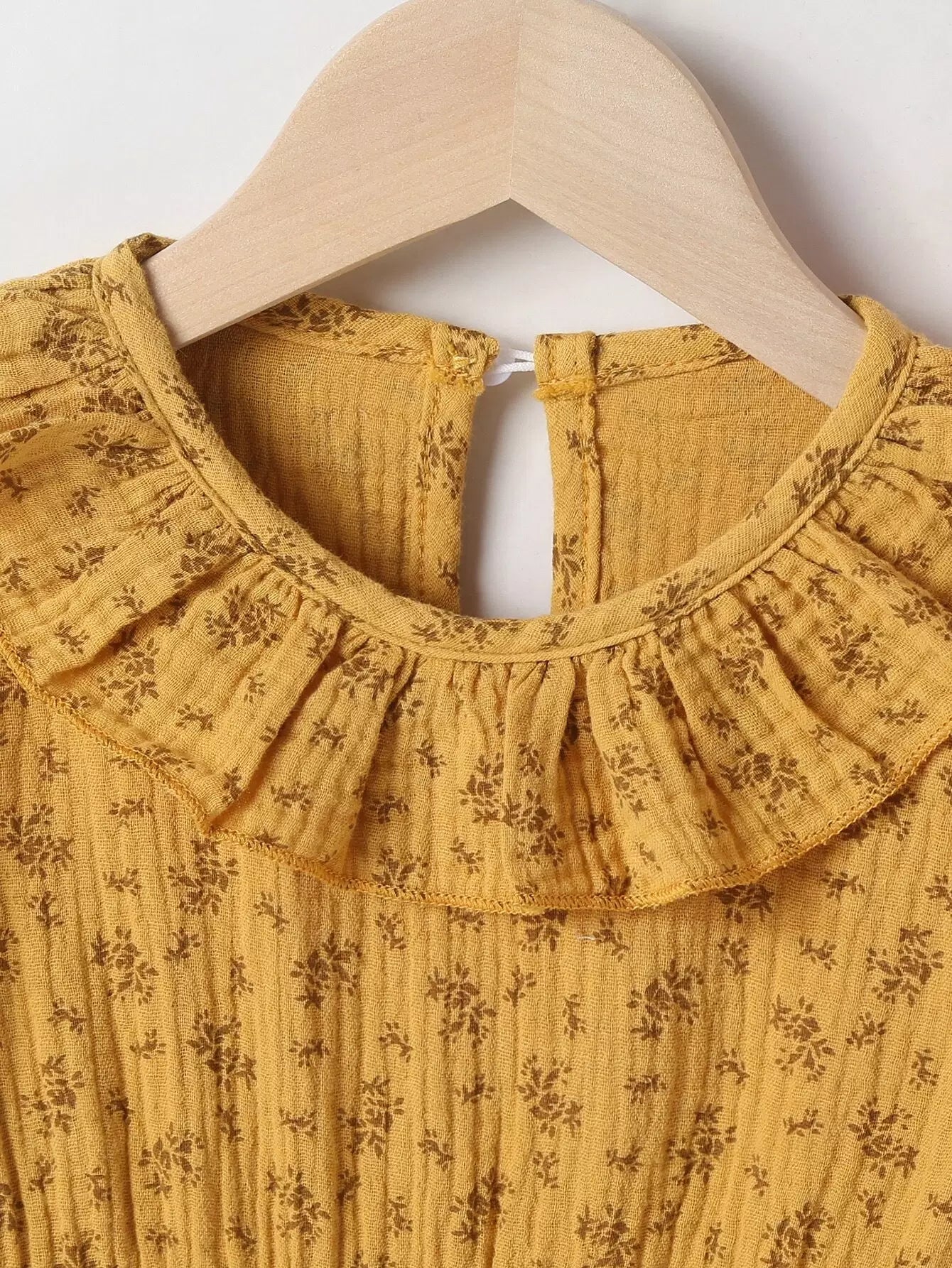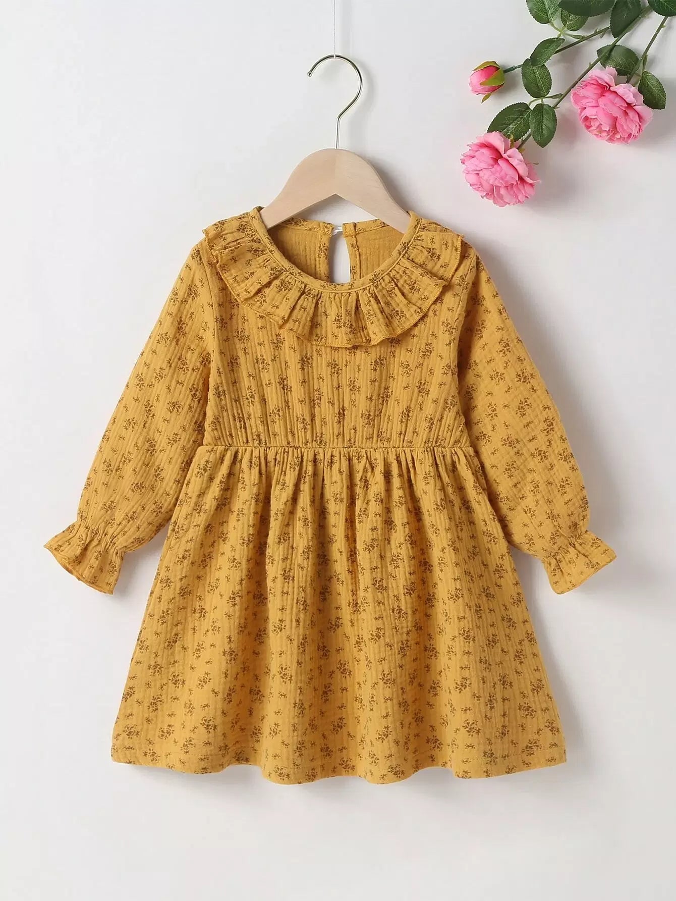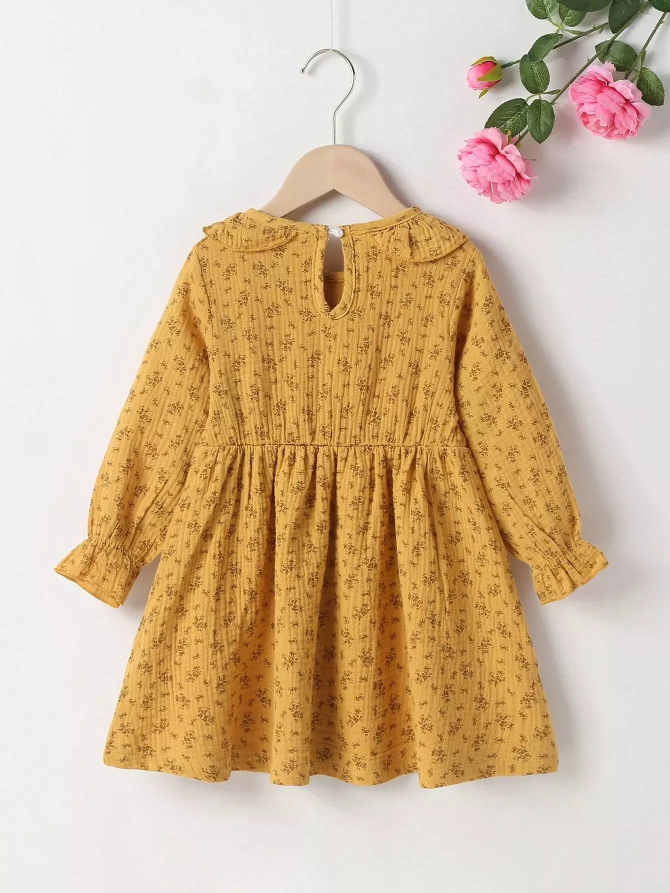 Toddler Girls Ditsy Floral Print Keyhole Back Flounce Sleeve Dress