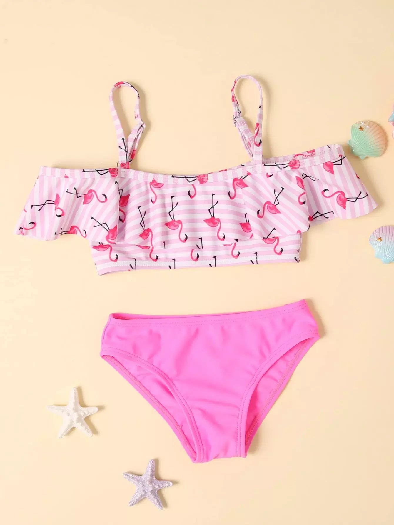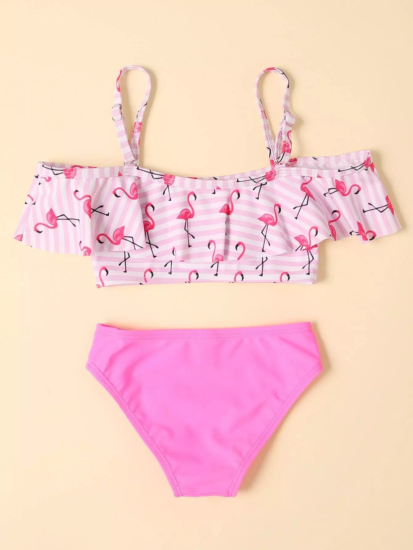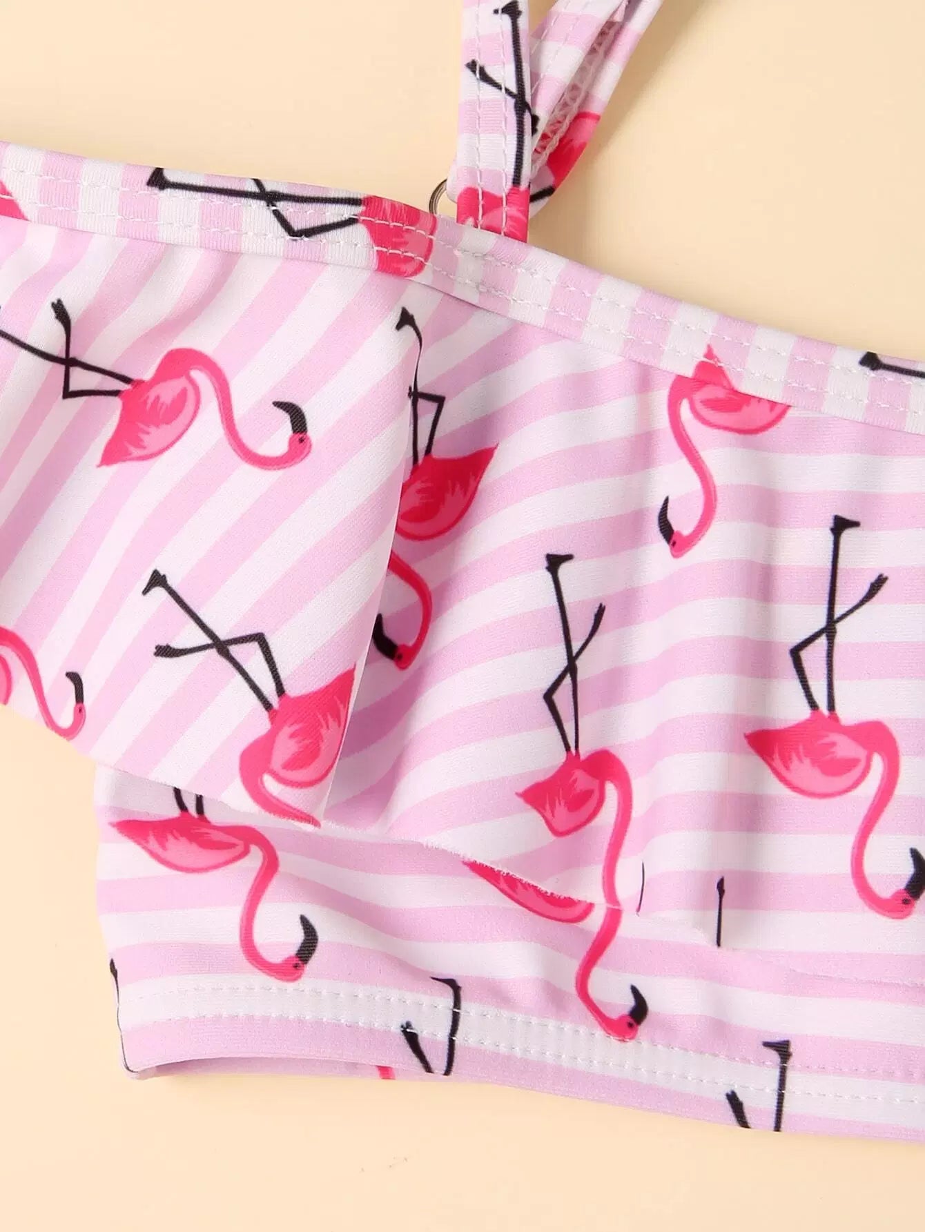 Toddler Girls Flamingo Print Flounce Bikini Swimsuit