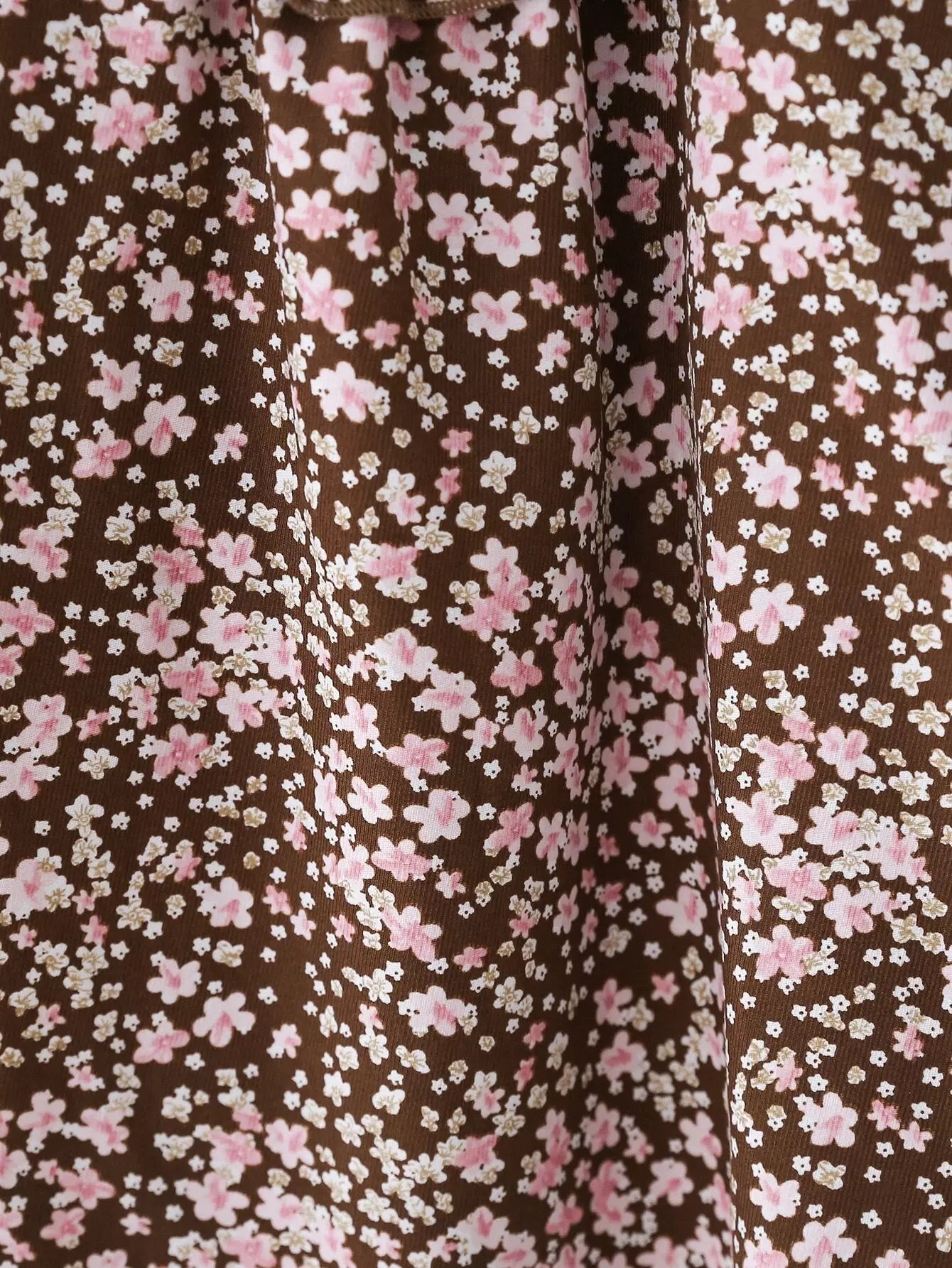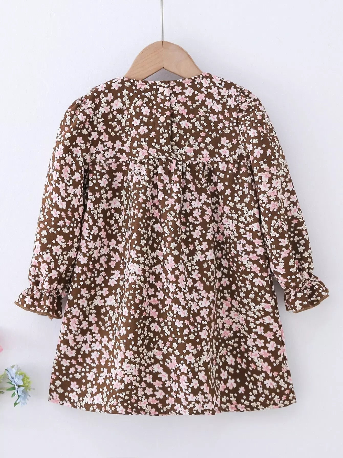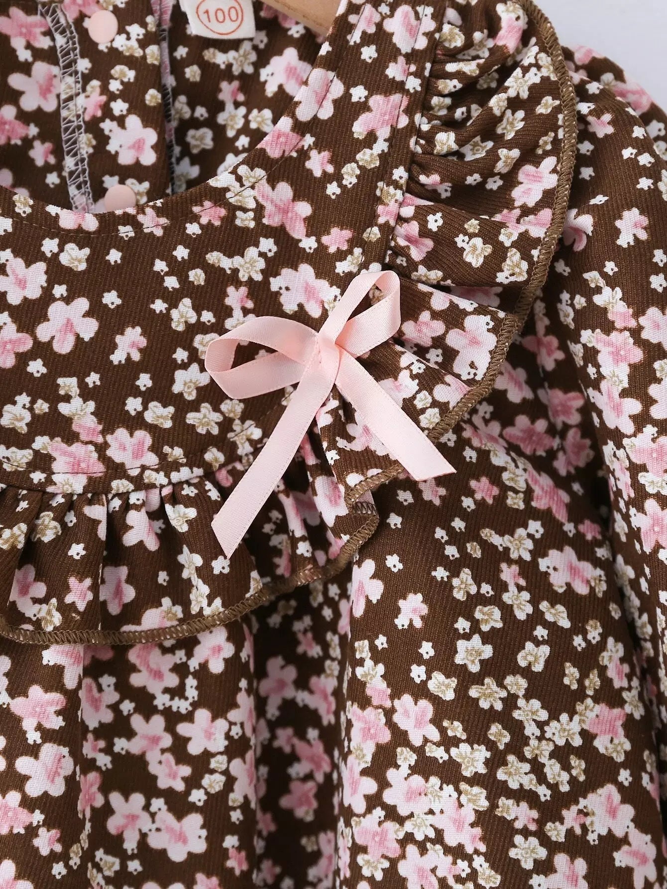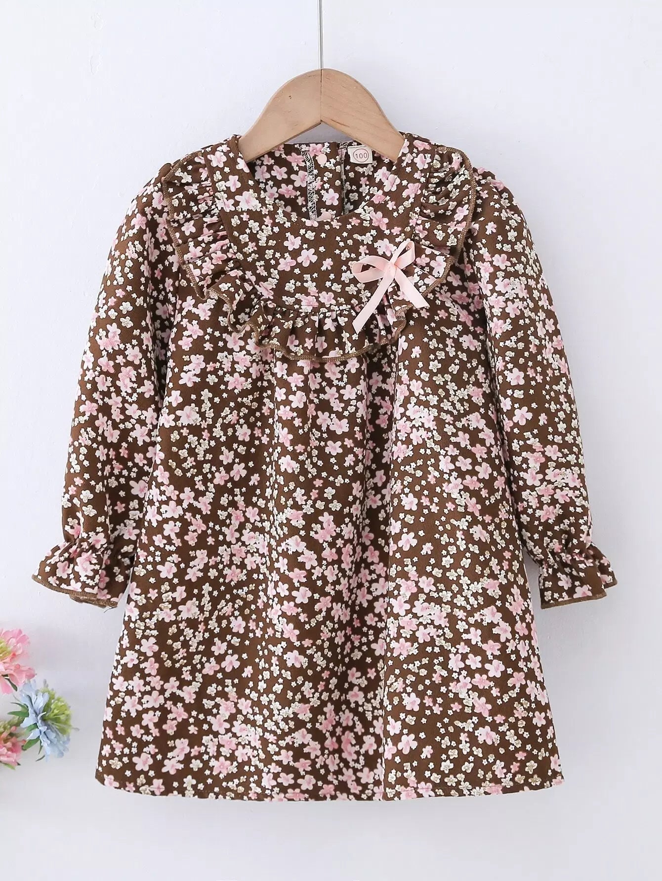 Toddler Girls Floral Print Ruffle Trim Flounce Sleeve Bow Front Dress