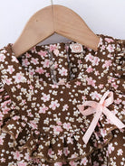 Kids - Toddler Girls Floral Print Ruffle Trim Flounce Sleeve Bow Front Dress