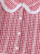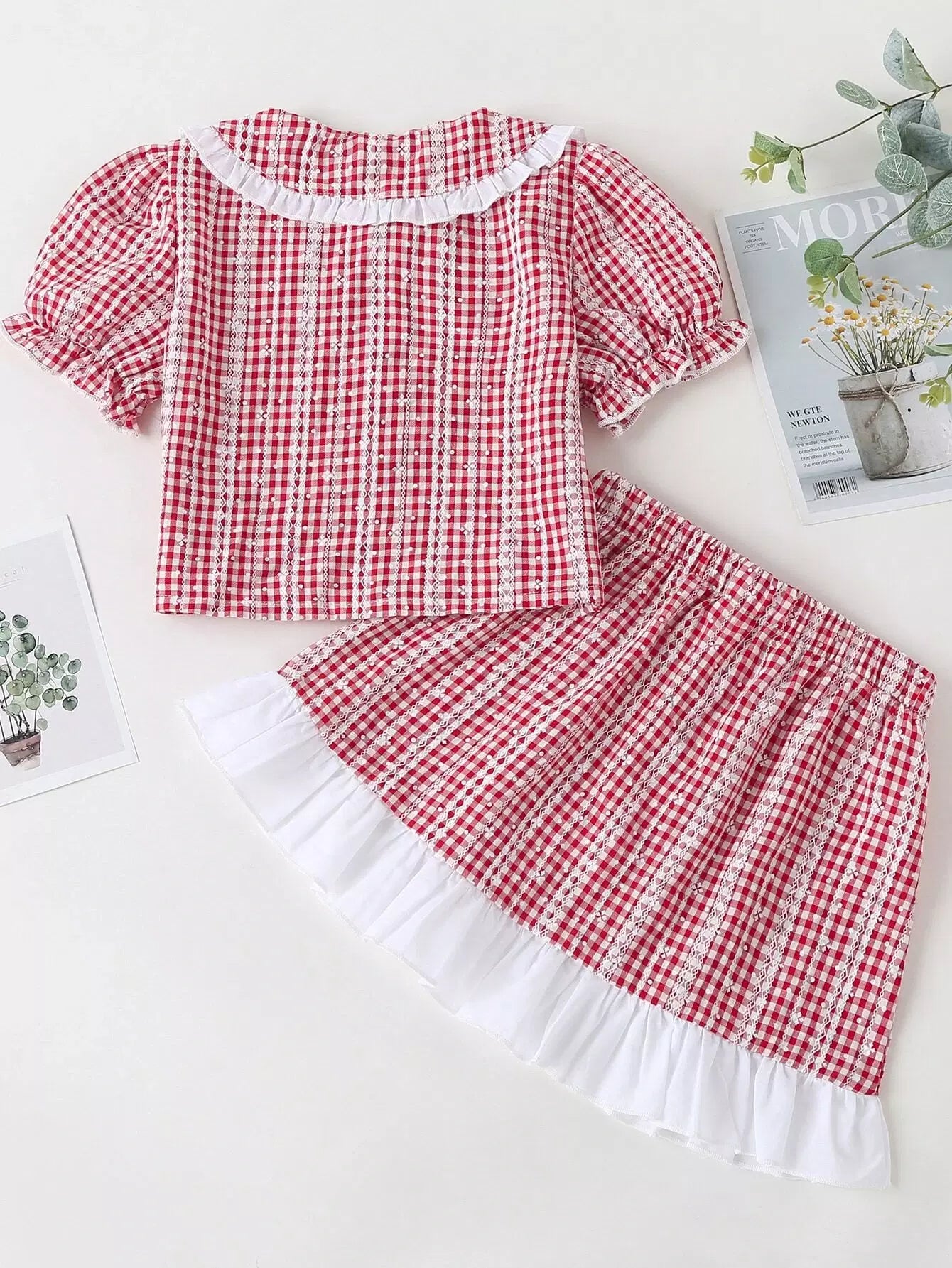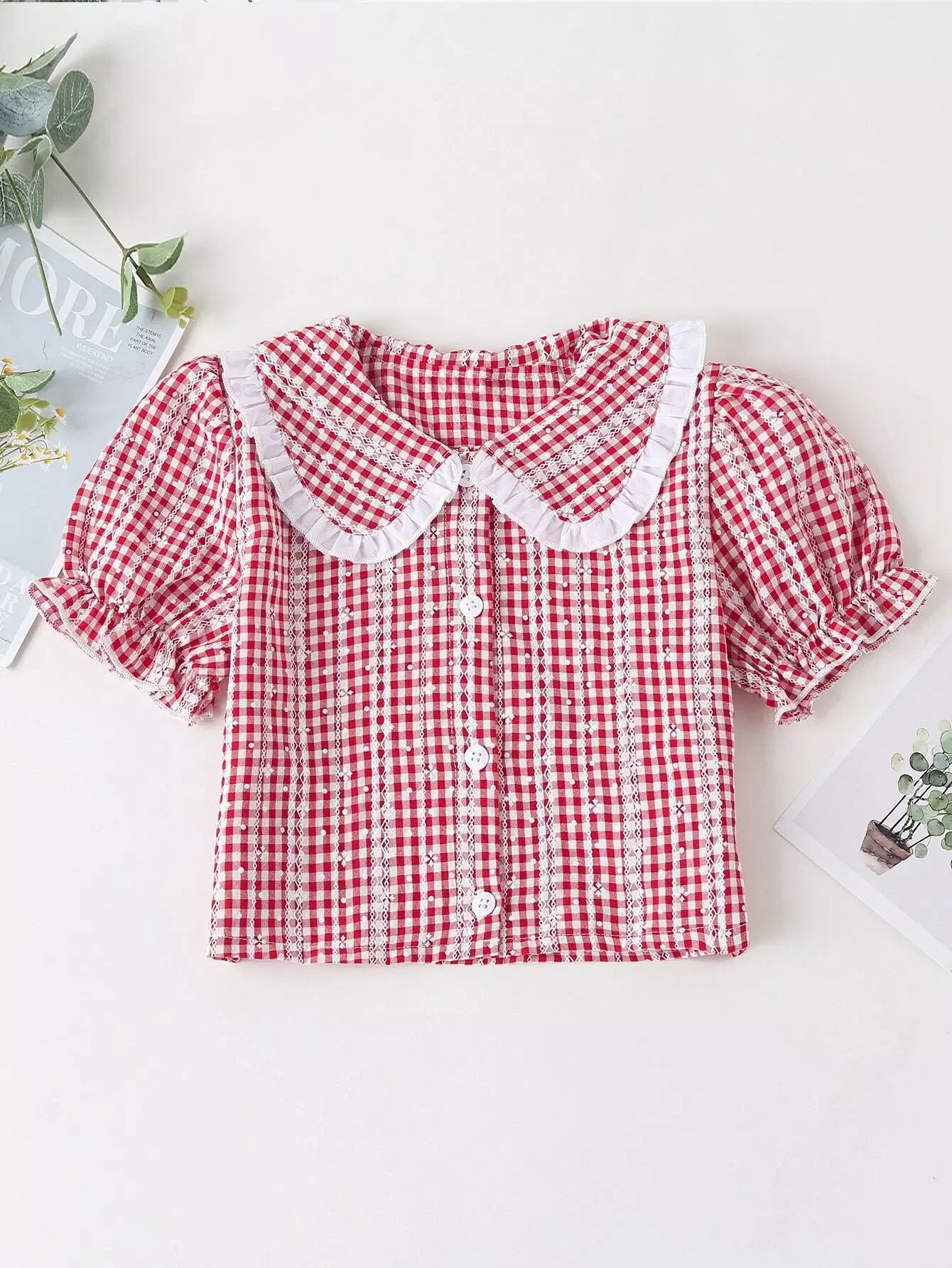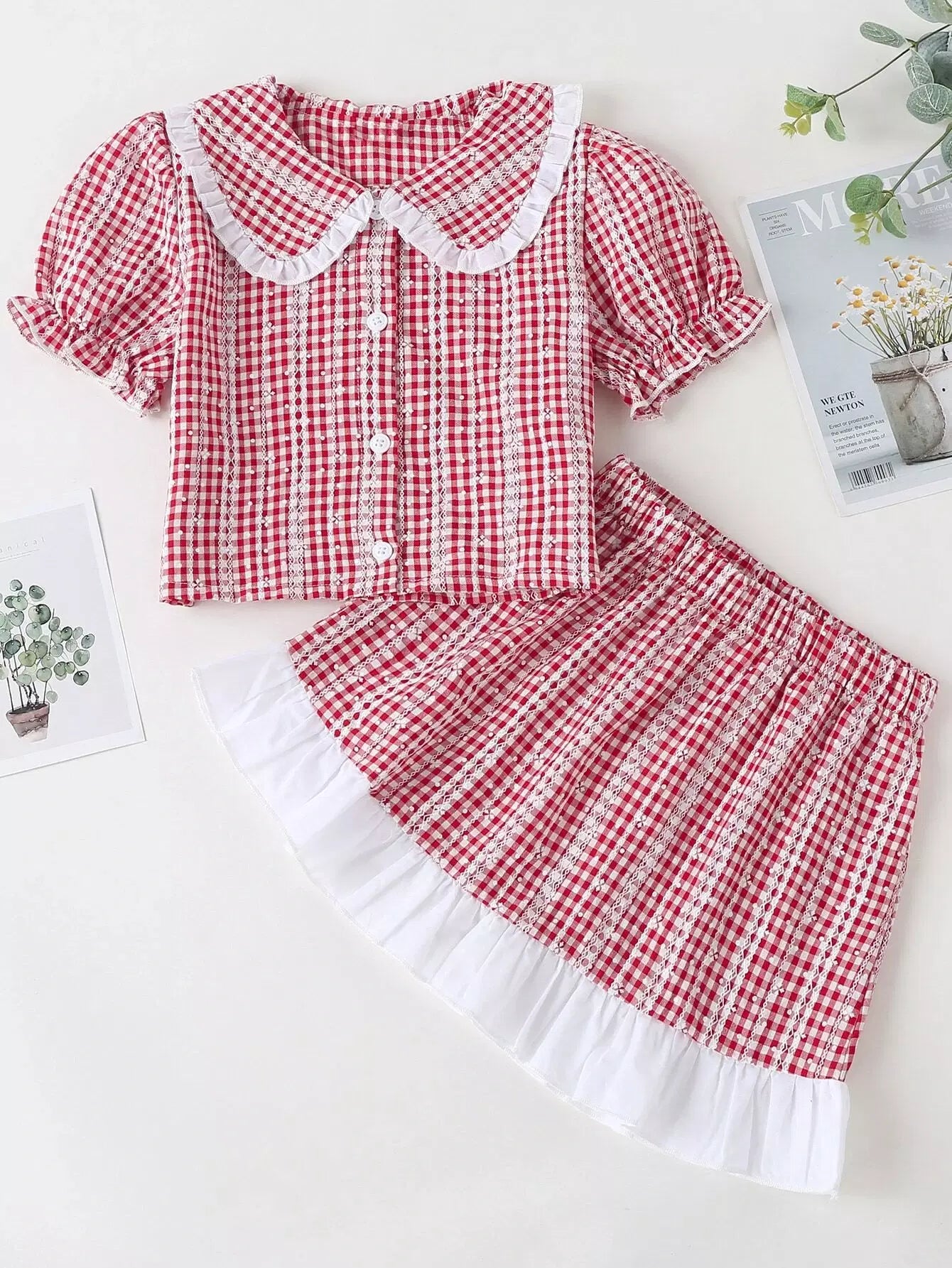 Toddler Girls Gingham Print Peter Pan Collar Button Front Top With Skirt