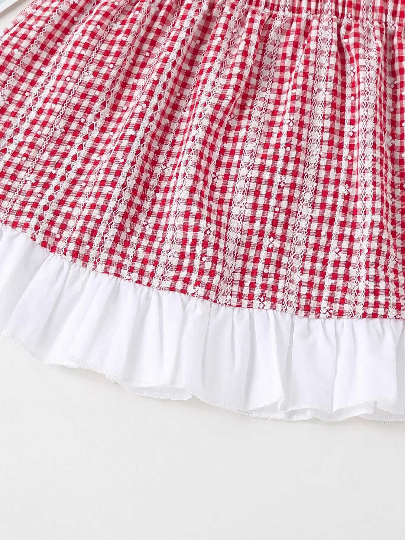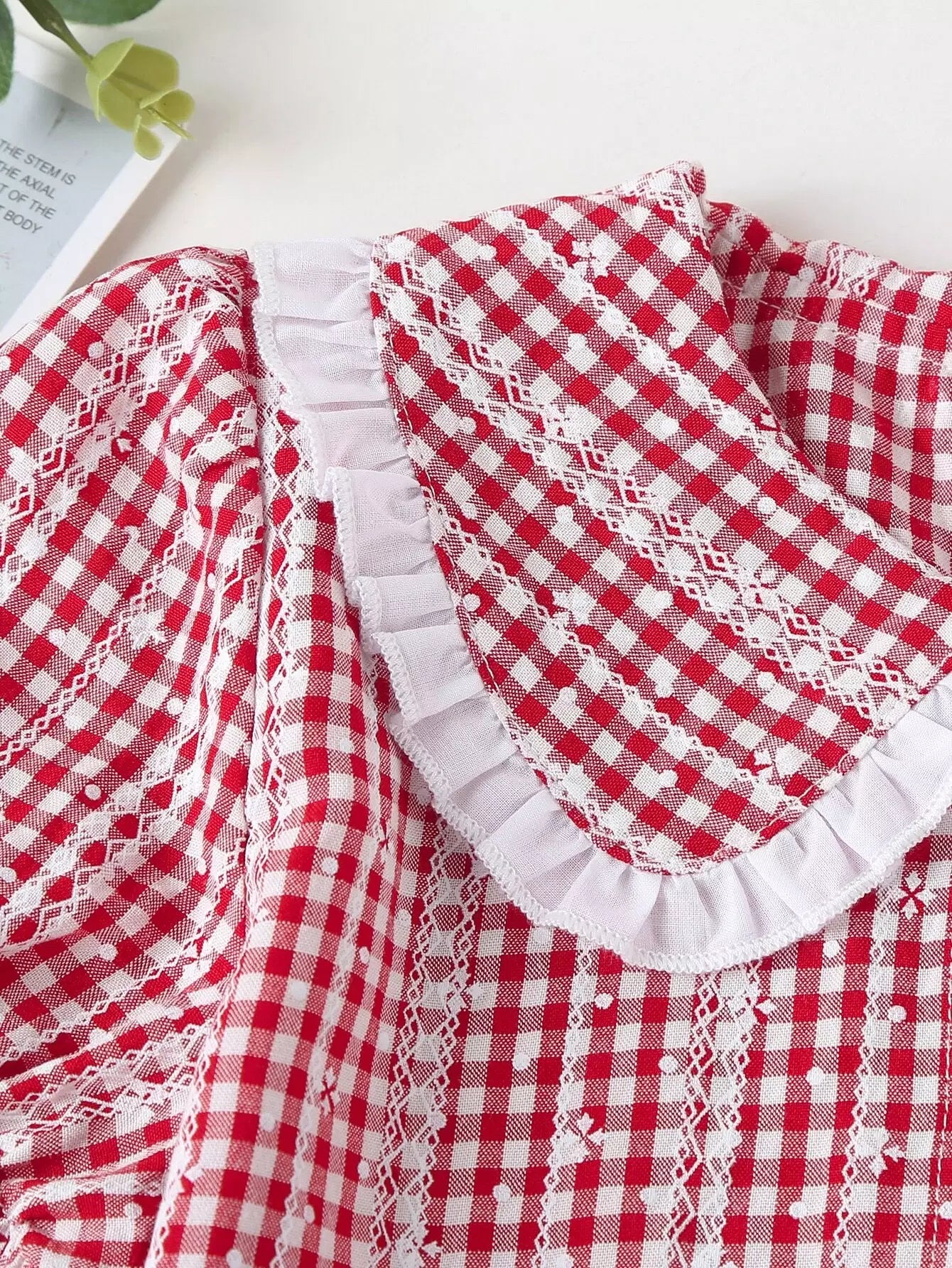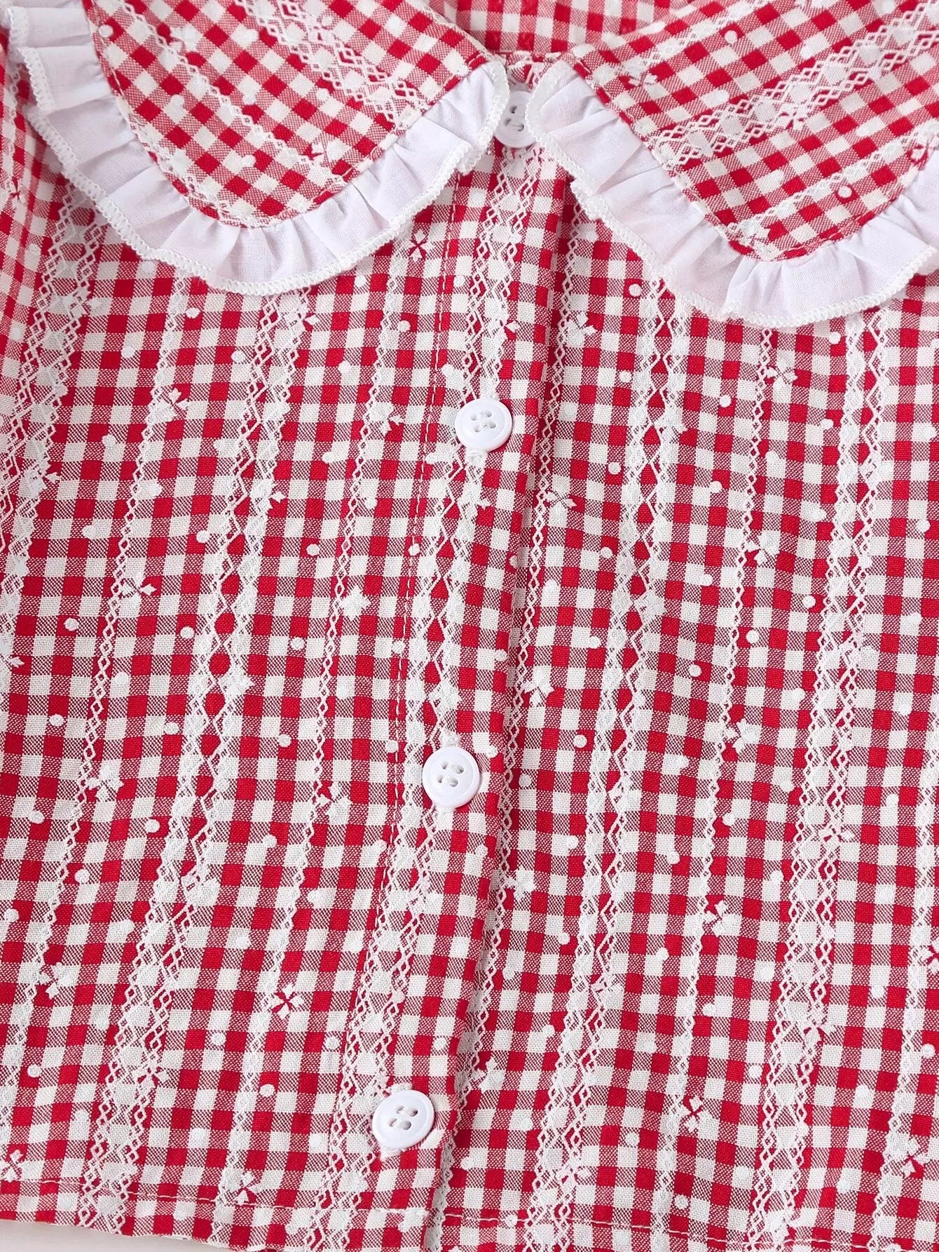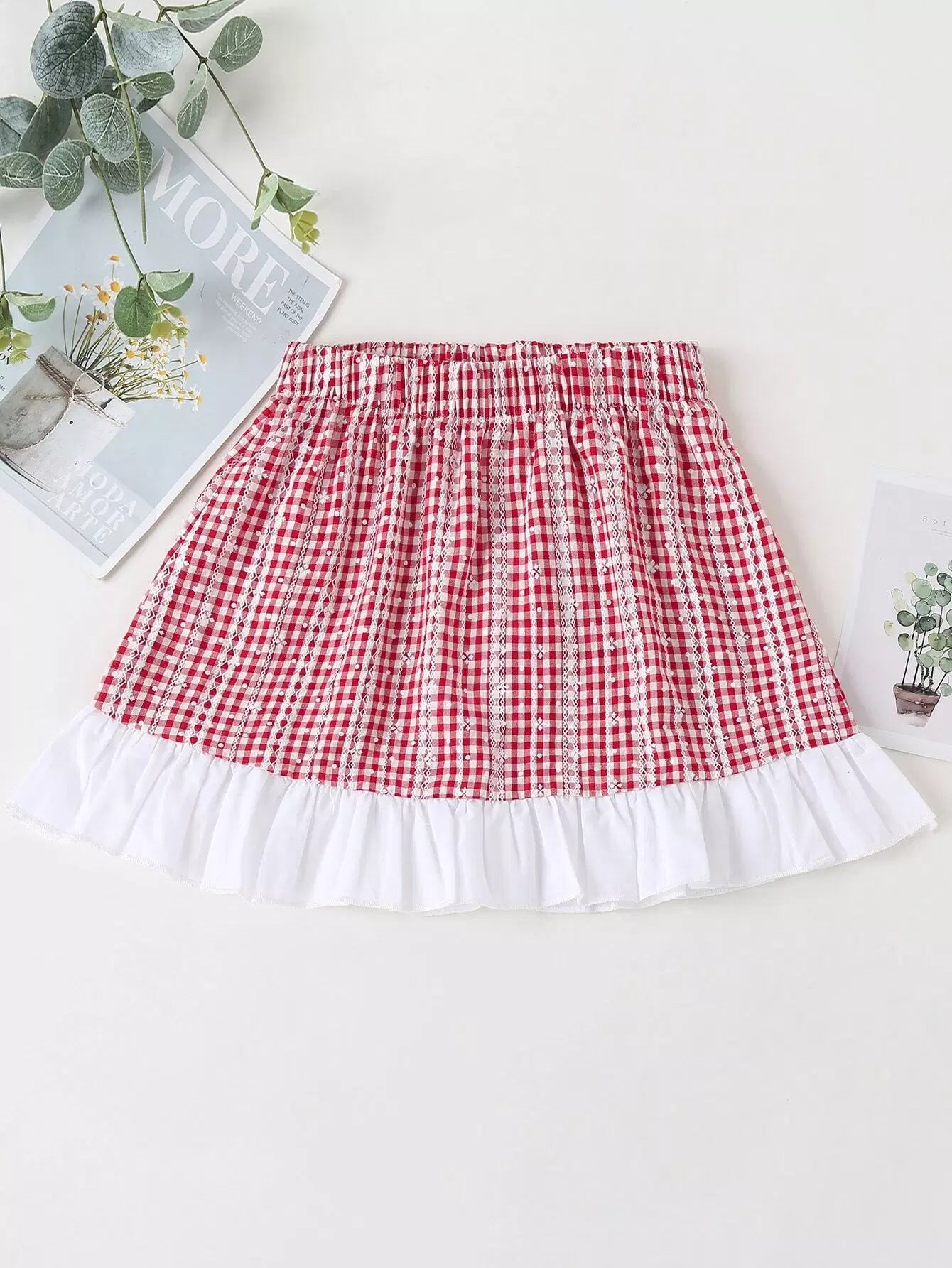 Toddler Girls Gingham Print Peter Pan Collar Button Front Top With Skirt
