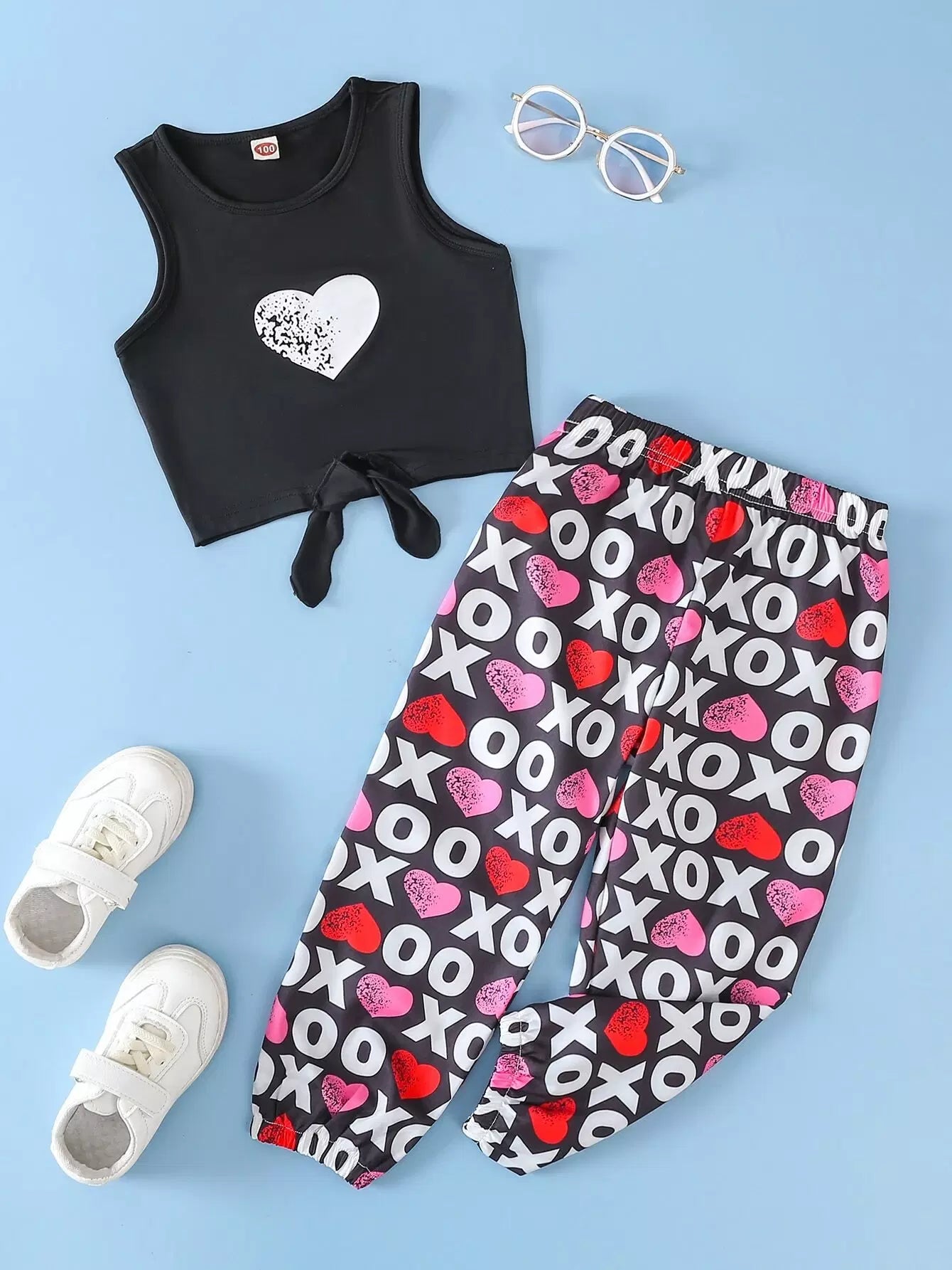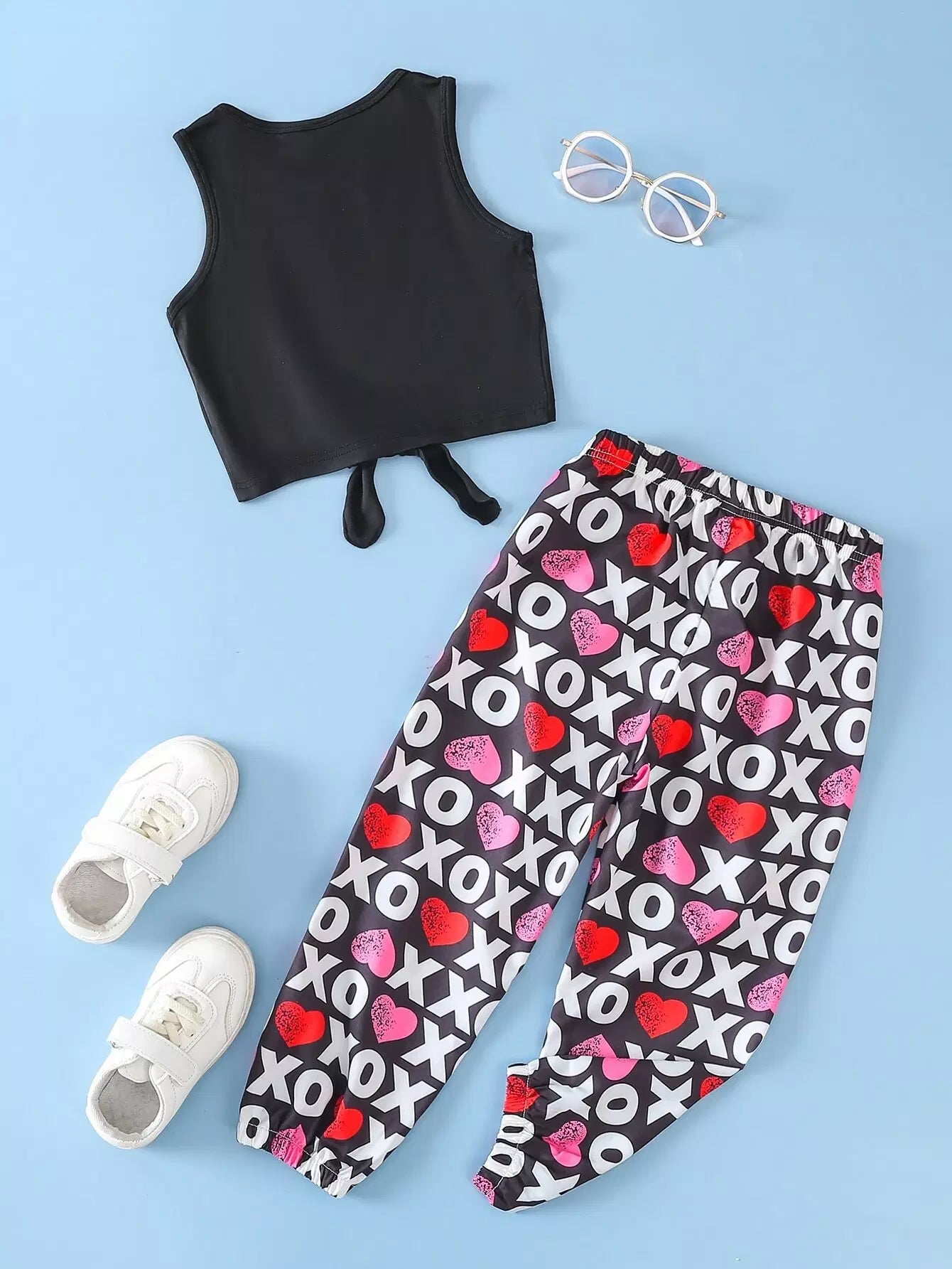 Toddler Girls Heart Print Knot Hem Tank Top & Pants