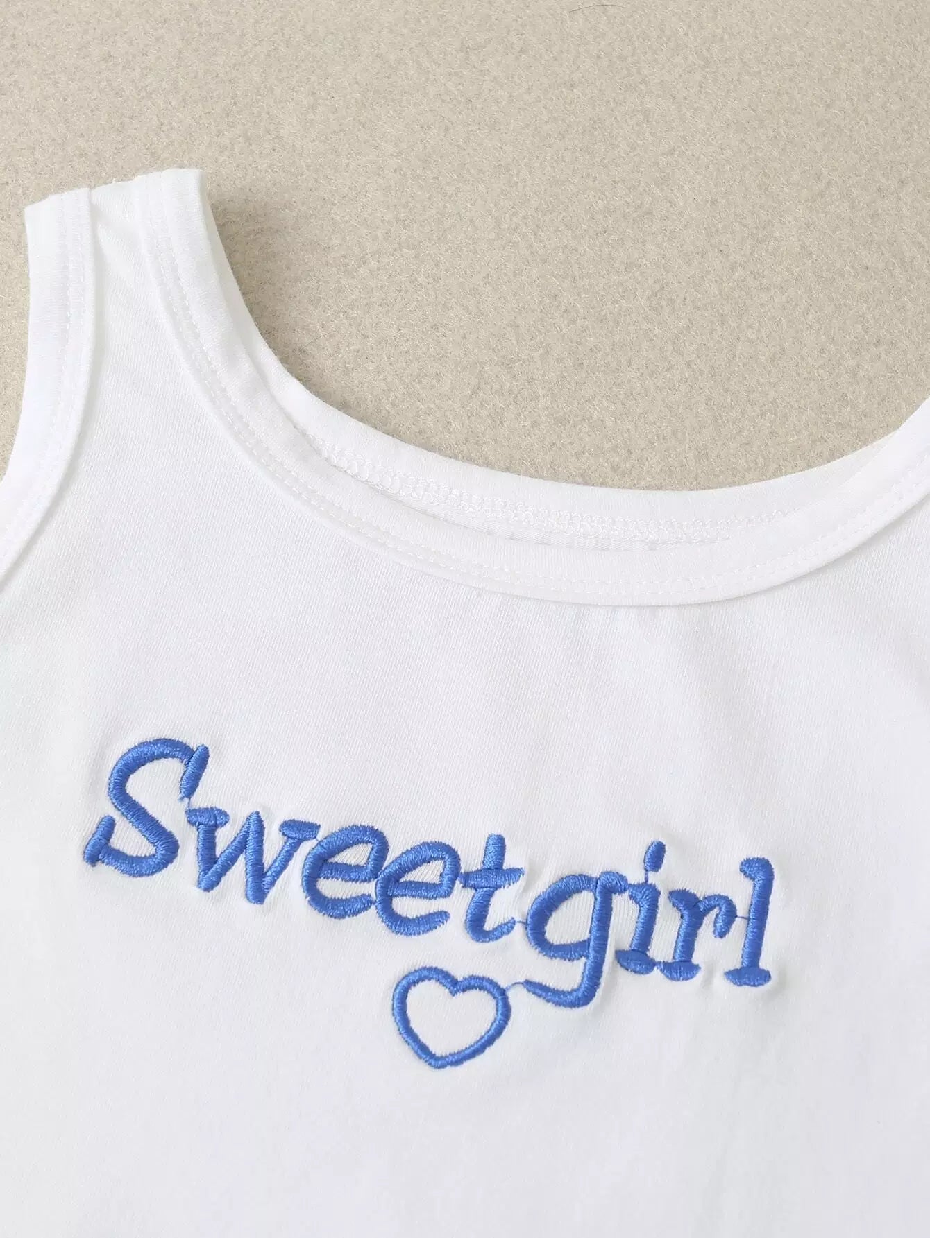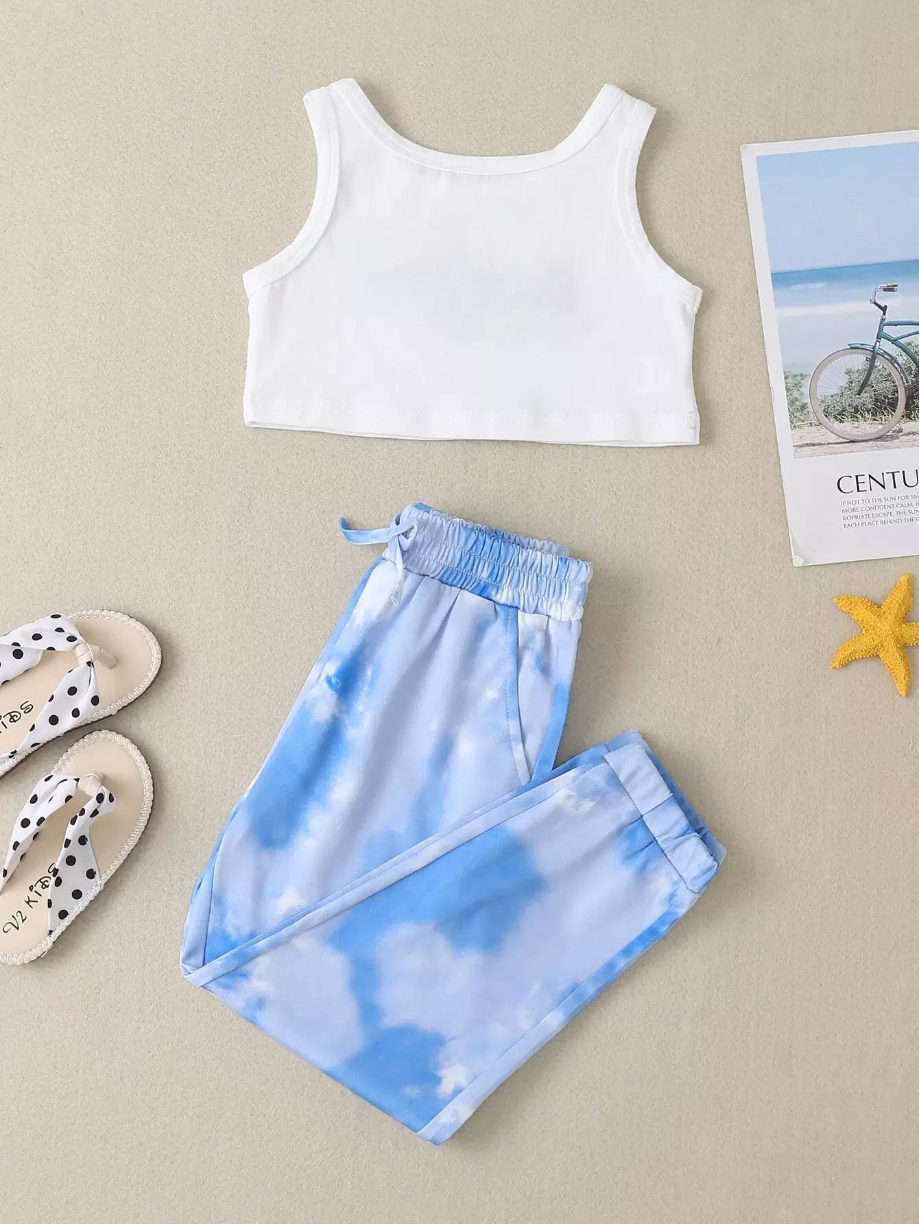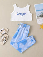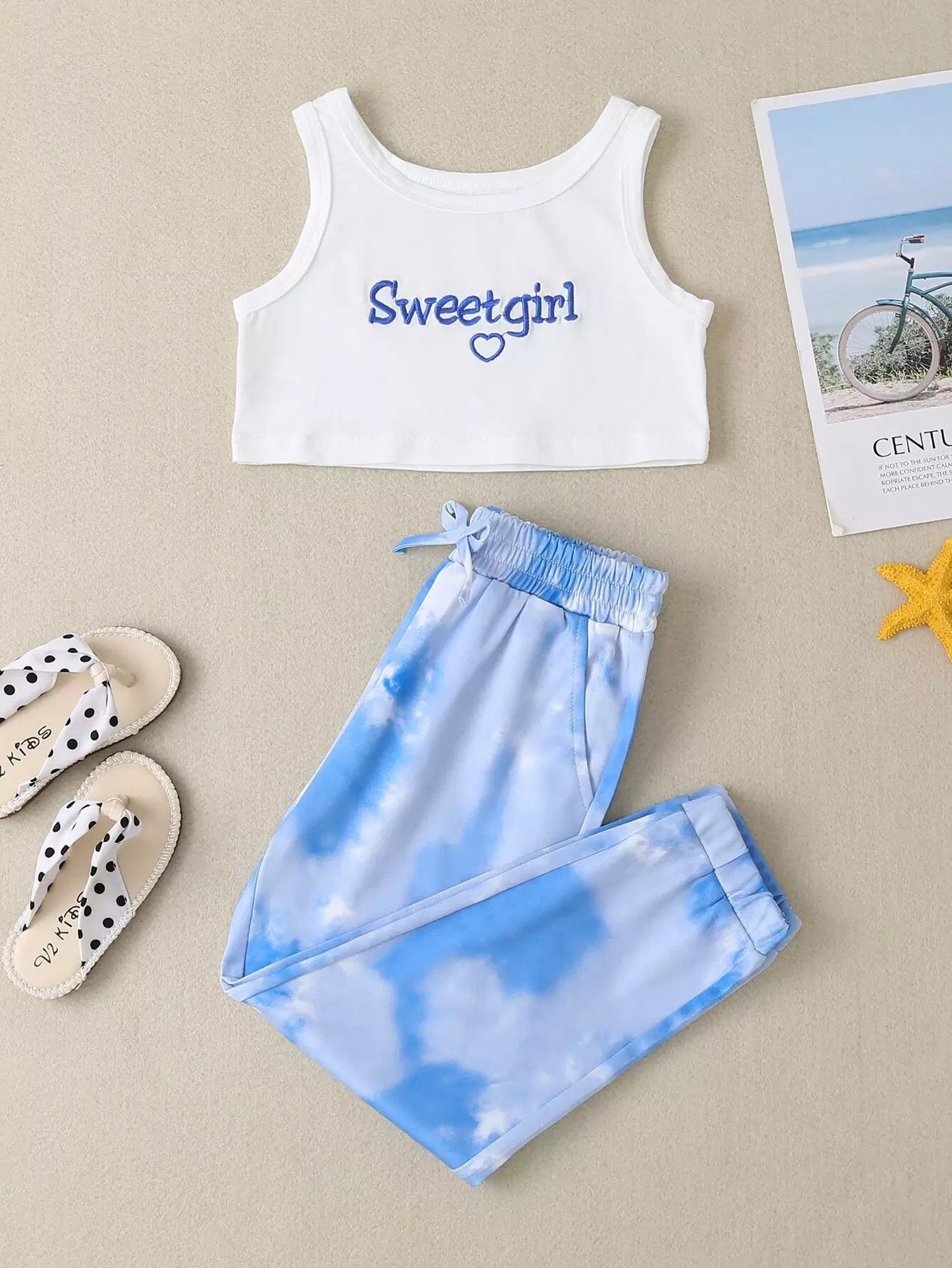 Toddler Girls Letter Embroidery Crop Tank Top With Tie Dye Sweatpants