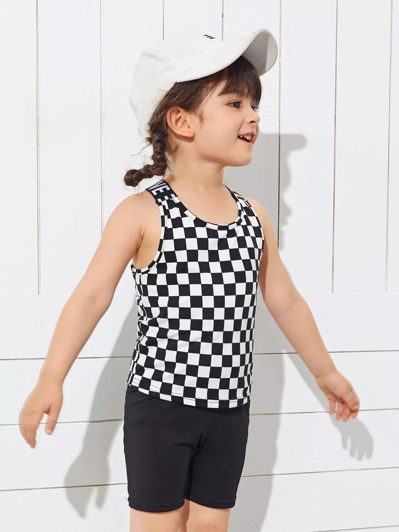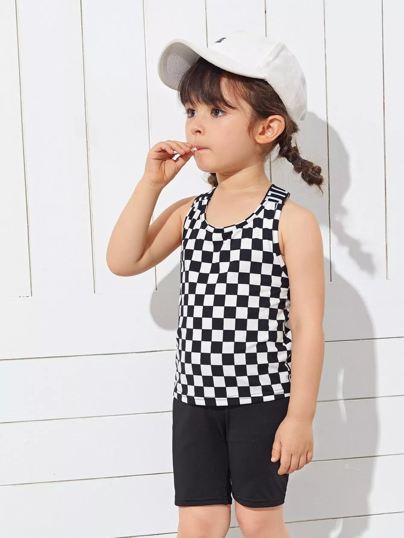 Toddler Girls Letter Tape Checkered Tank Top & Shorts Set