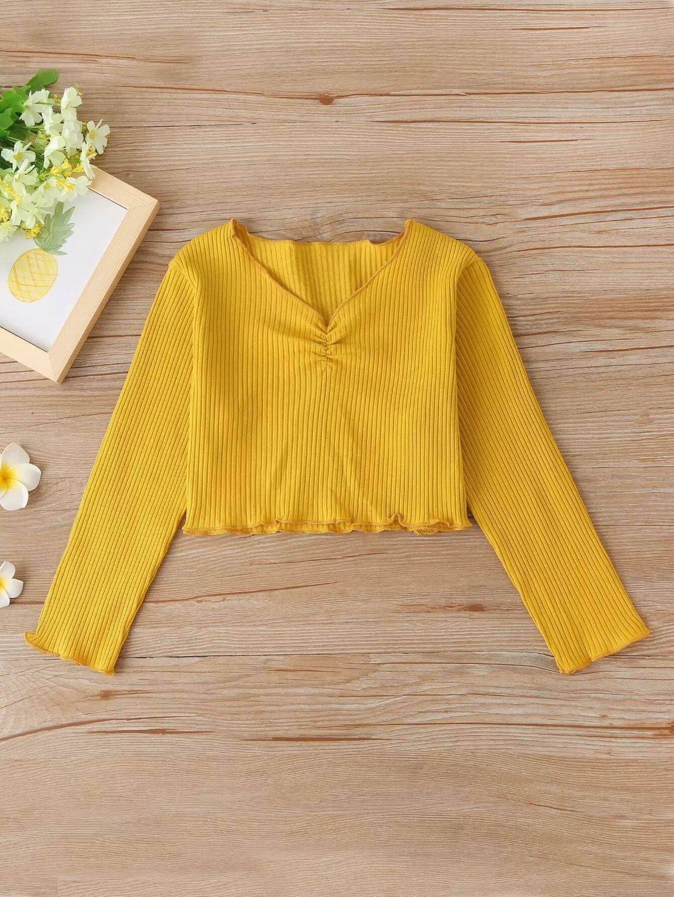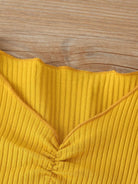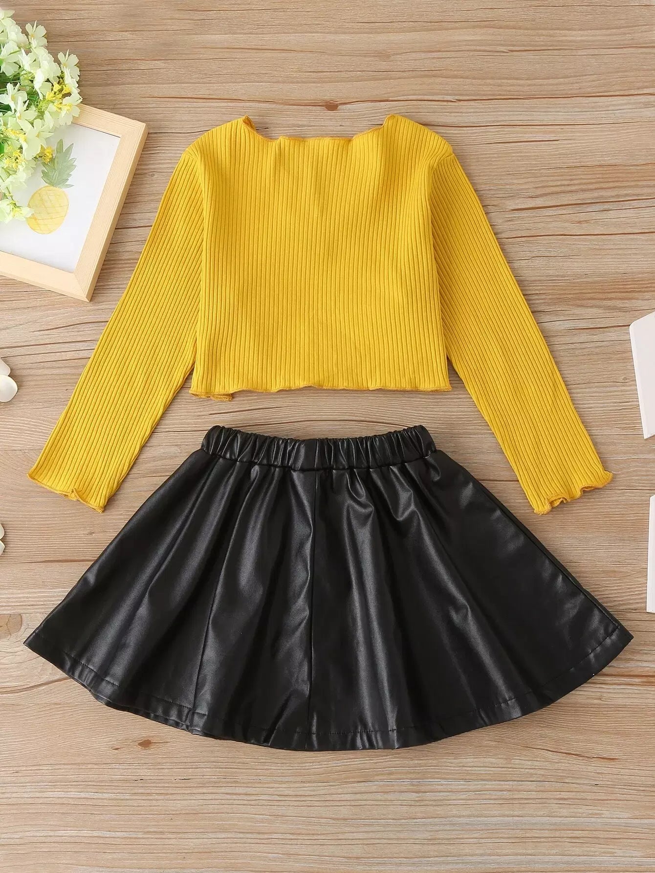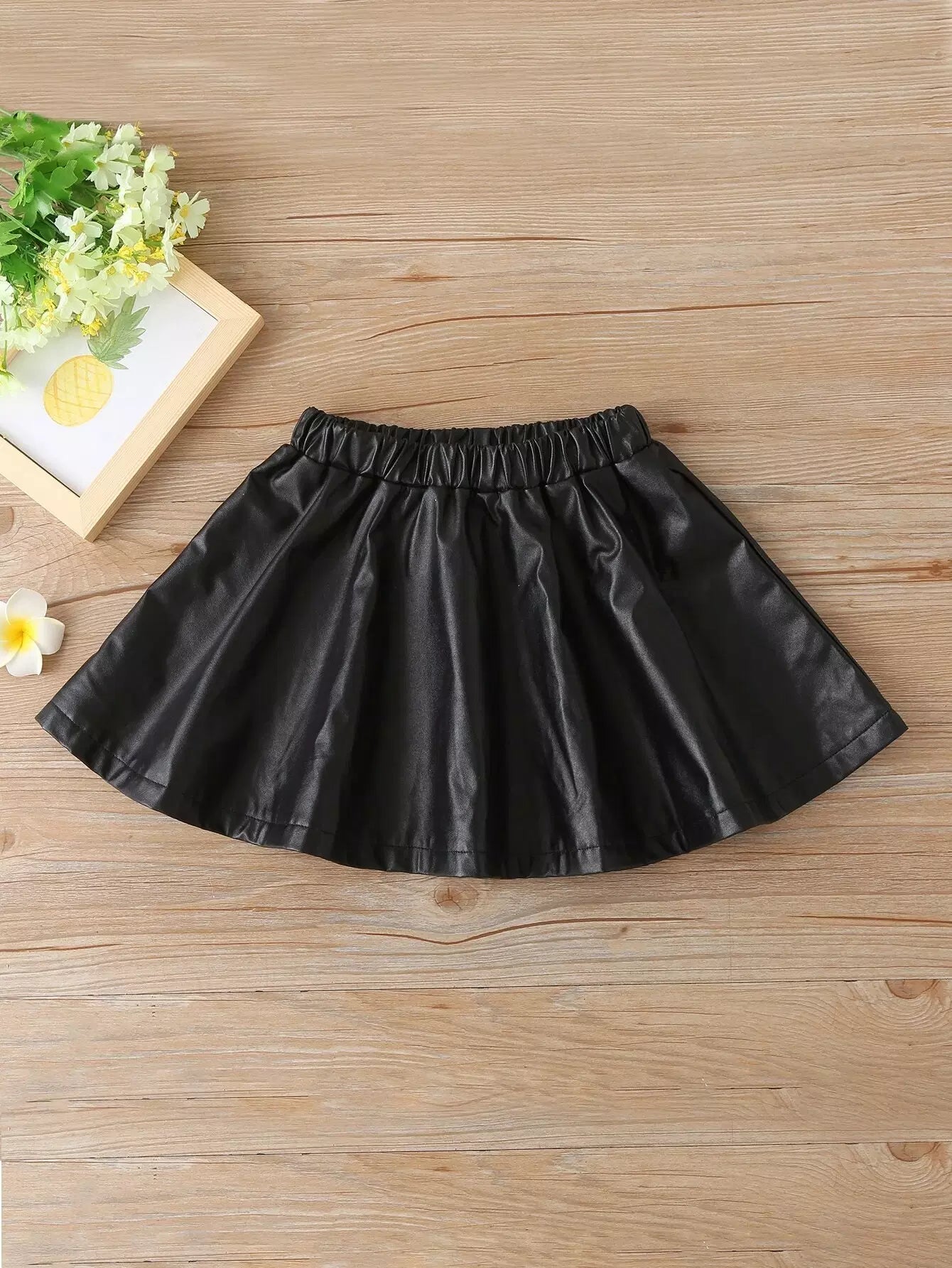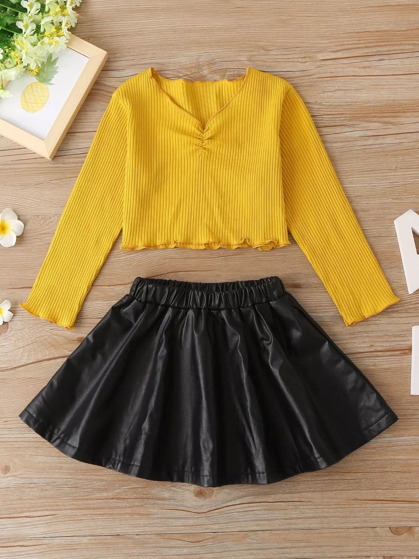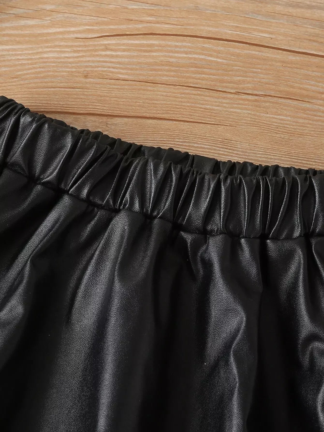 Toddler Girls Lettuce Trim Ruched Tee & PU Leather Skirt