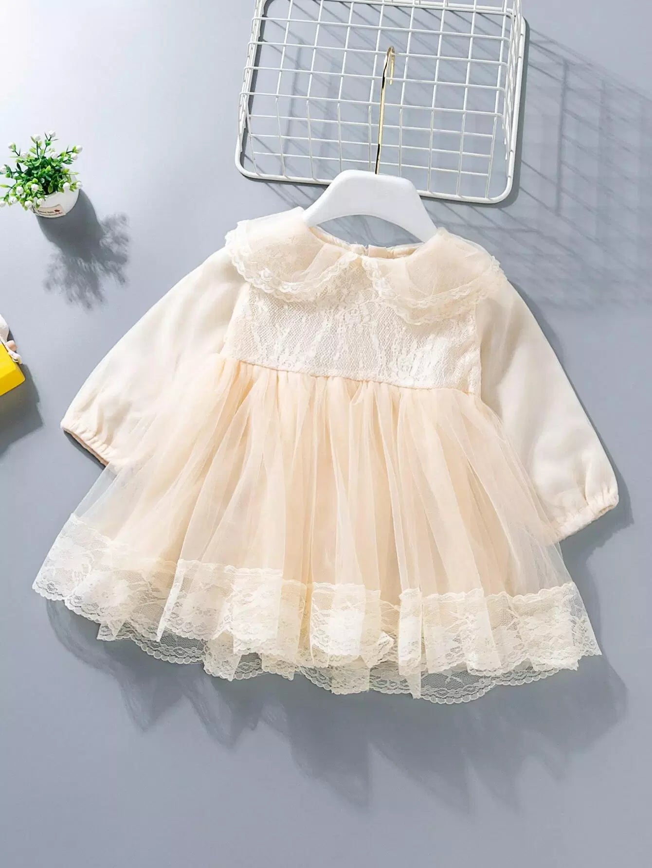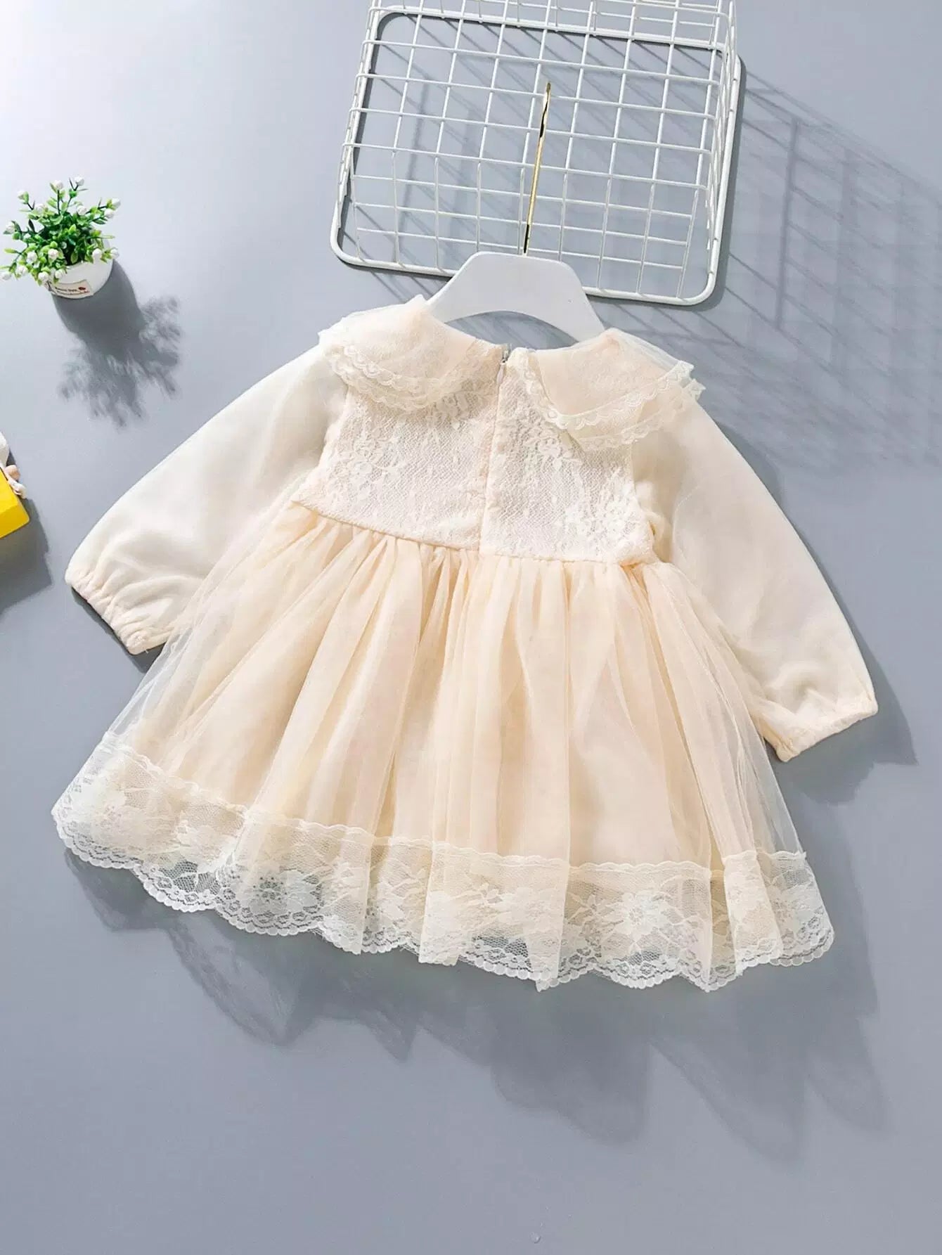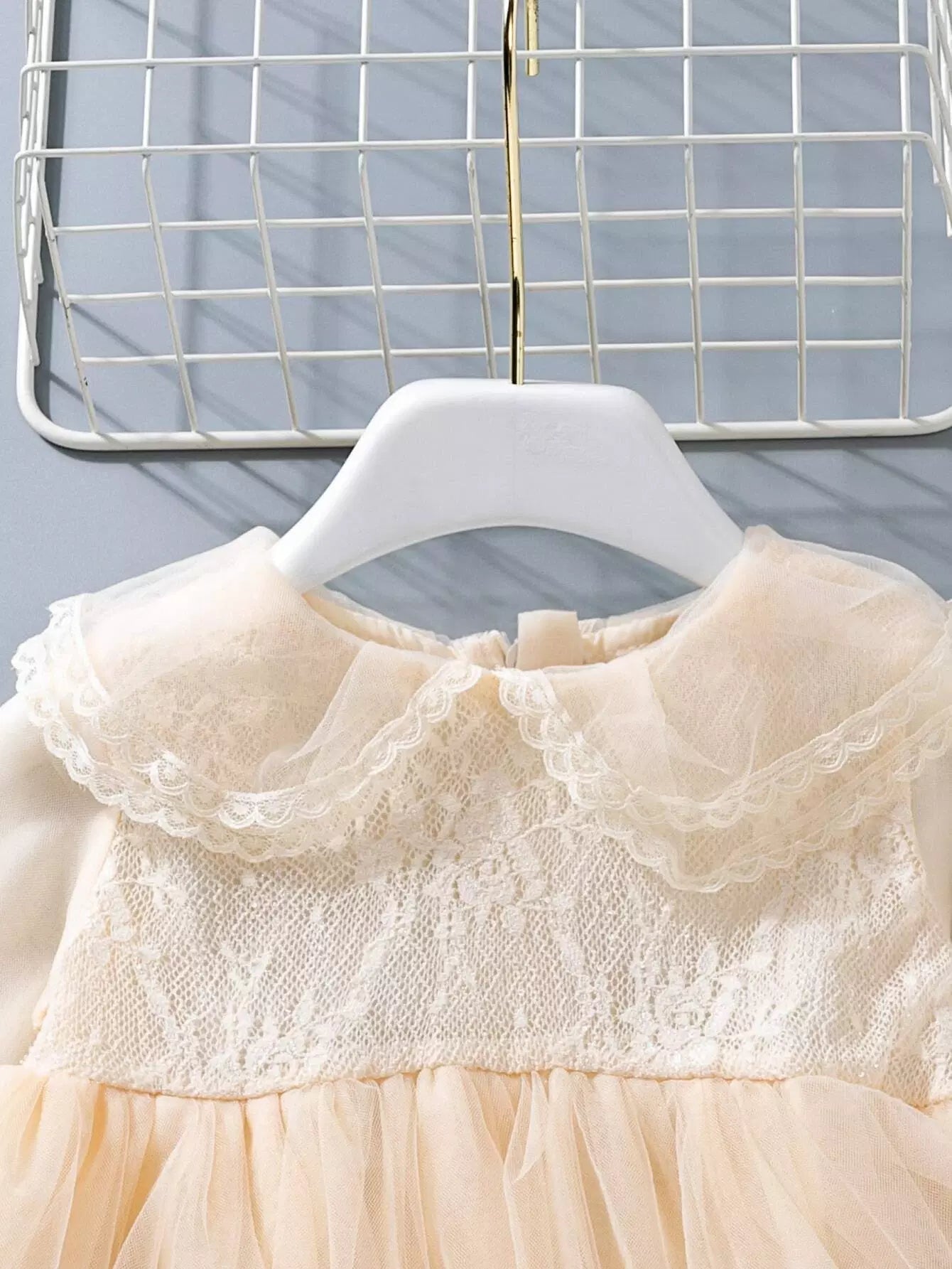 Kids - Toddler Girls Peter Pan Collar Contrast Lace Mesh Dress