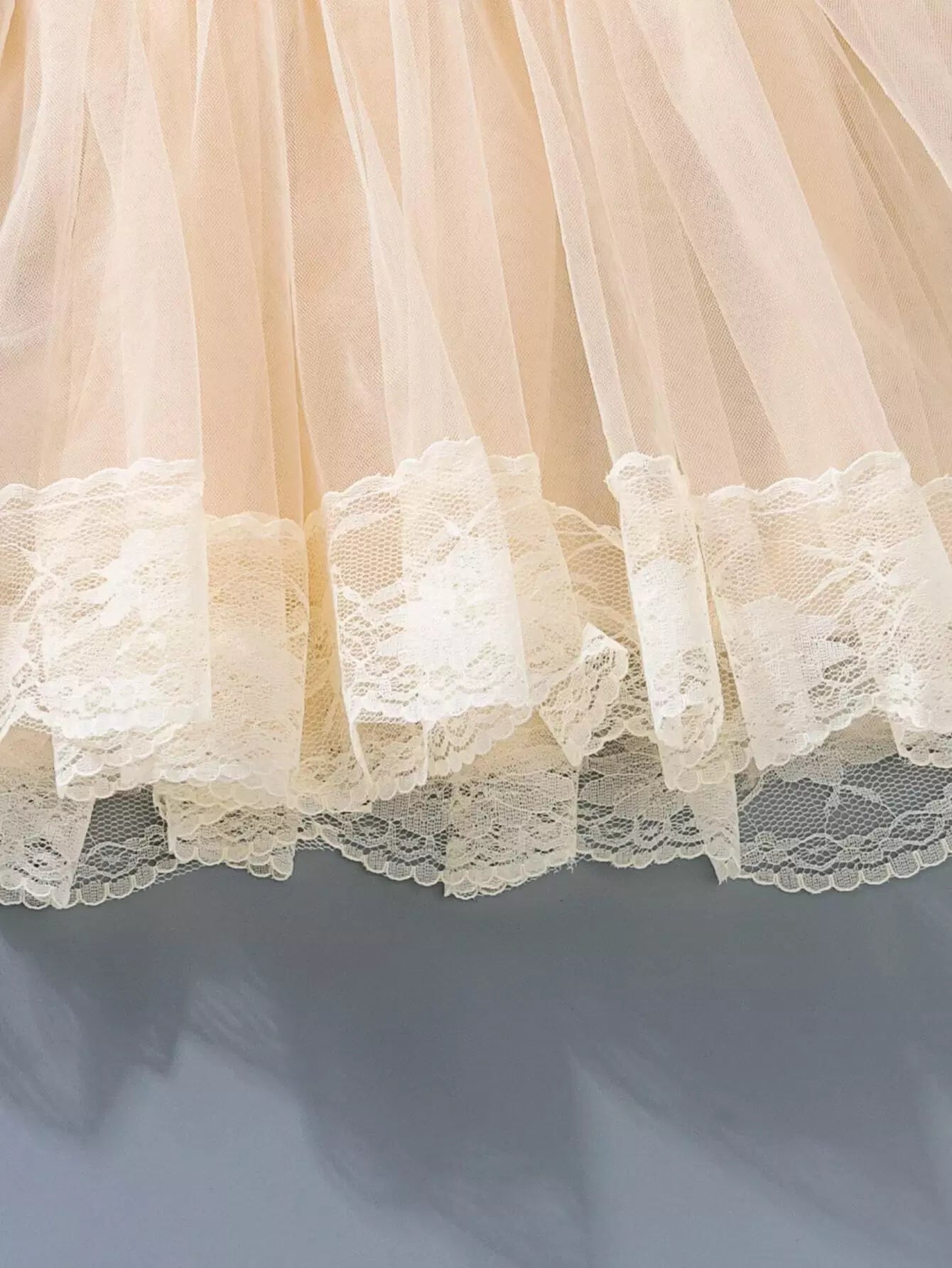 Toddler Girls Peter Pan Collar Contrast Lace Mesh Dress