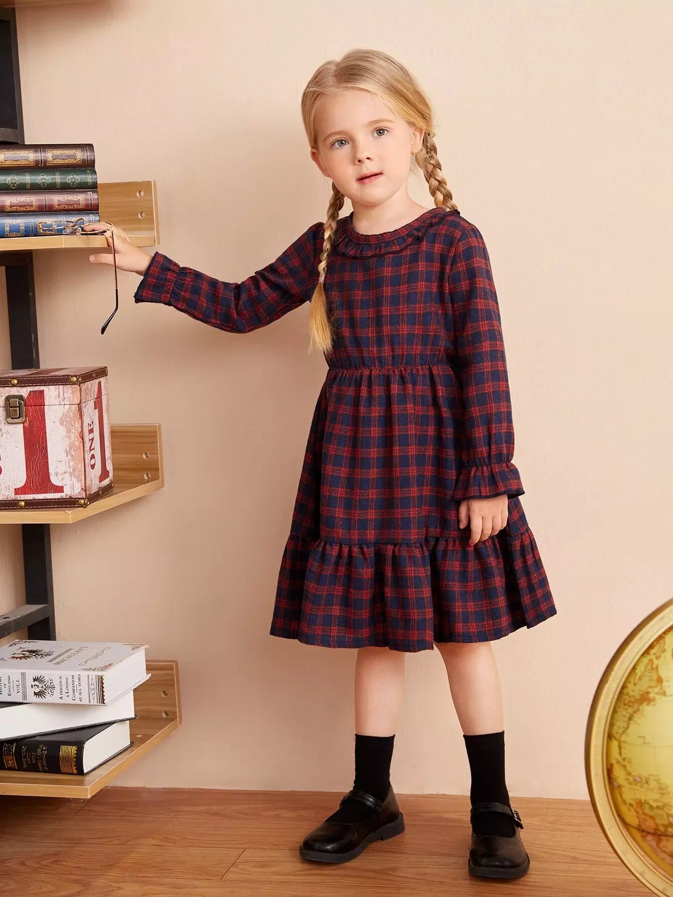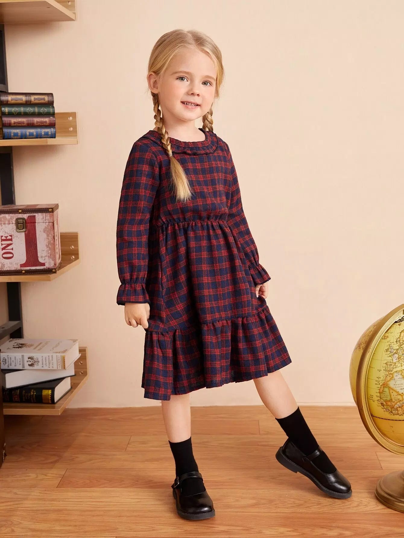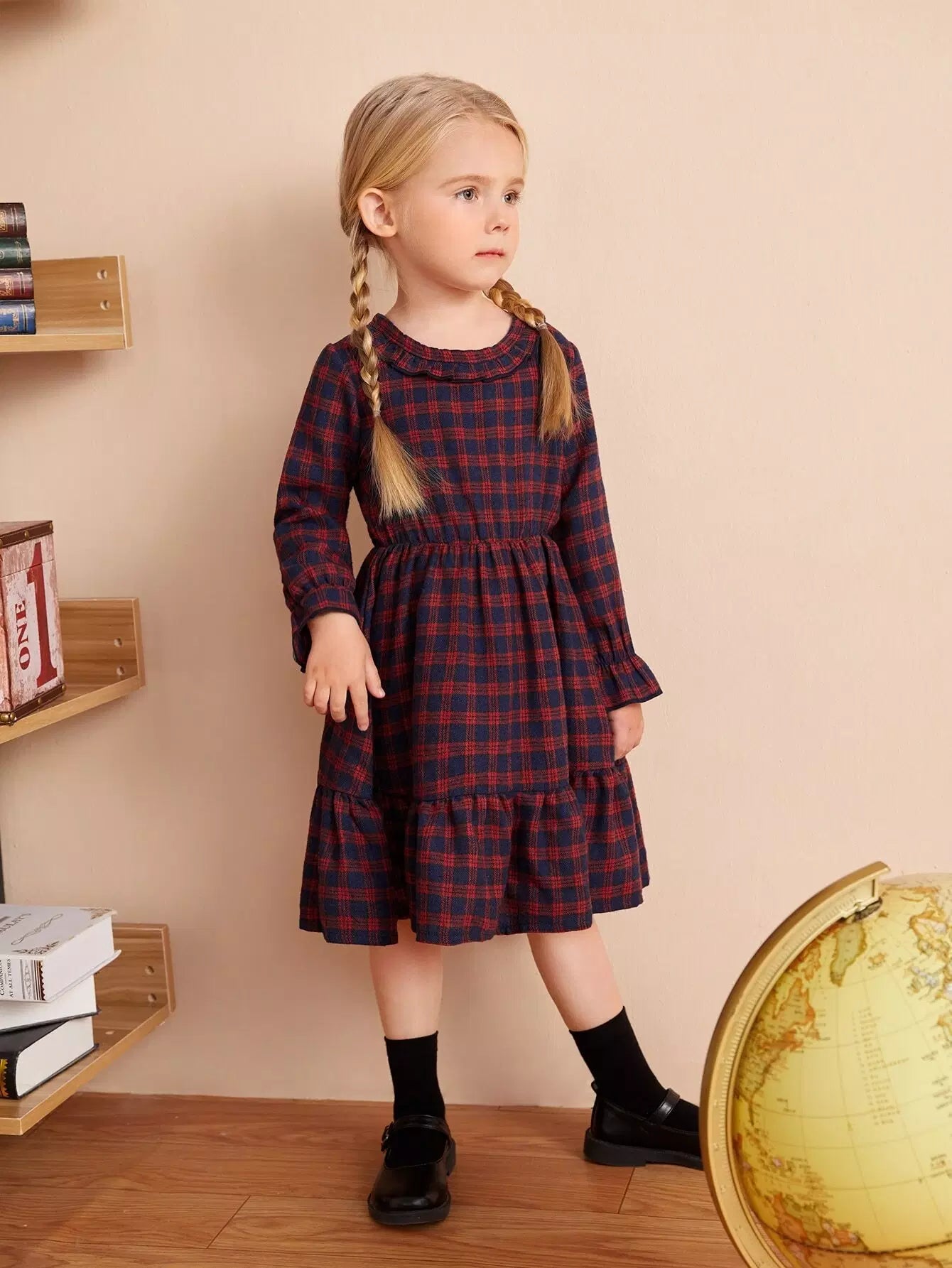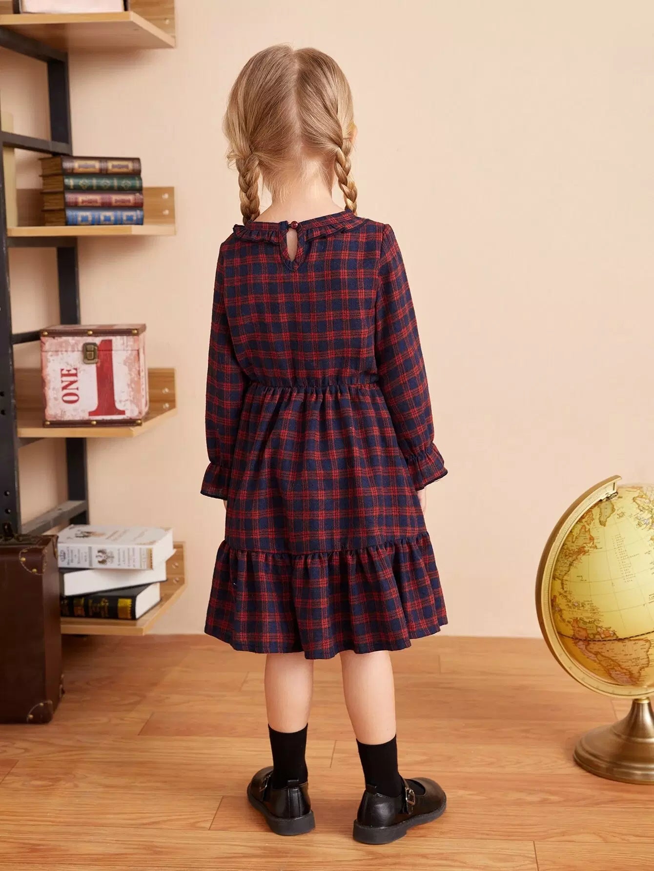 Toddler Girls Plaid Print Flounce Sleeve Ruffle Hem Dress