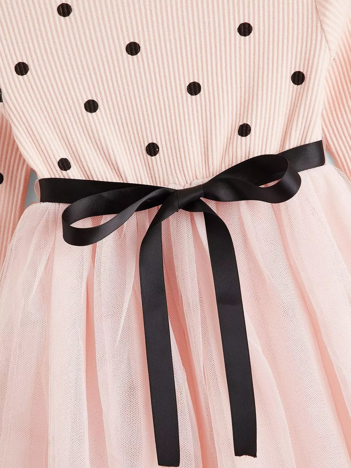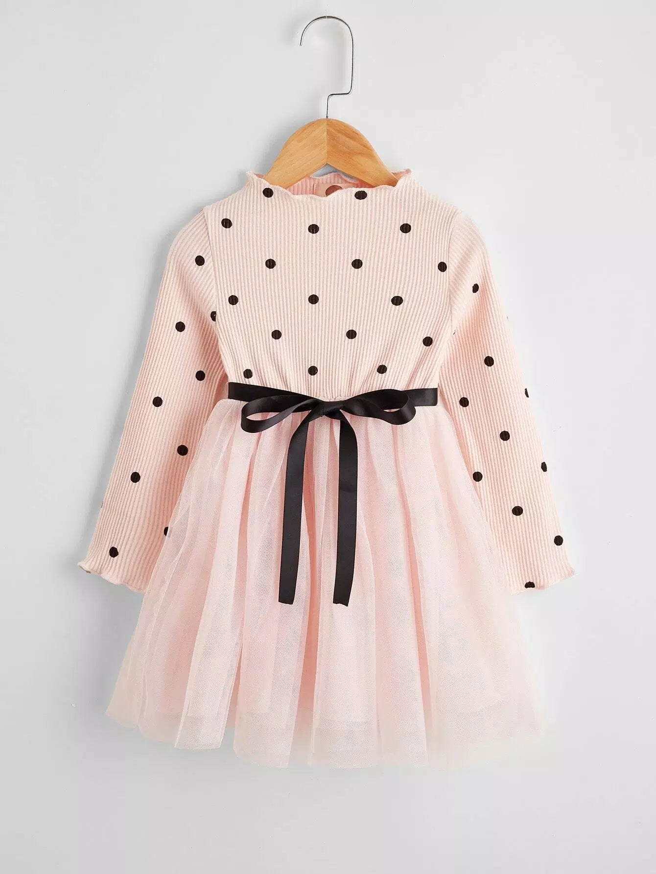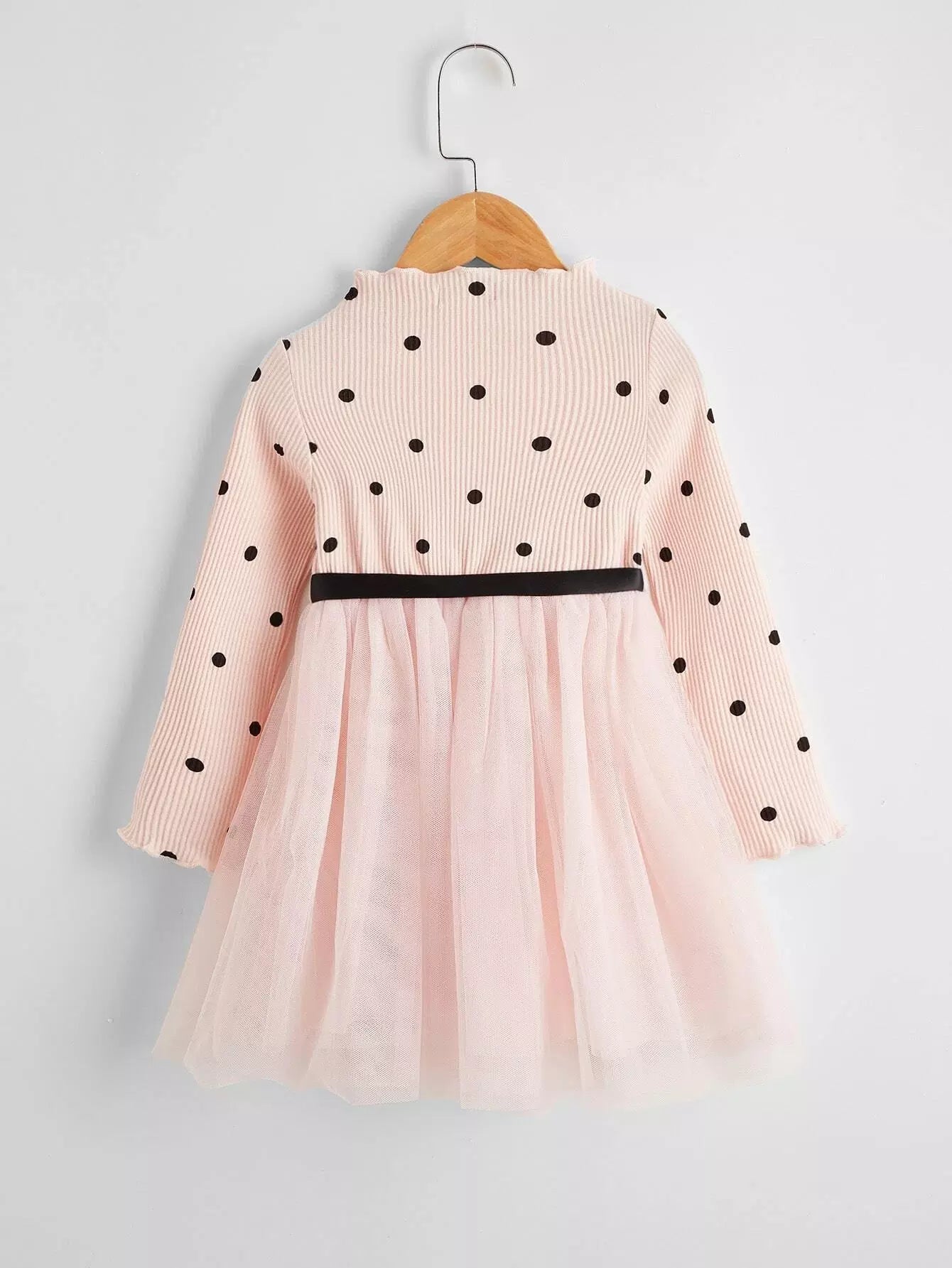 Toddler Girls Polka Dot Contrast Mesh Dress Without Belt