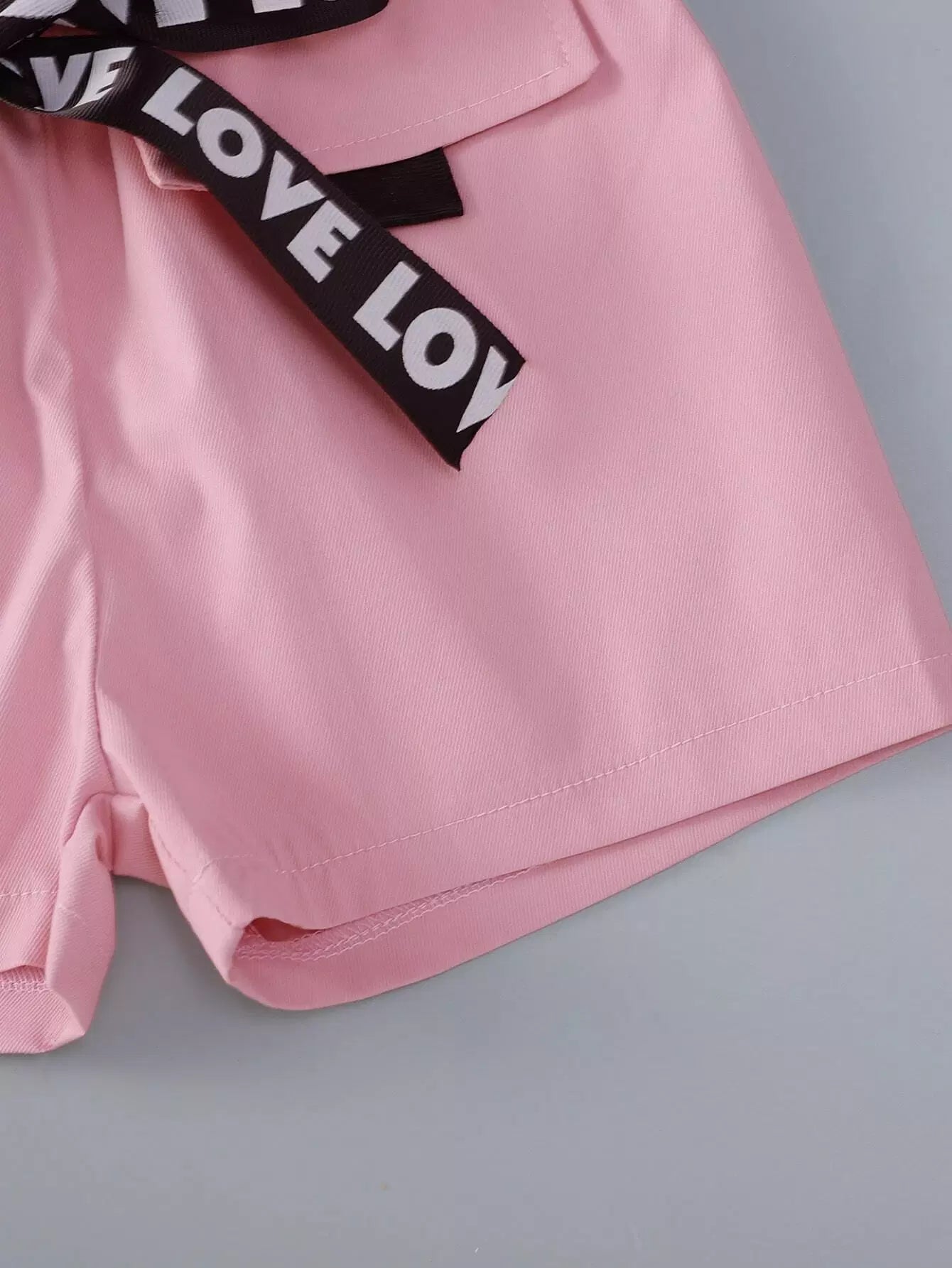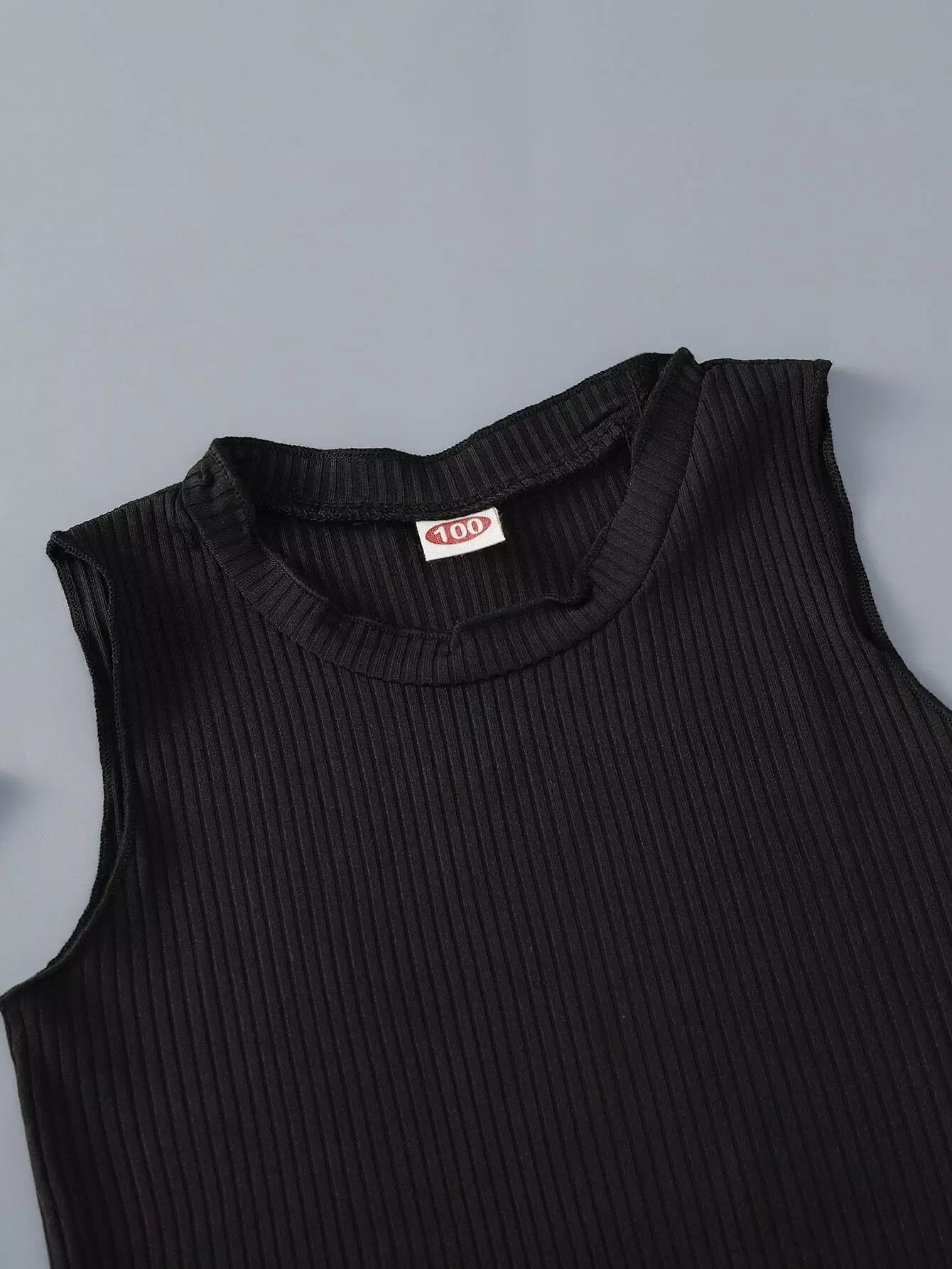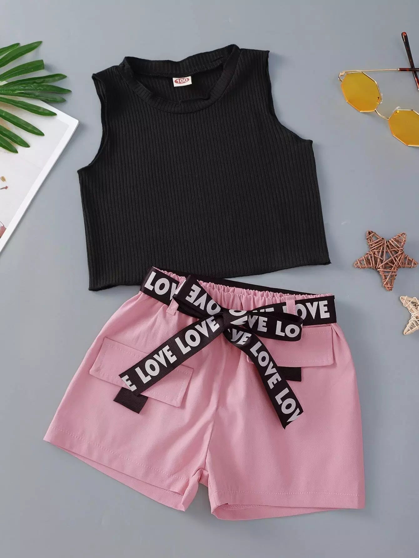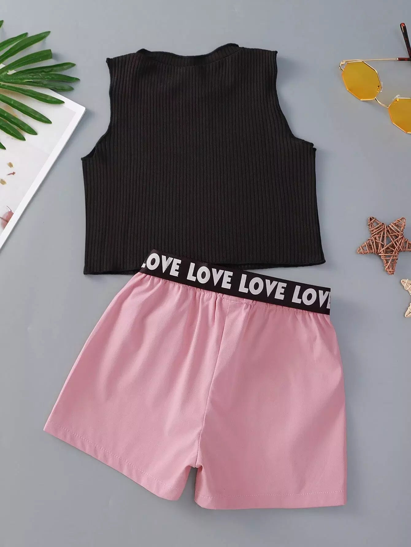 Toddler Girls Ribbed Knit Tank Top & Letter Graphic Shorts Without Belt