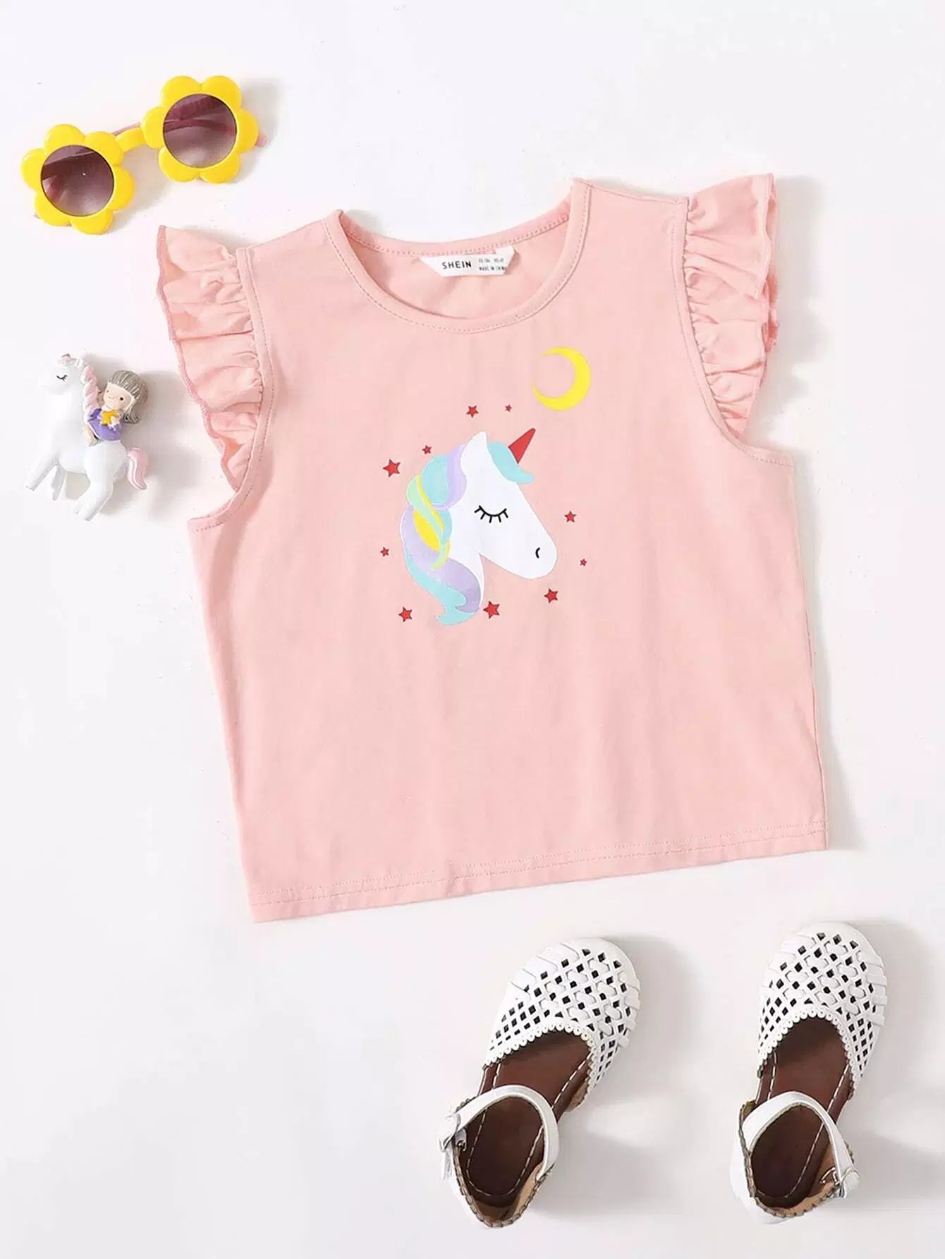 Toddler Girls Ruffle Armhole Unicorn Print Tank Top