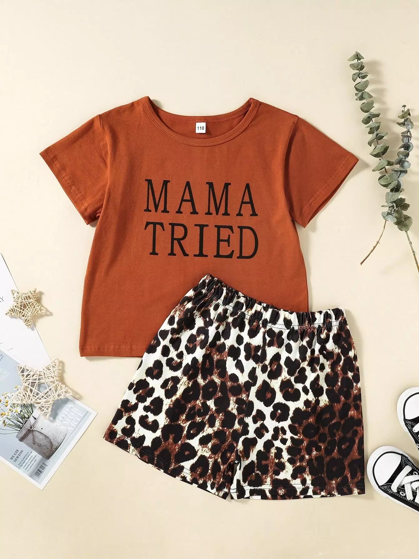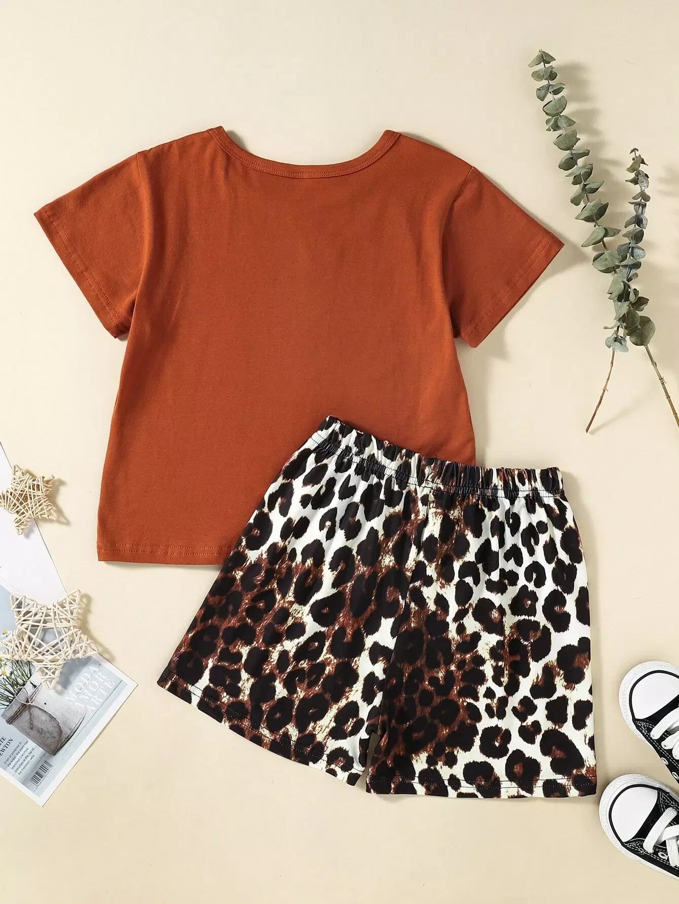 Toddler Girls Slogan Graphic Tee & Leopard Shorts
