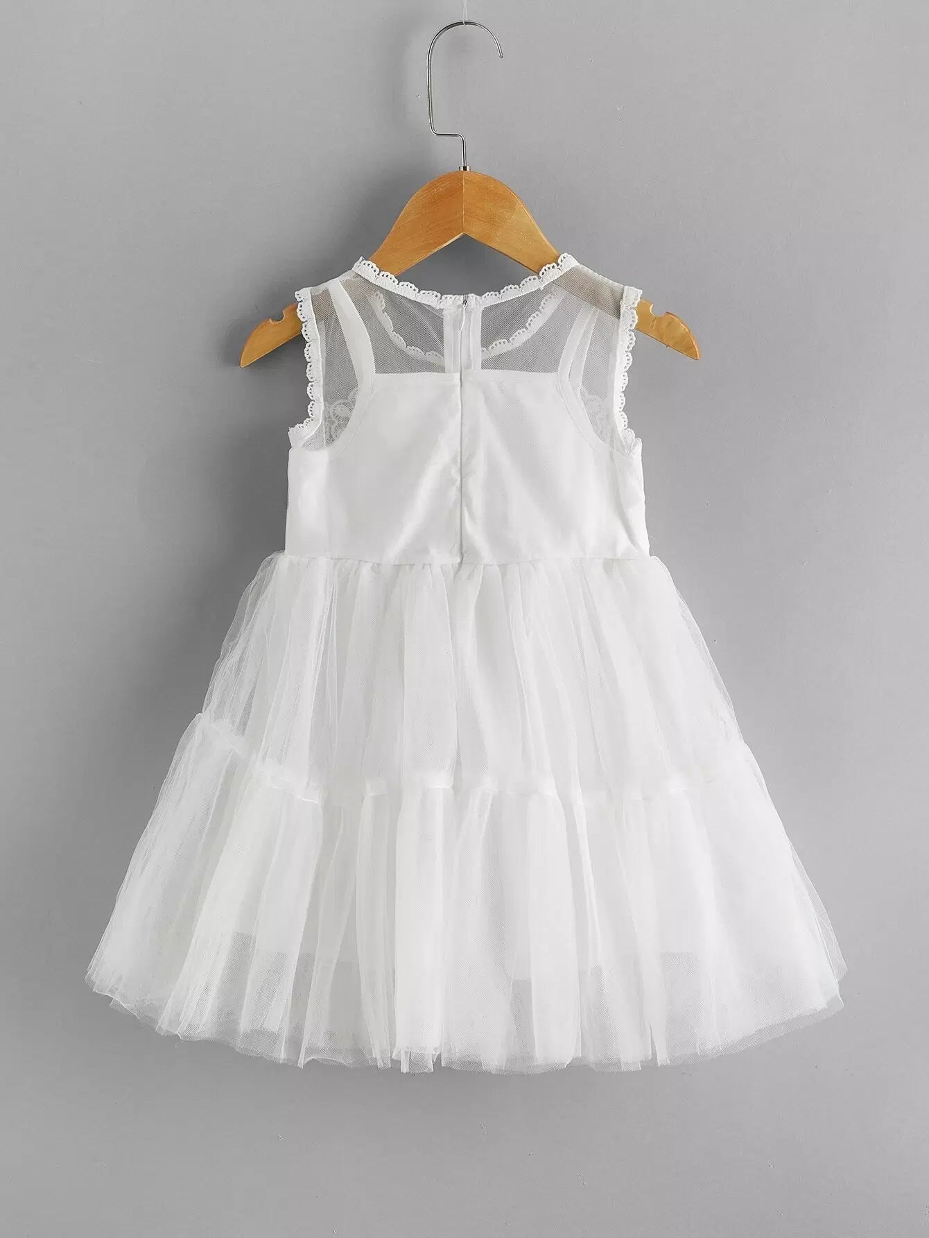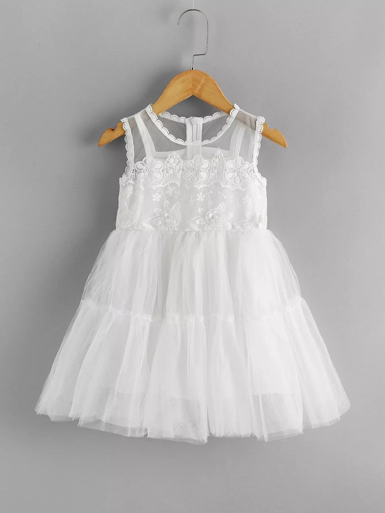 Toddler Girls Solid Pearls Beaded Mesh Babydoll Dress