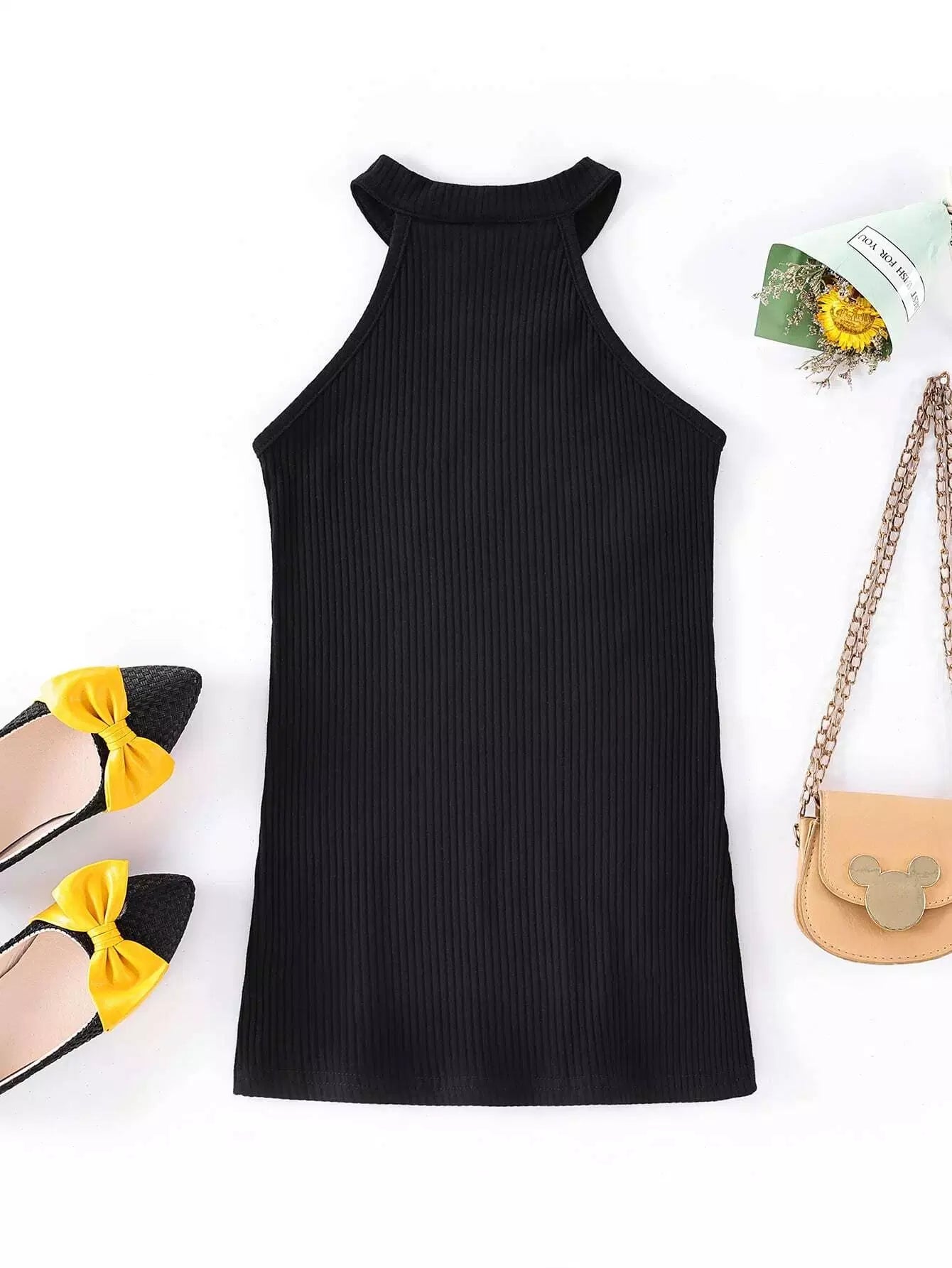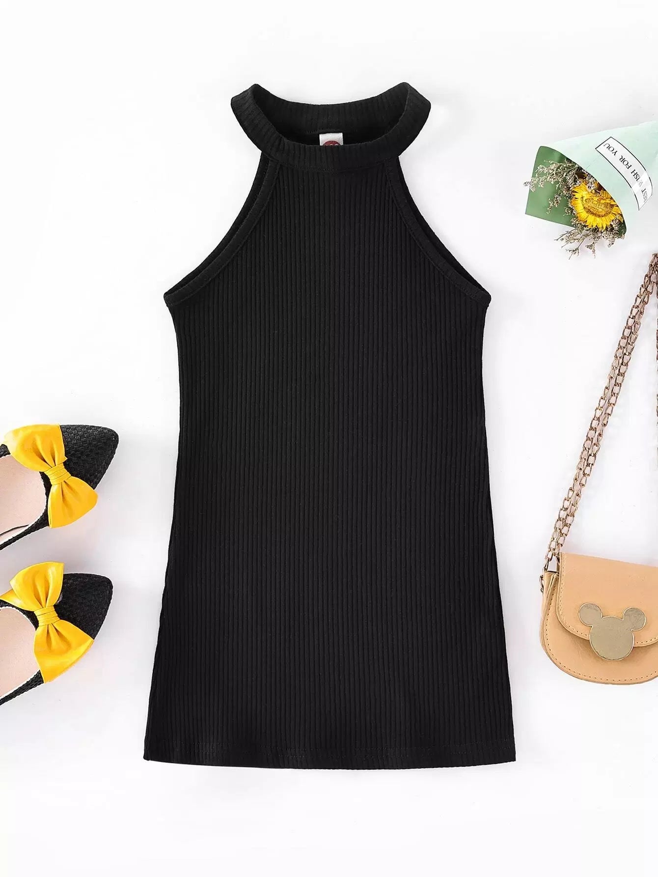 Toddler Girls Solid Rib-Knit Halter Dress
