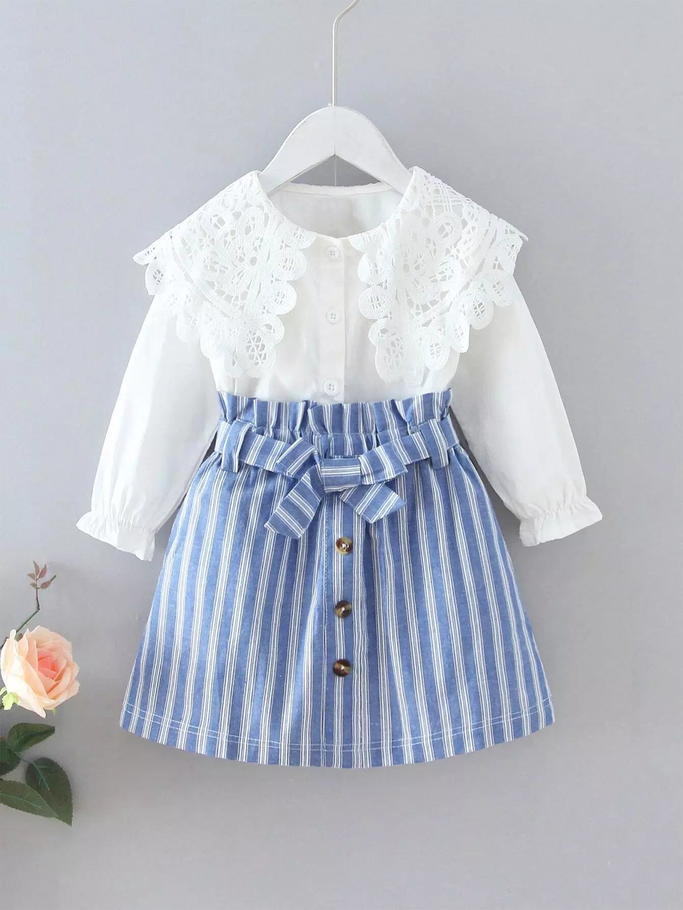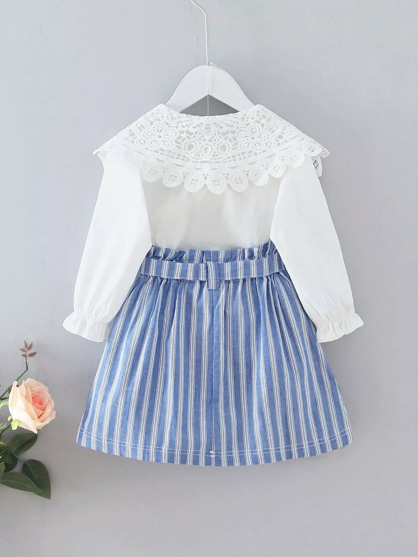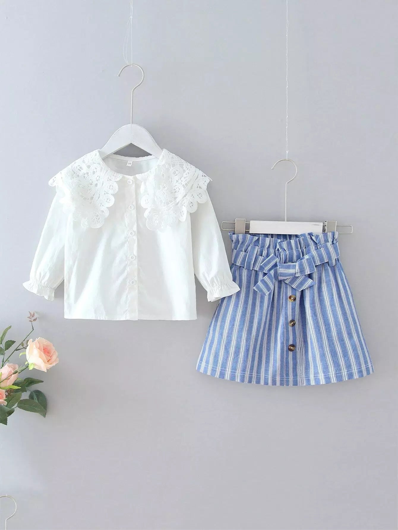 Toddler Girls Statement Collar Blouse & Striped Skirt Without Belt