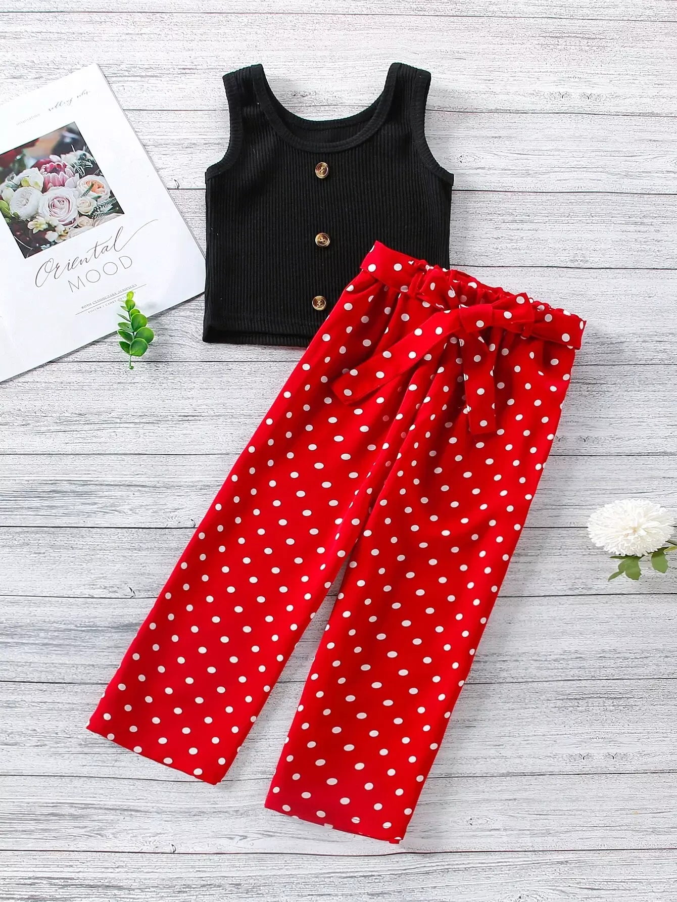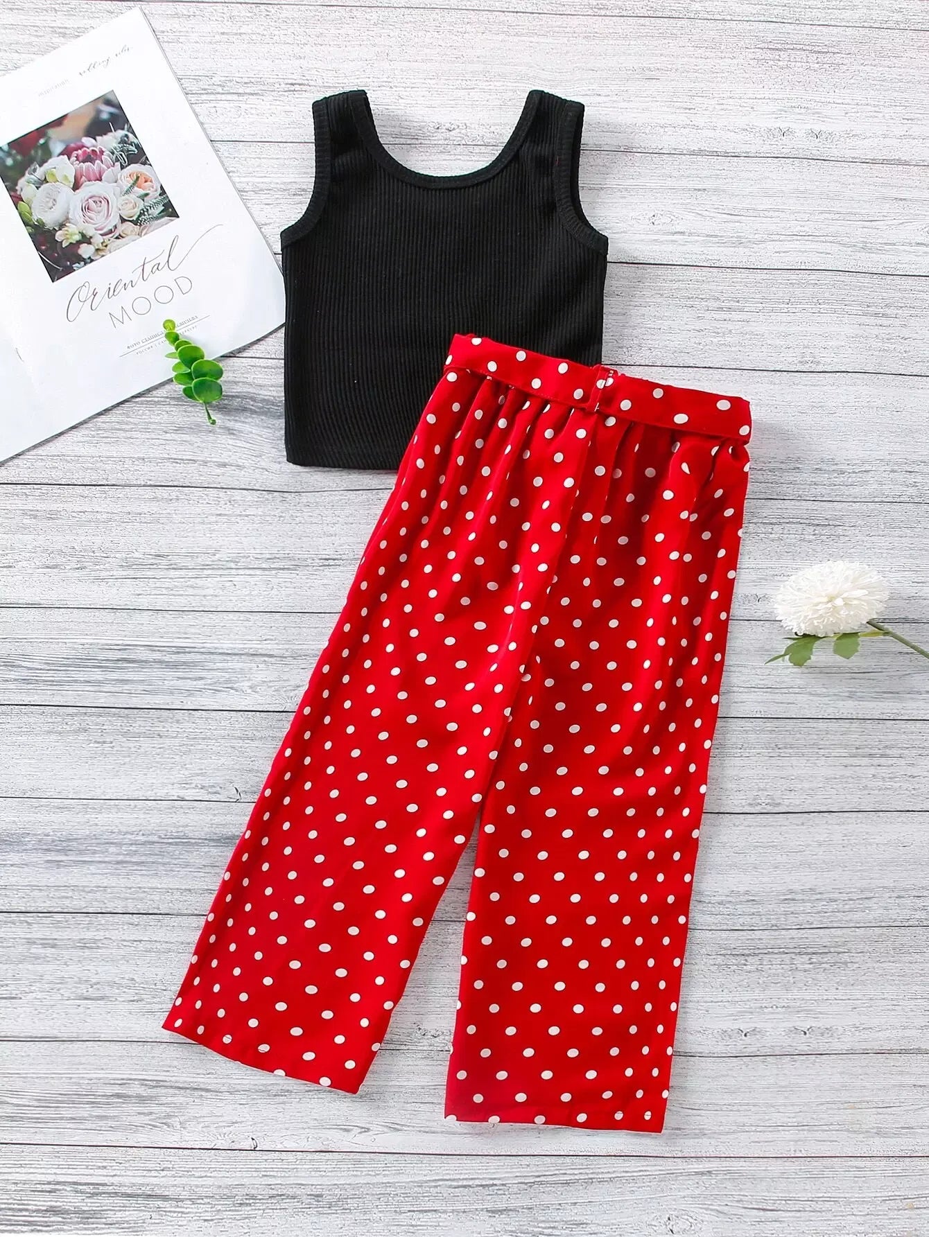Toddler Girls Tank Top With Polka Dot Pants Without Belt