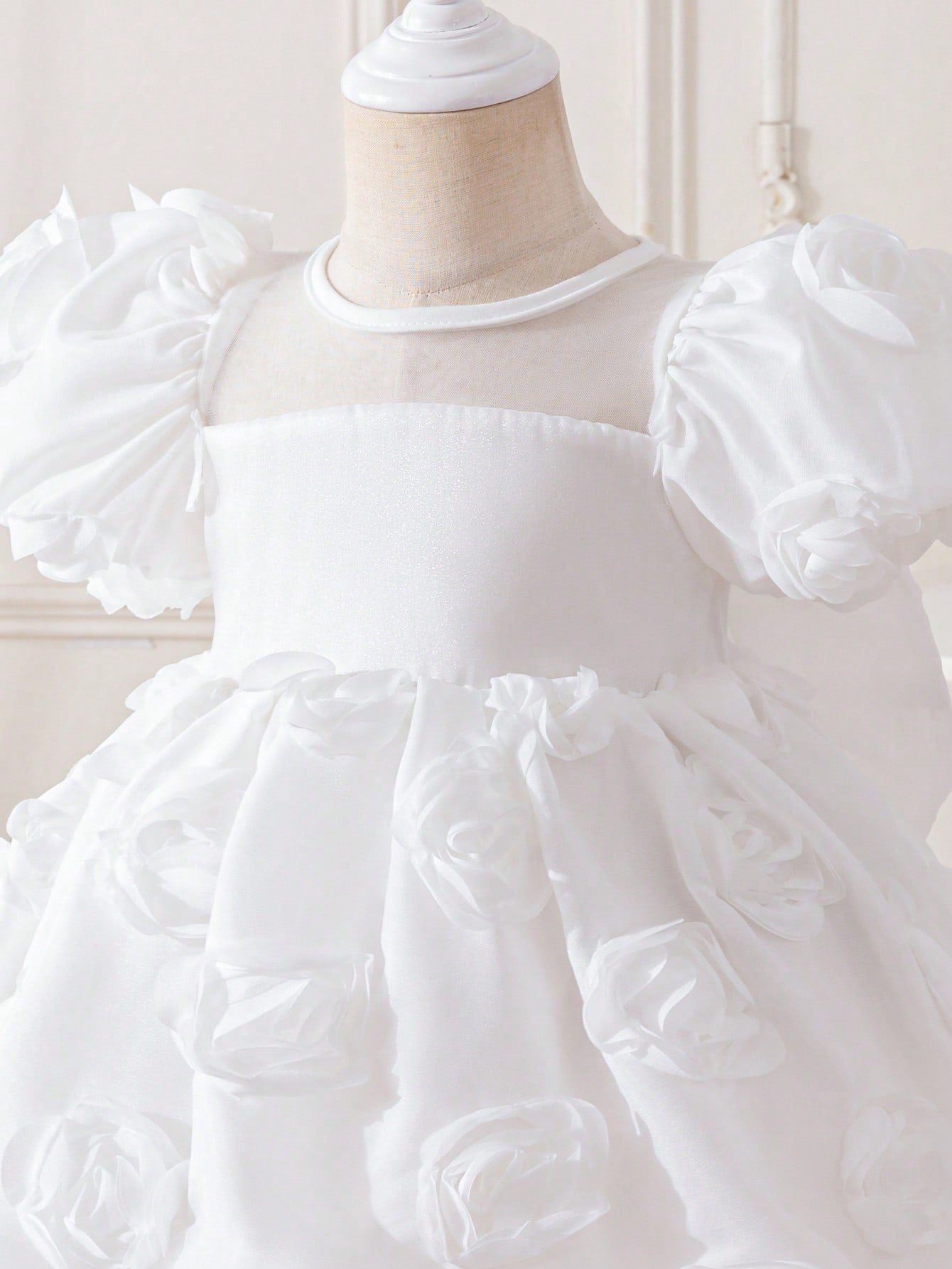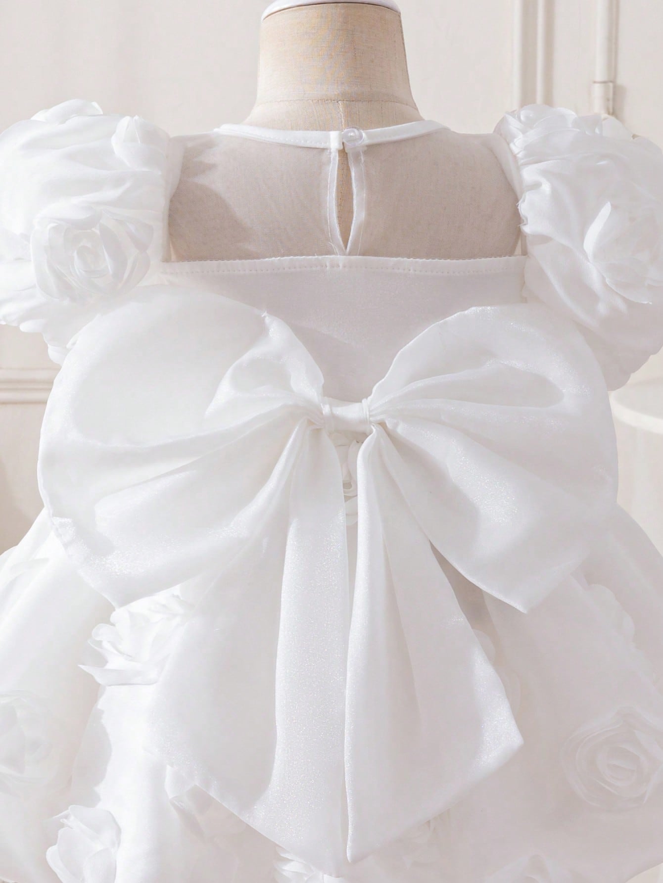 Glamorique Kids Baby Girls' Elegant Birthday Party Holiday Puff Sleeve White 3D Rose Flower One-Year-Old