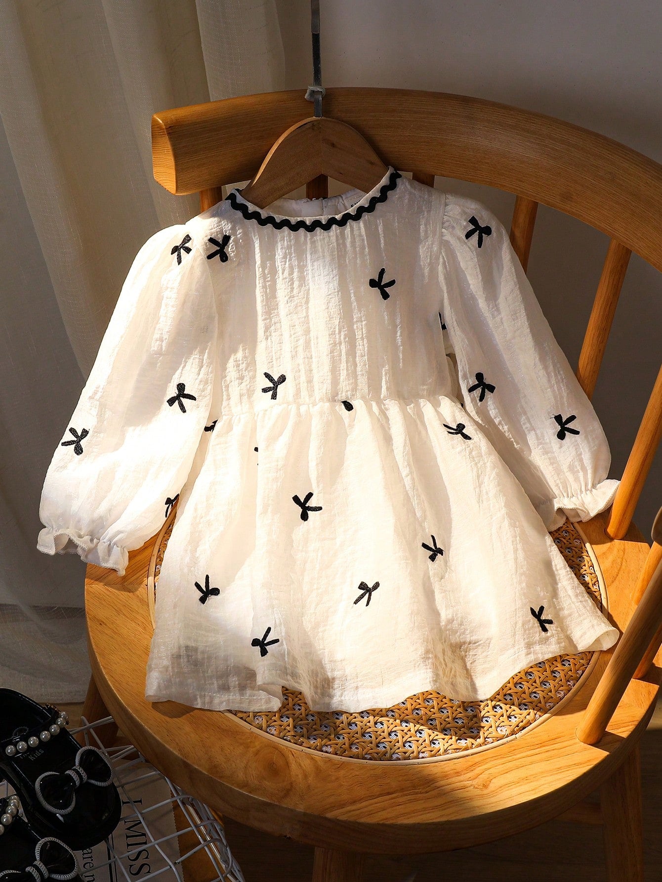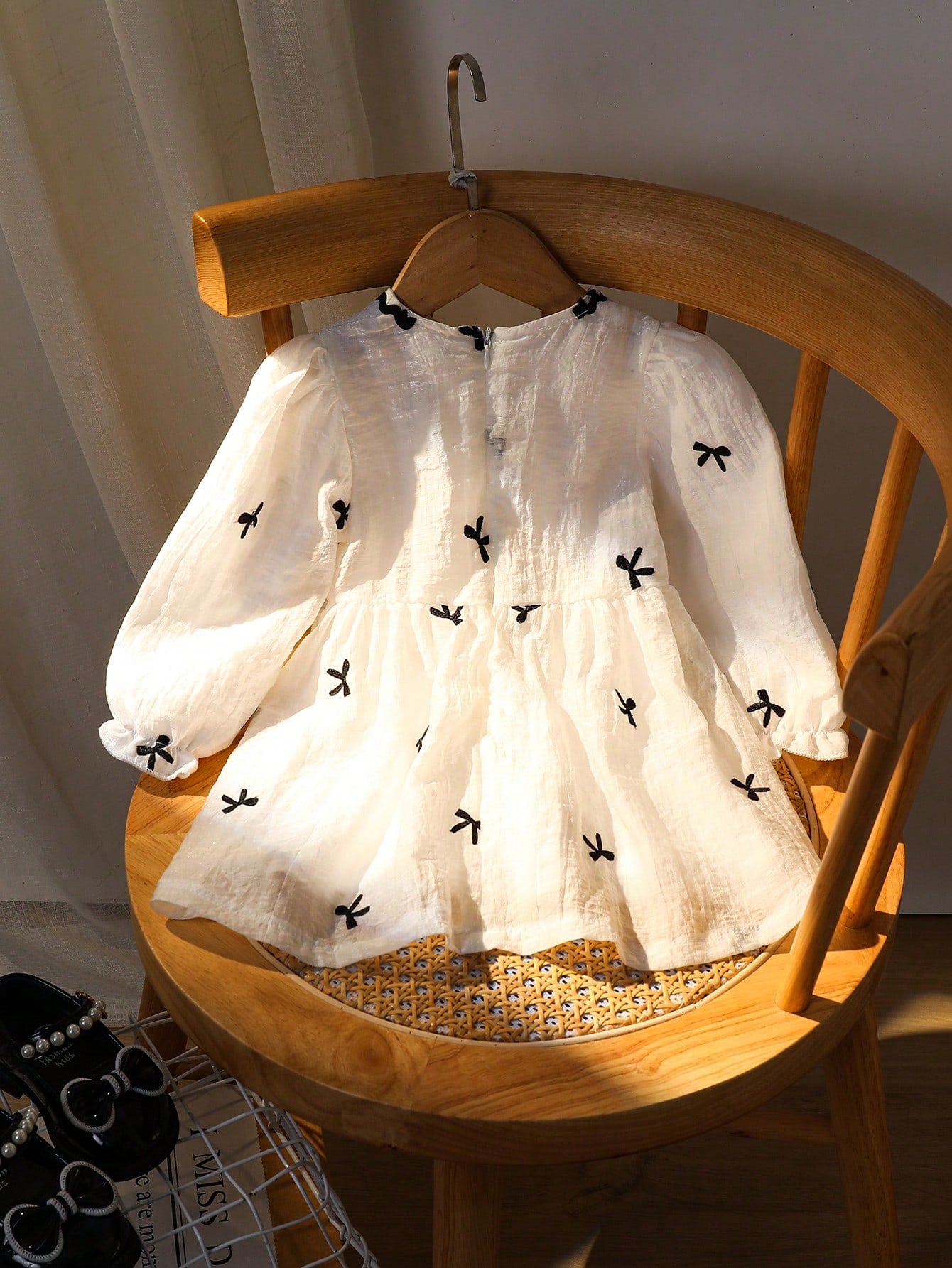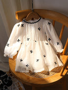 Souflis Souflis Baby Girls' Elegant Bowknot Embroidered Long Sleeve Silk Blend Dress Autumn/Winter