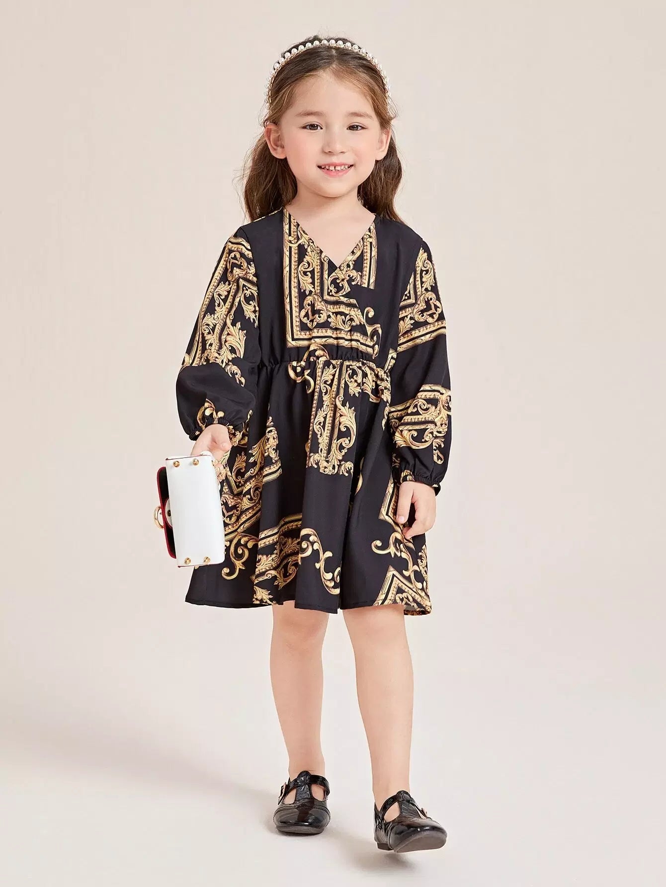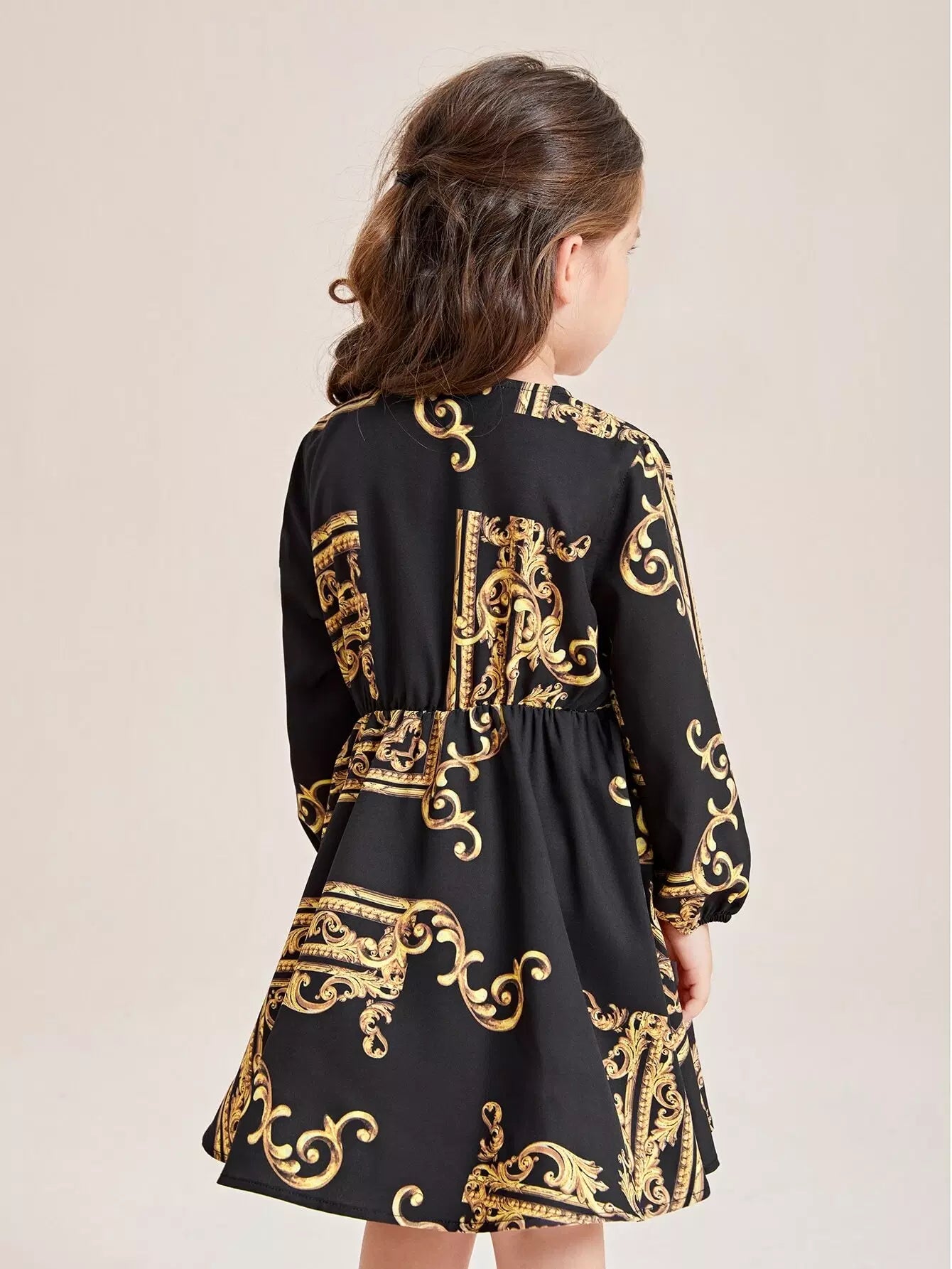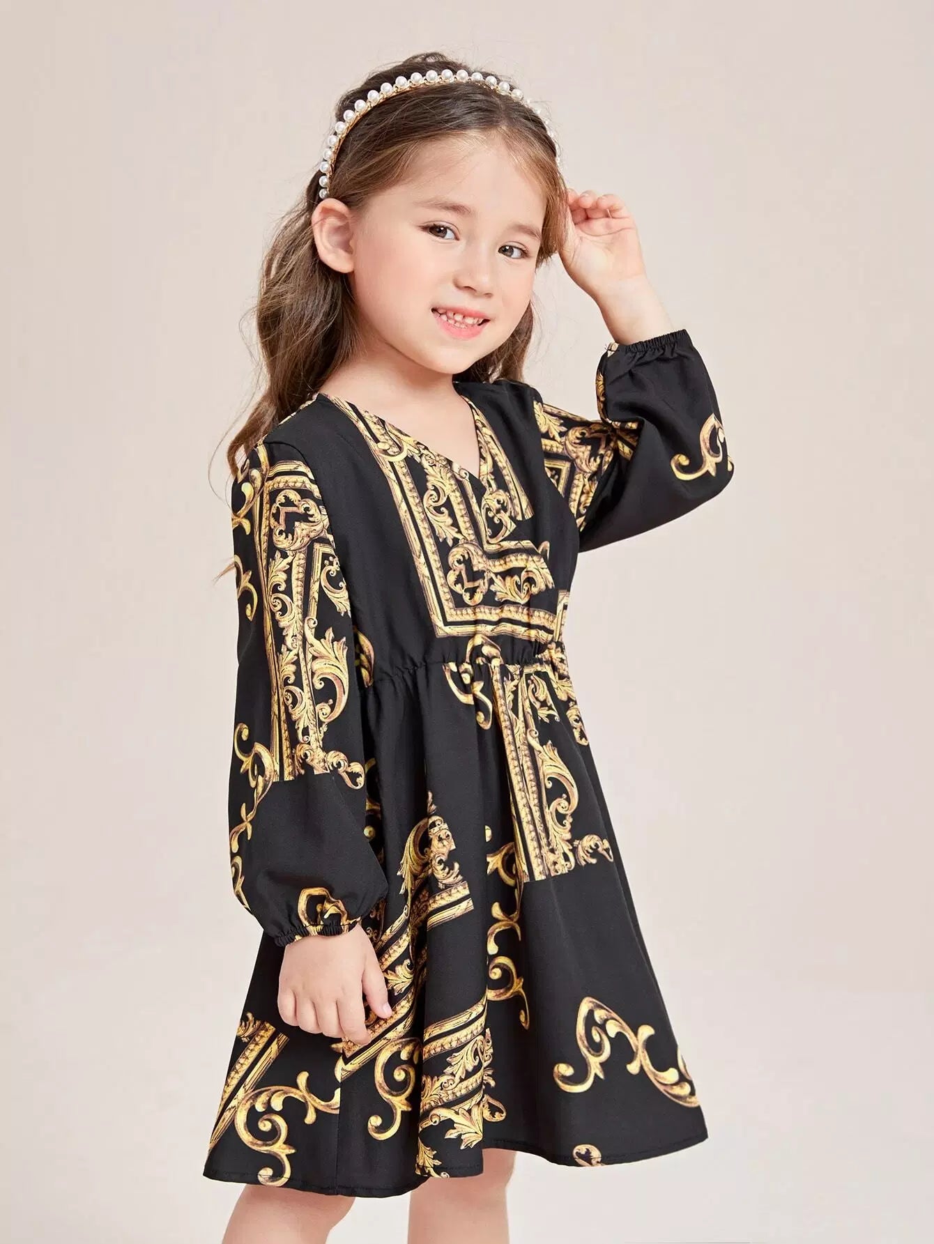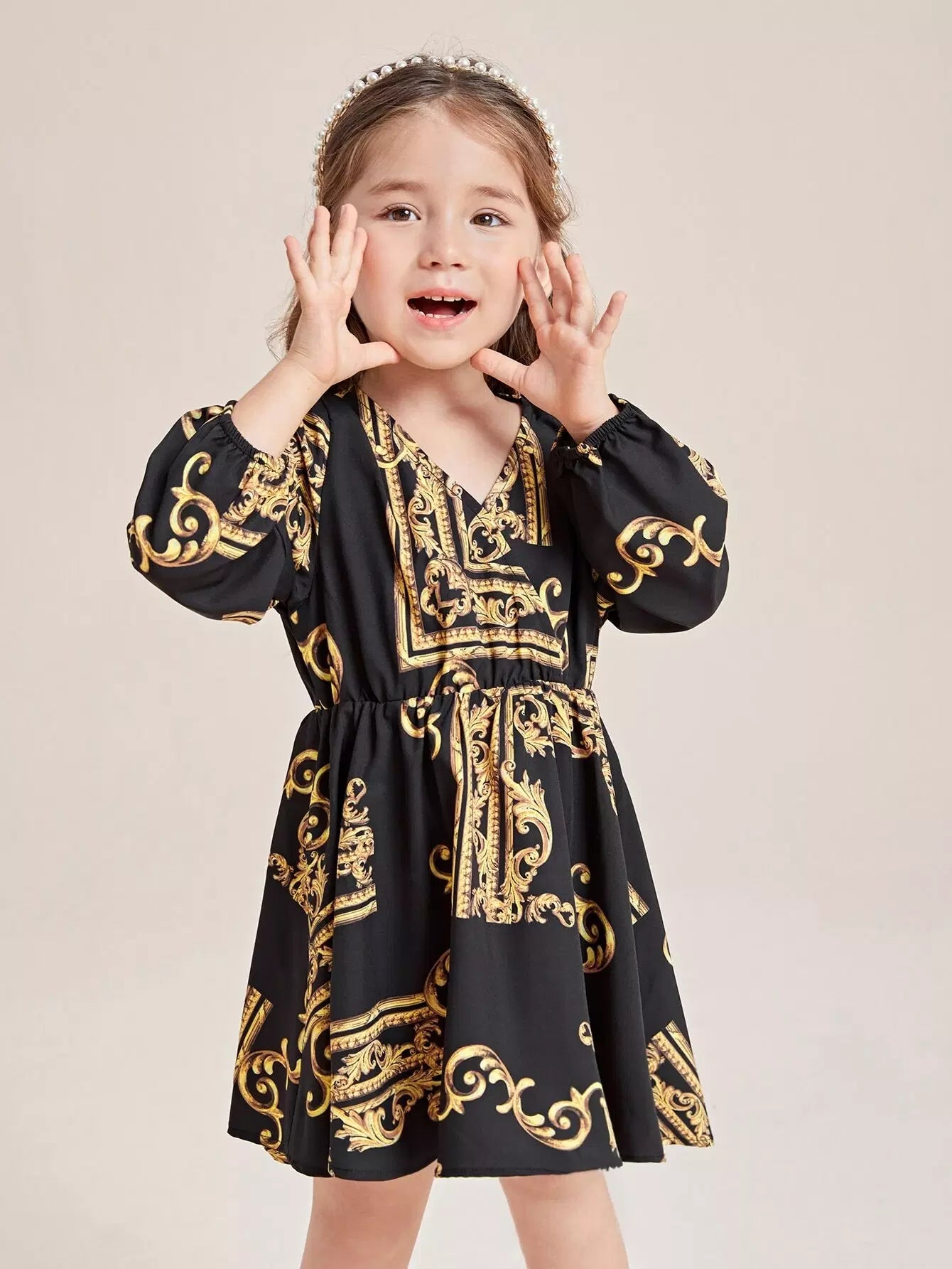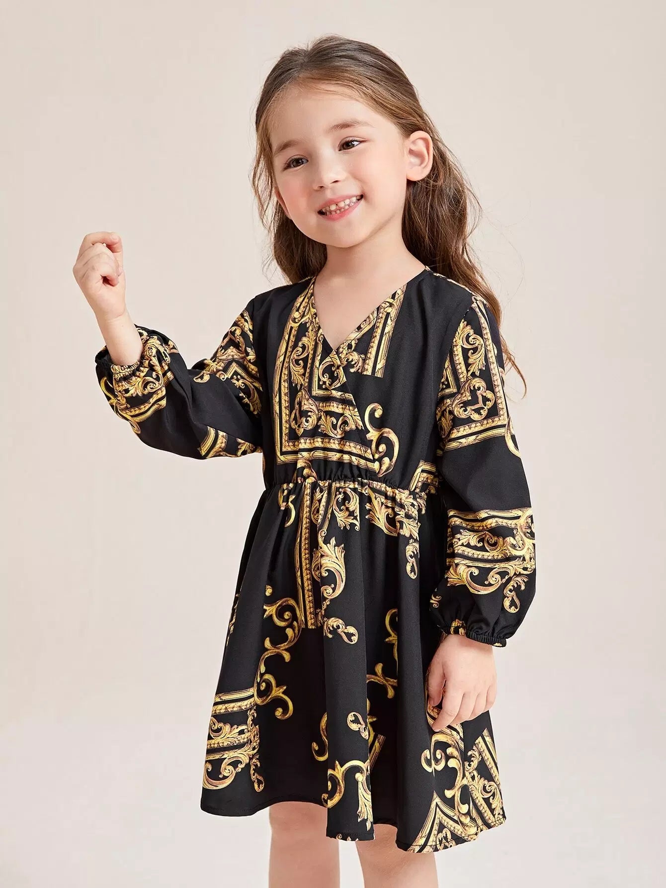 Toddler Girls Baroque Print Lantern Sleeve Dress