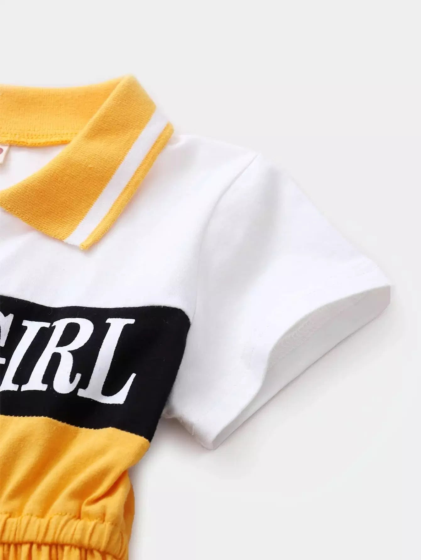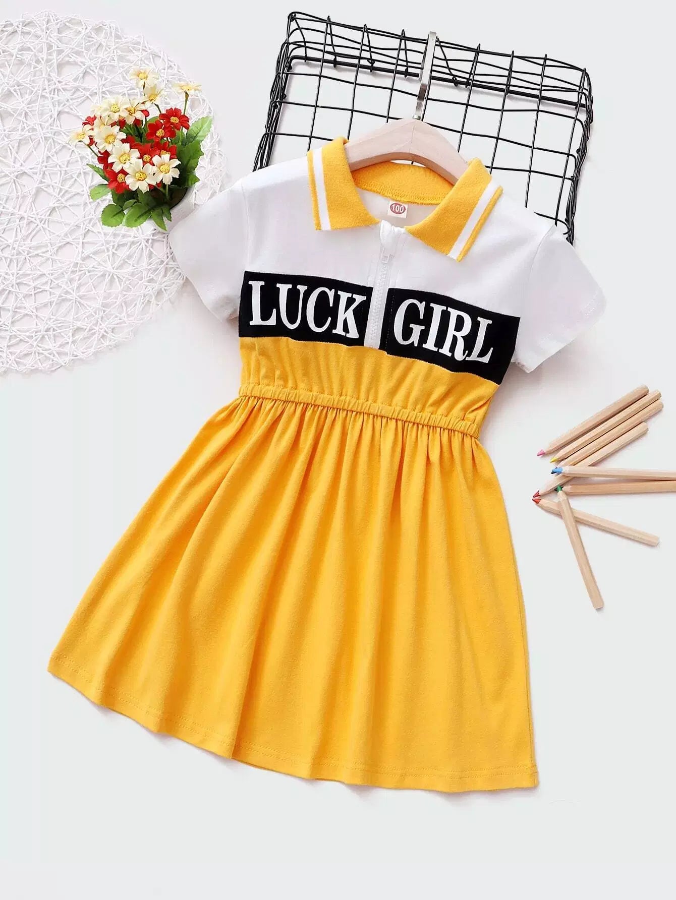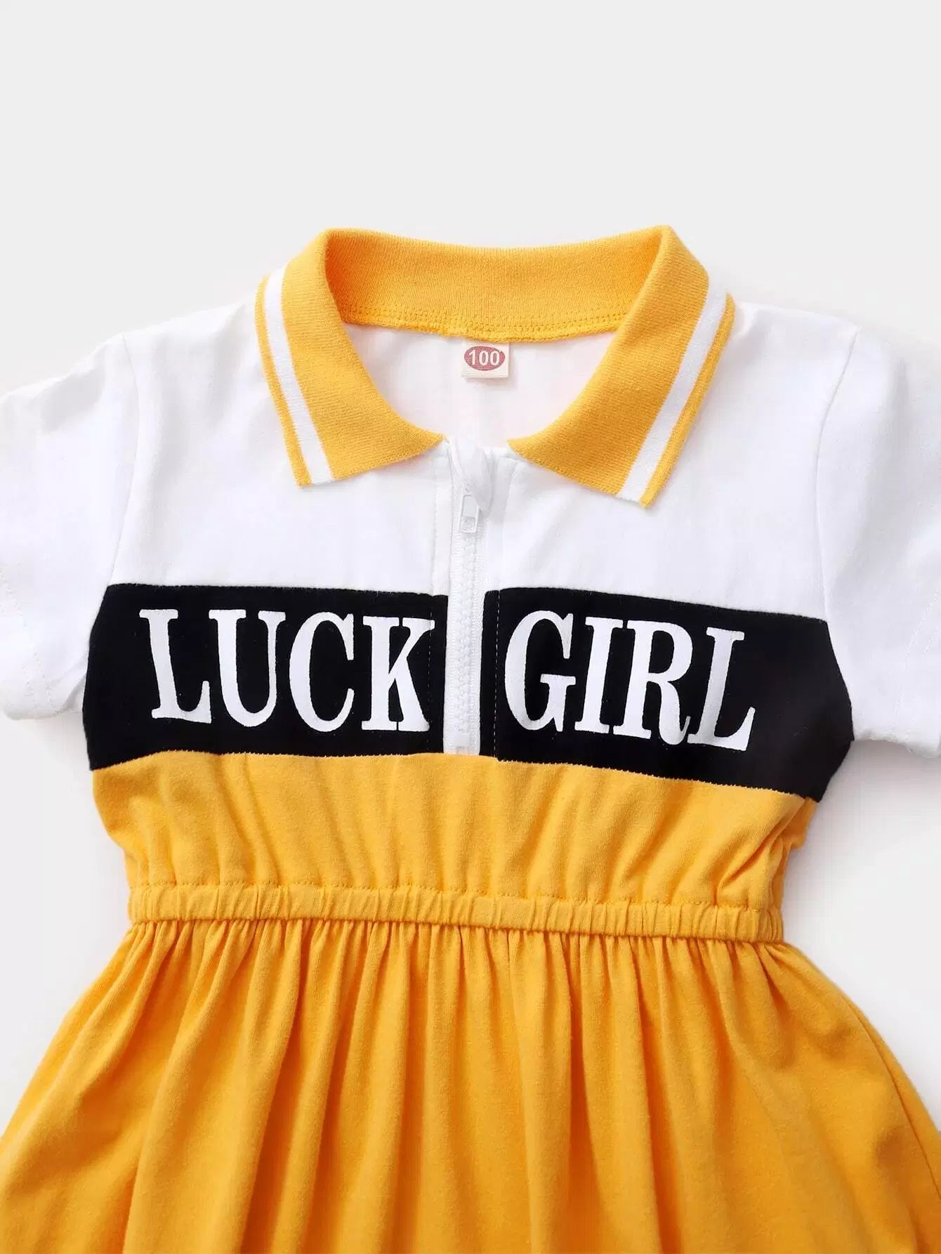 Kids - Toddler Girls Contrast Collar Letter Graphic Spliced Dress