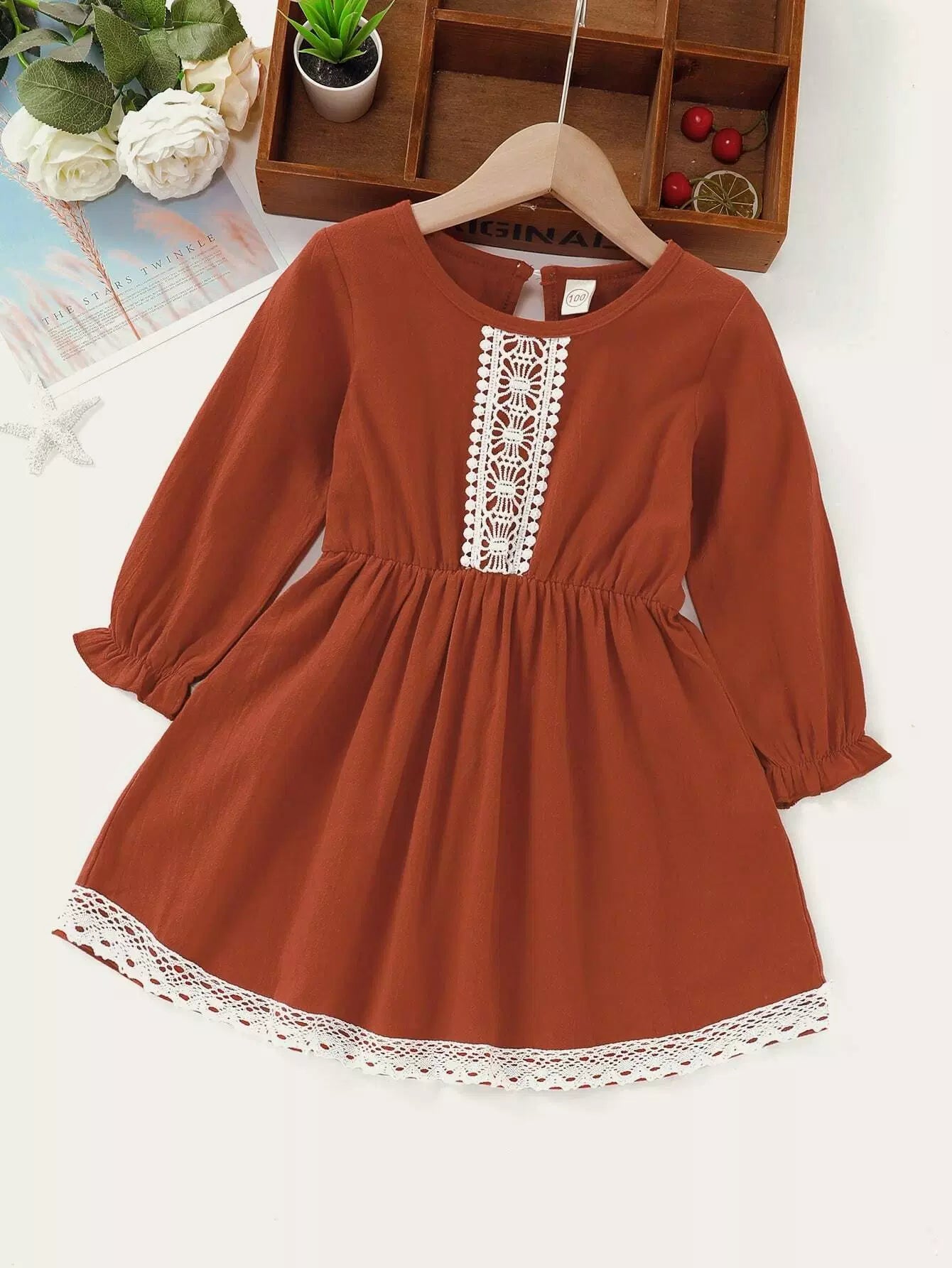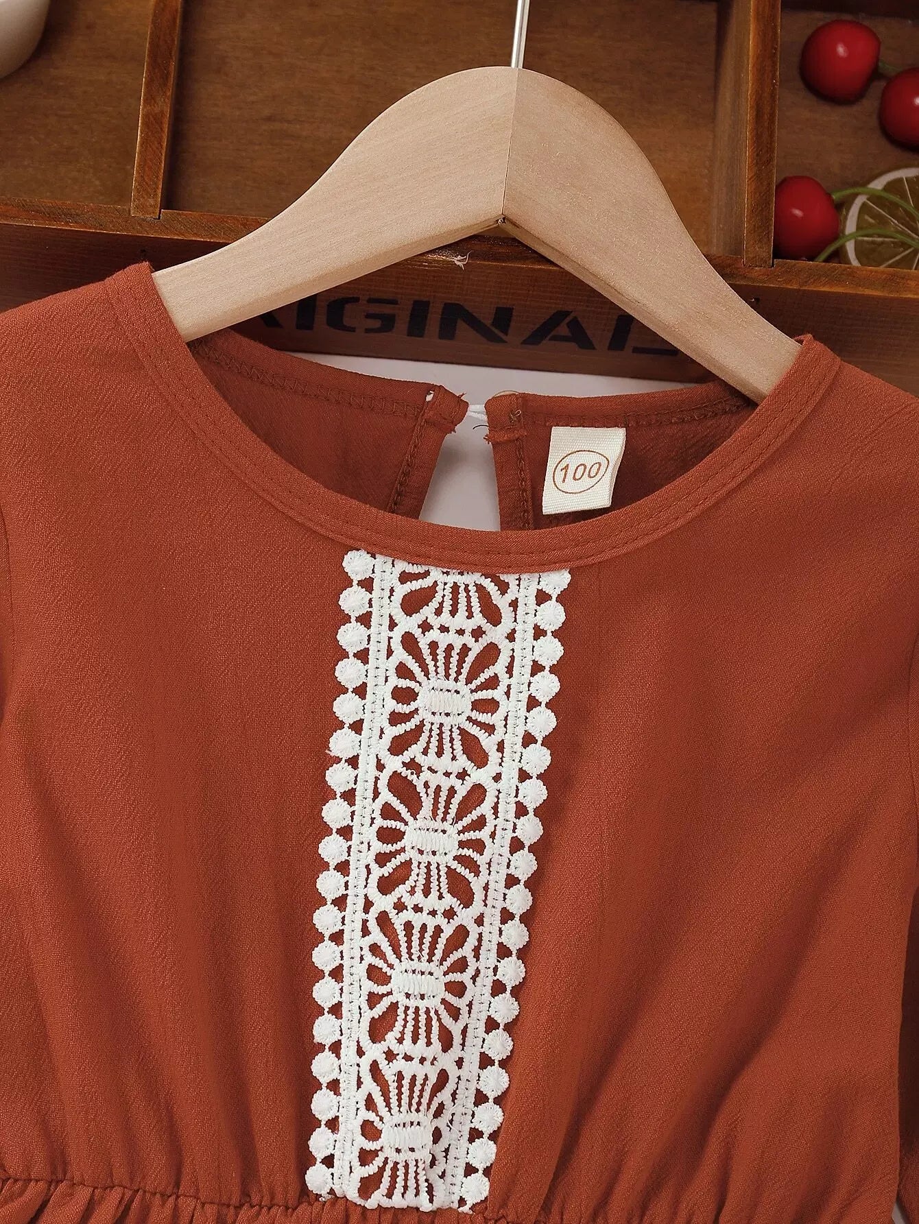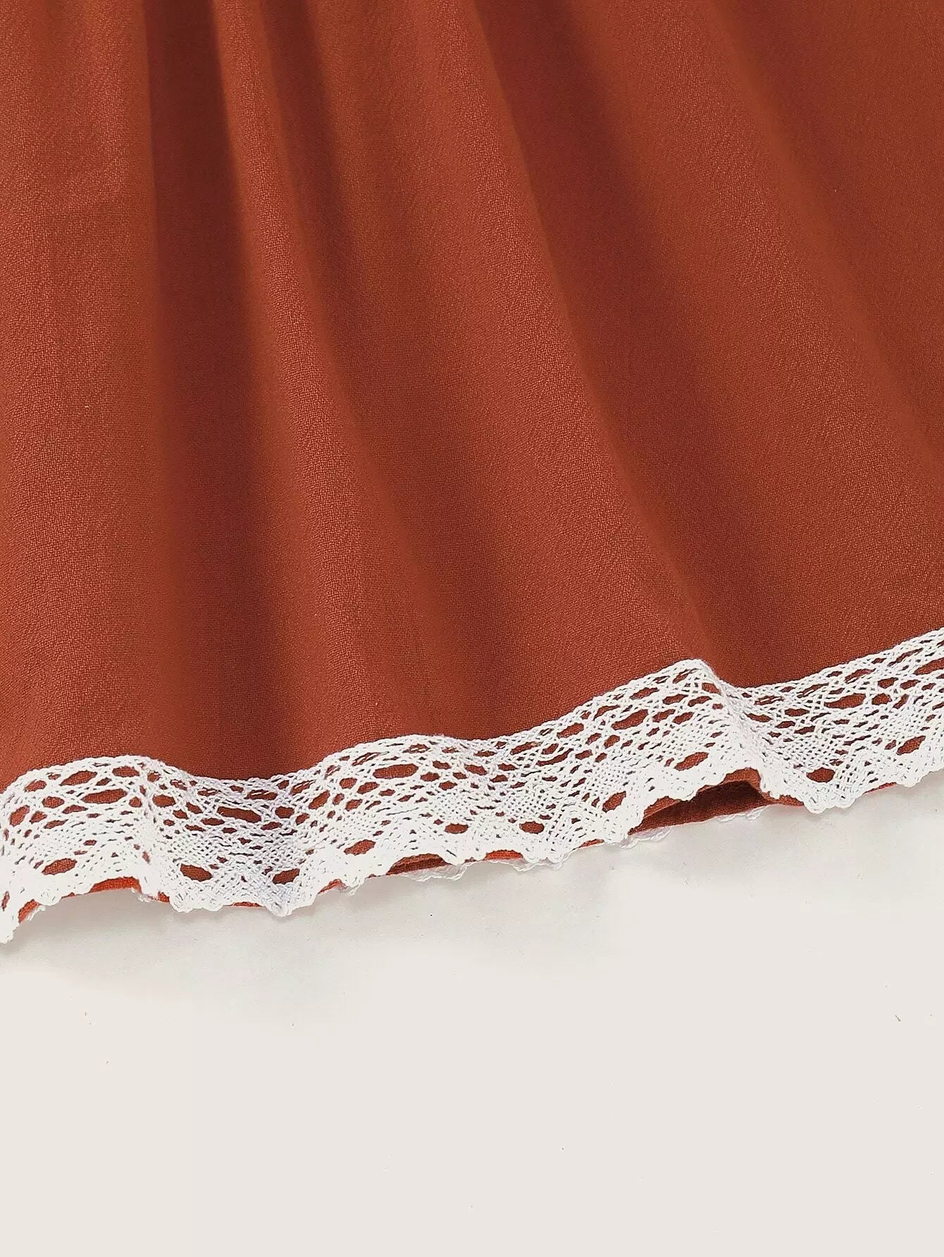 Toddler Girls Contrast Lace Button Keyhole Dress
