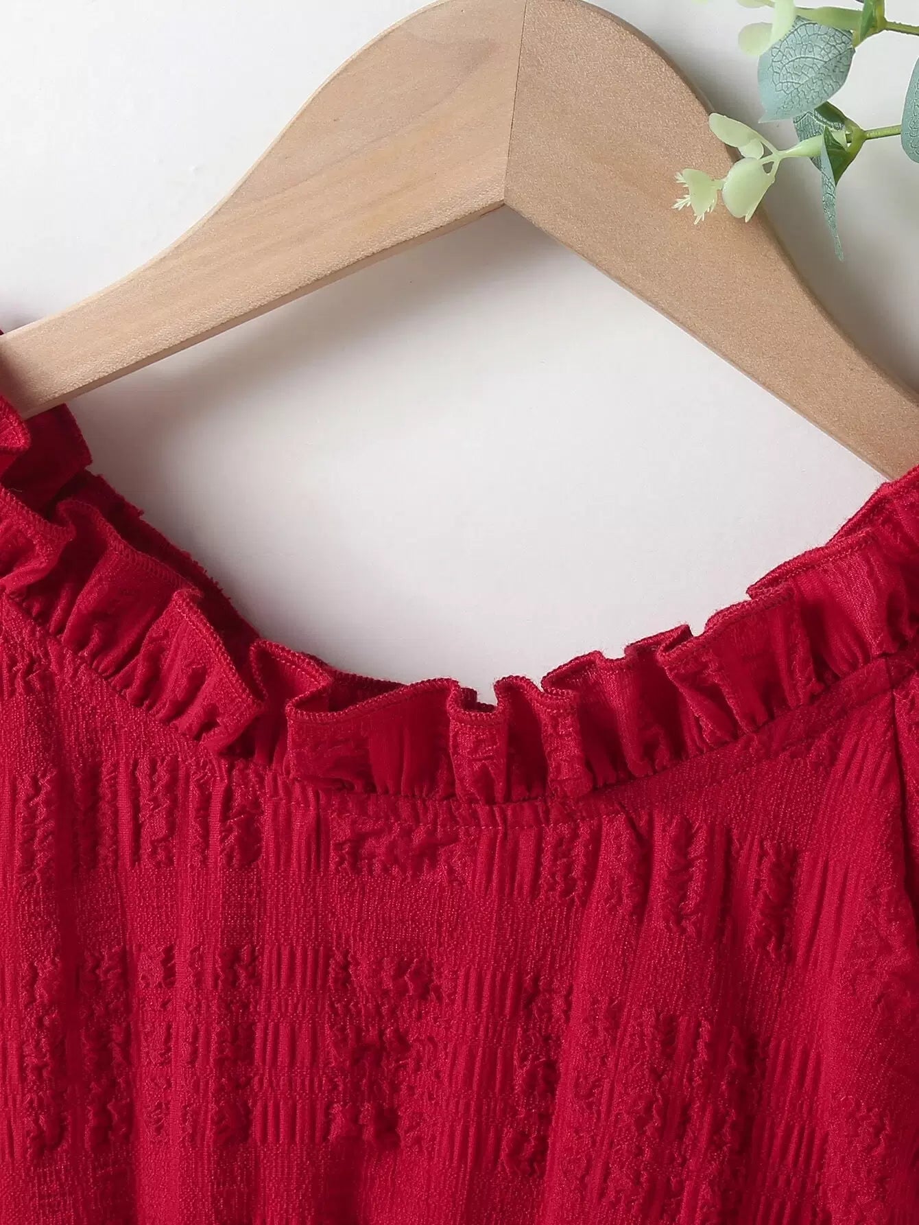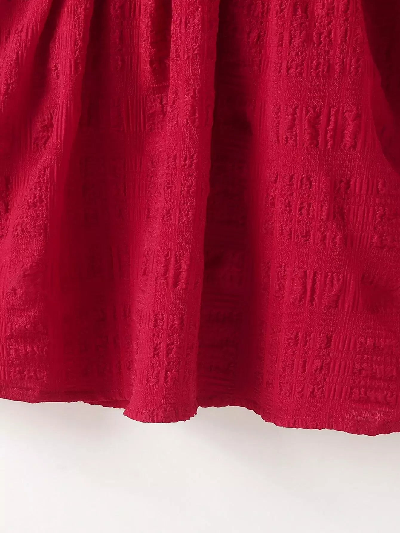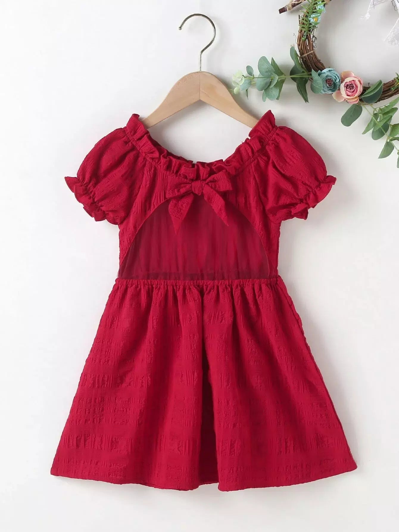 Toddler Girls Contrast Mesh Bow Back Ruffle Trim A-line Dress