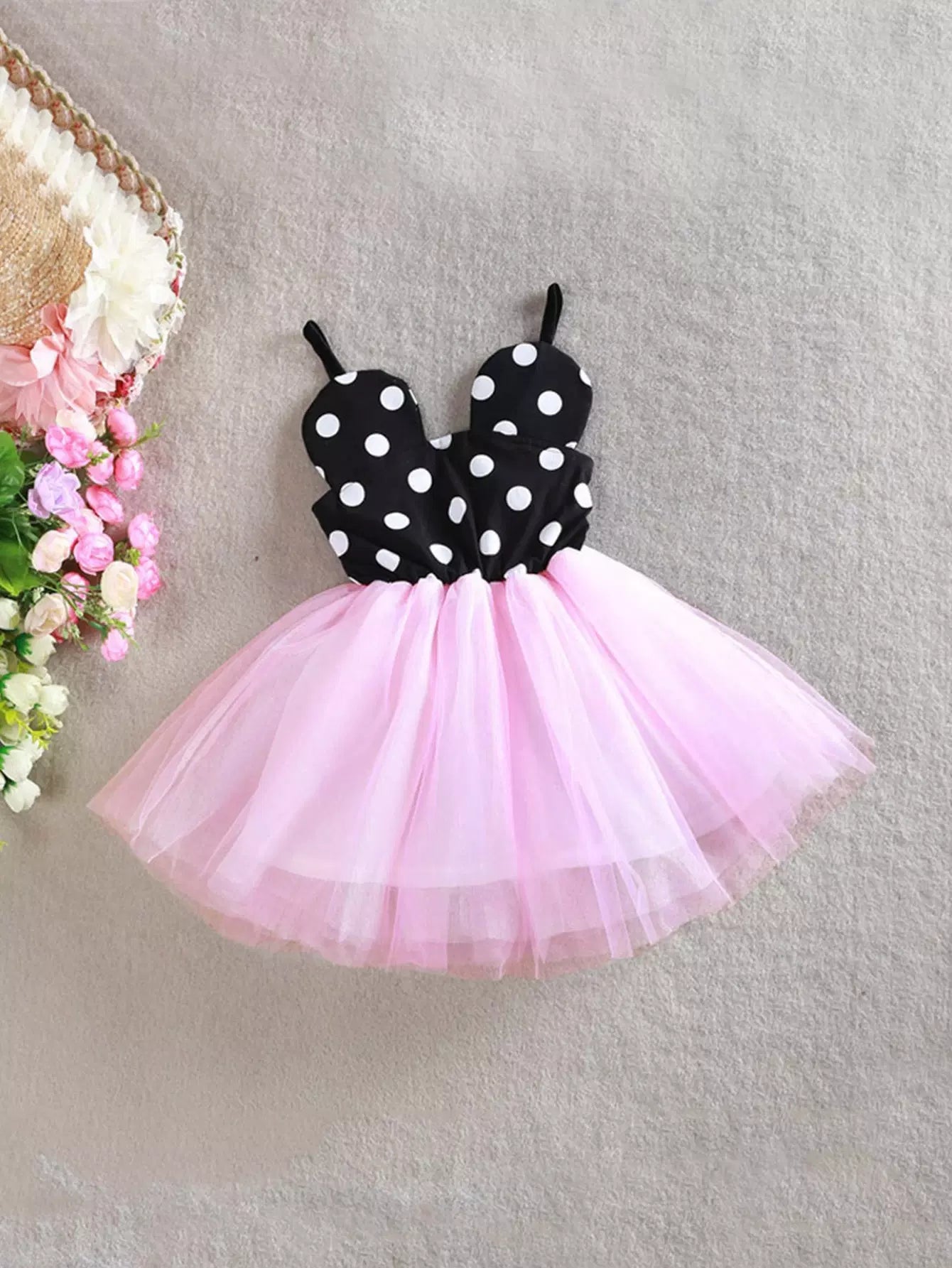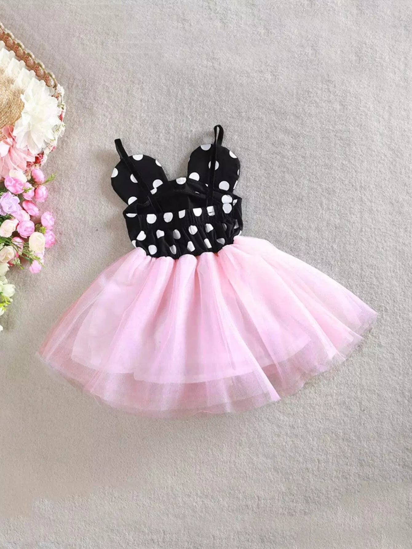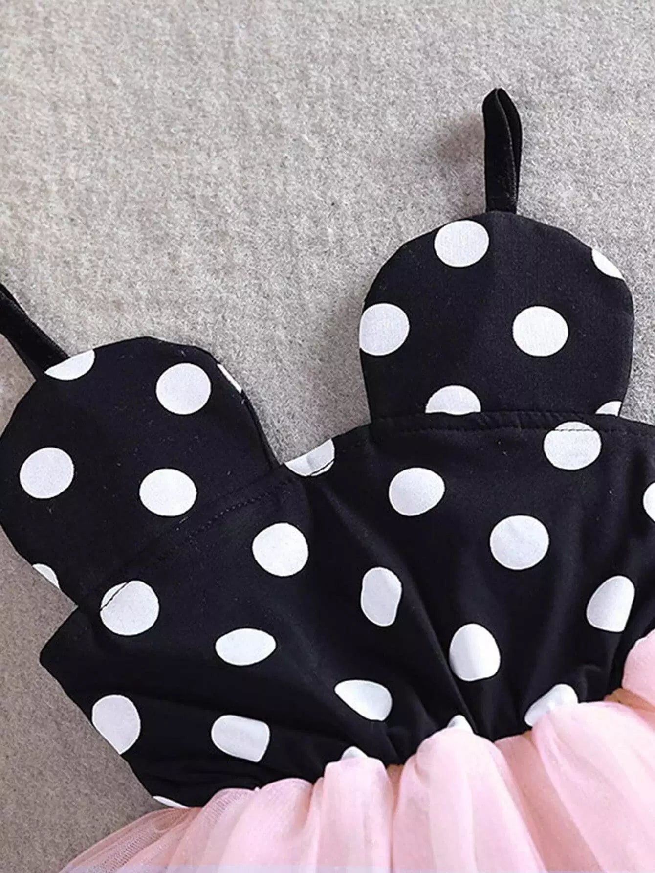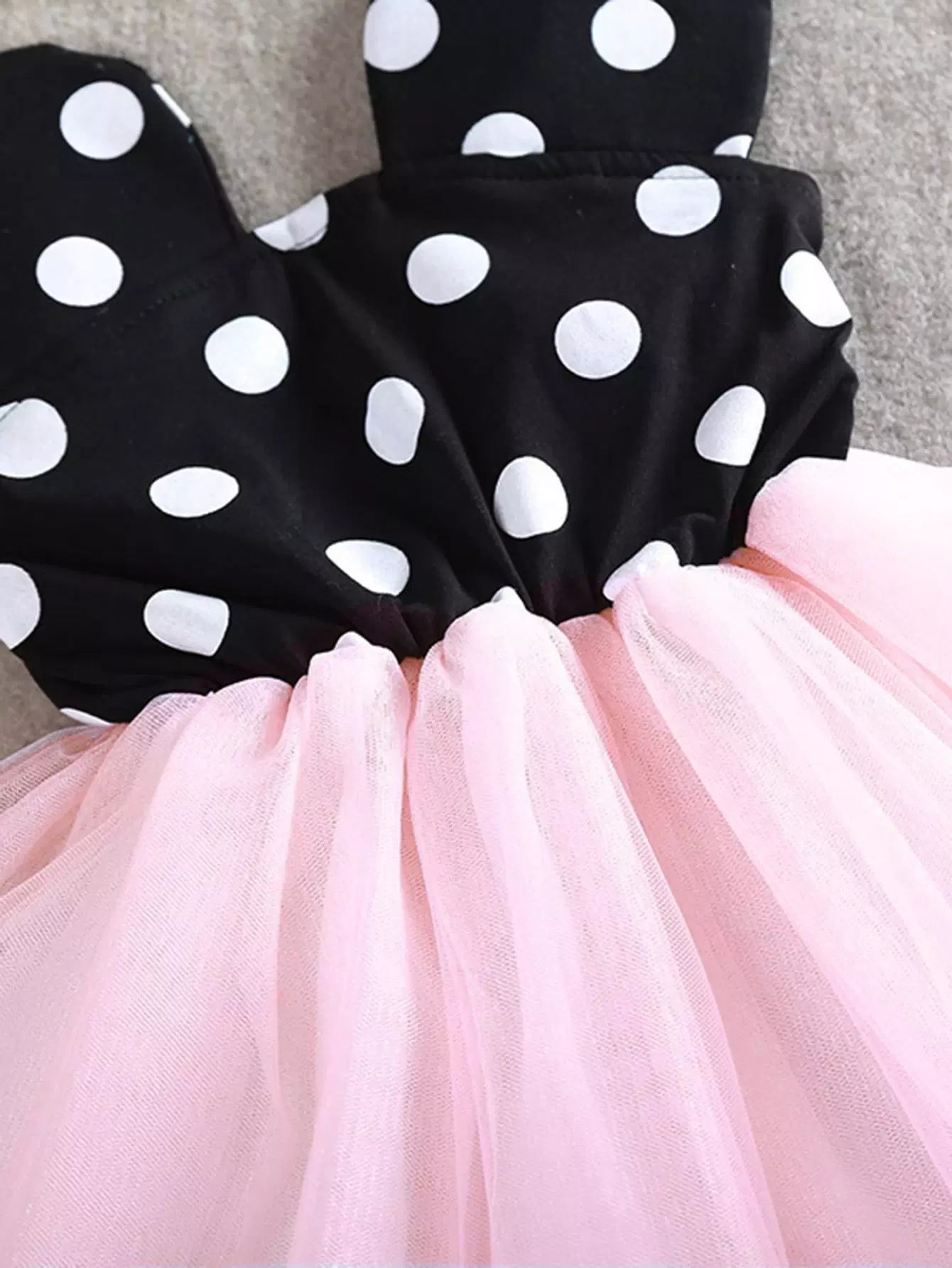 Toddler Girls Contrast Mesh Polka Dot Cami Dress