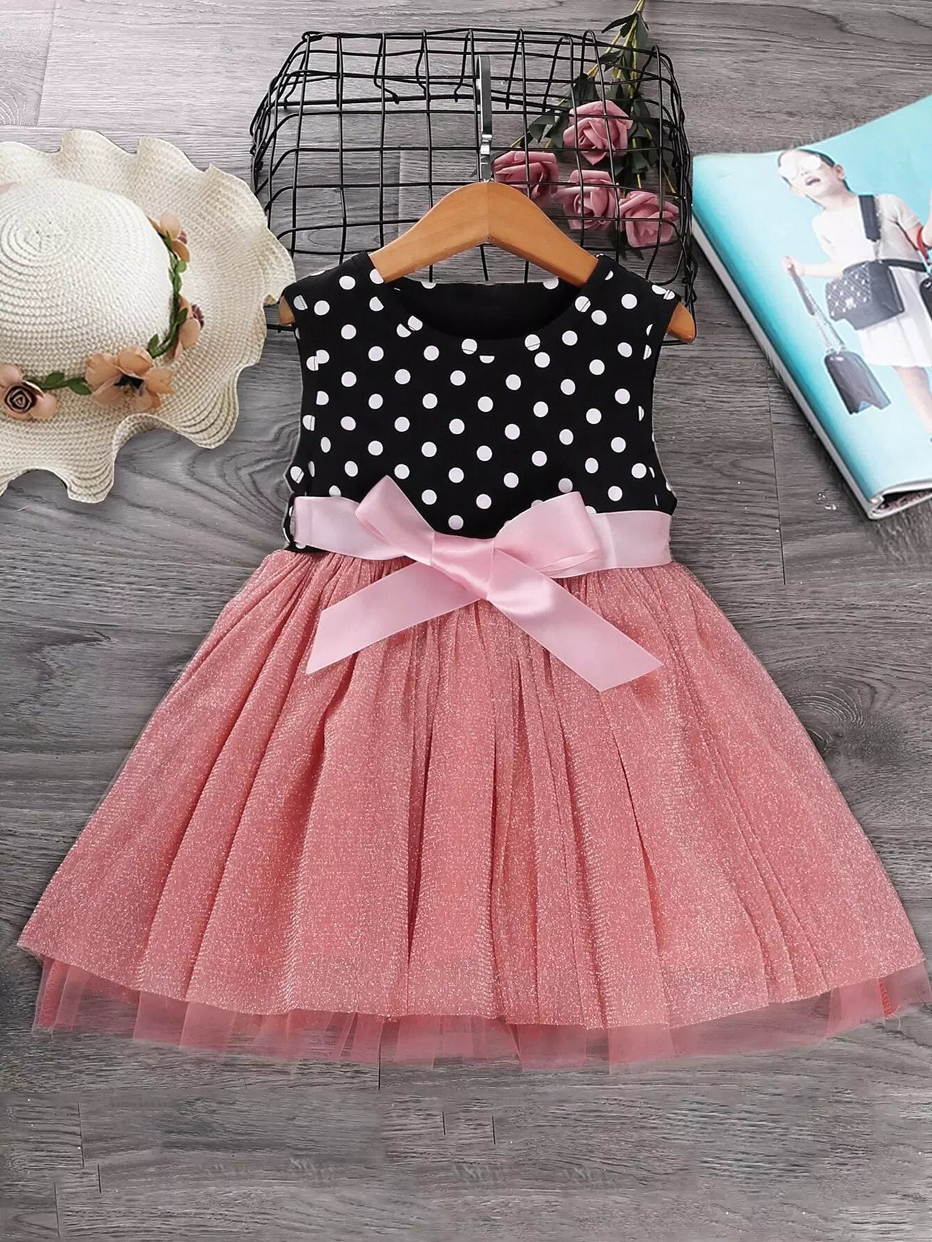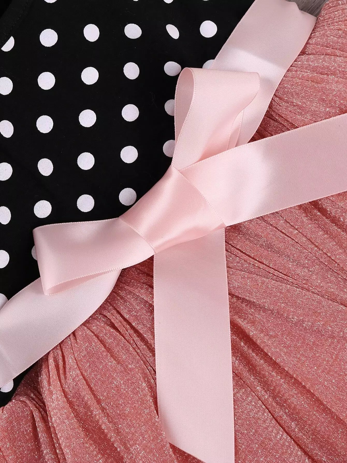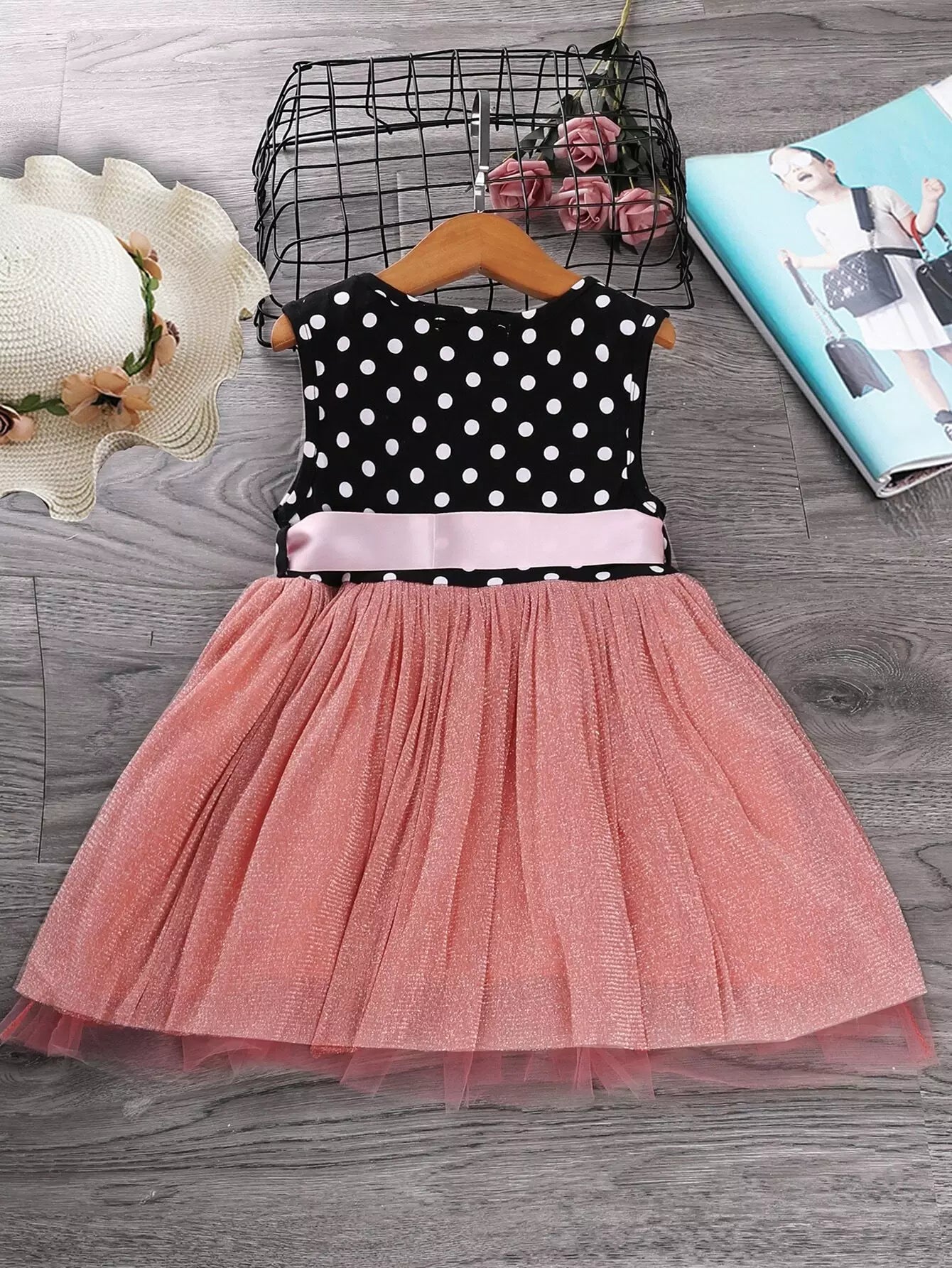Toddler Girls Contrast Polka Dot Tutu Dress Without Belt