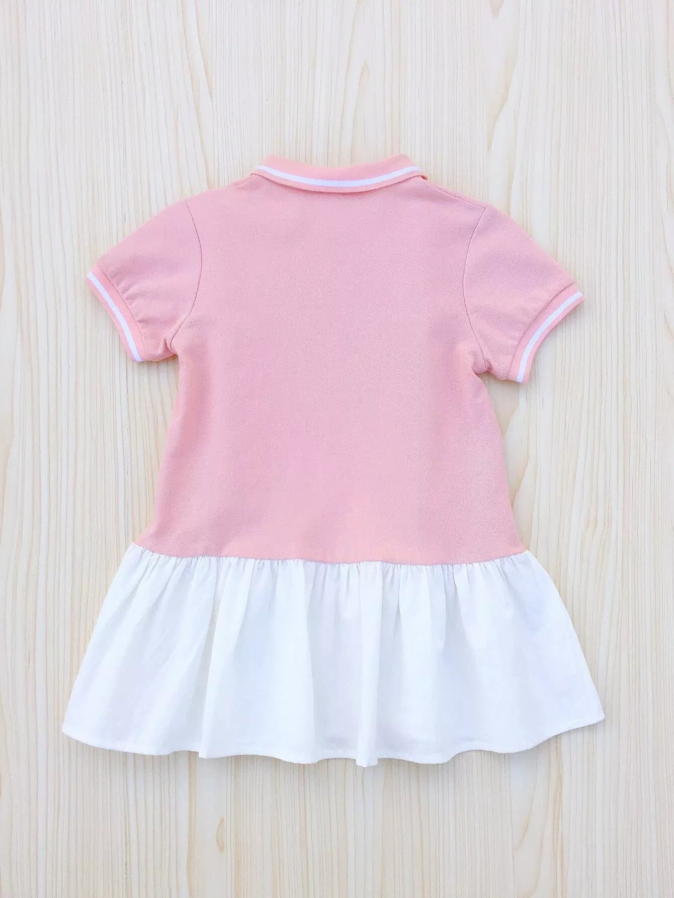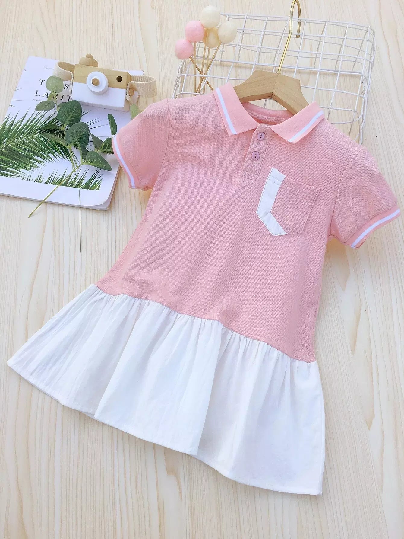 Toddler Girls Contrast Ruffle Hem Polo Neck Dress