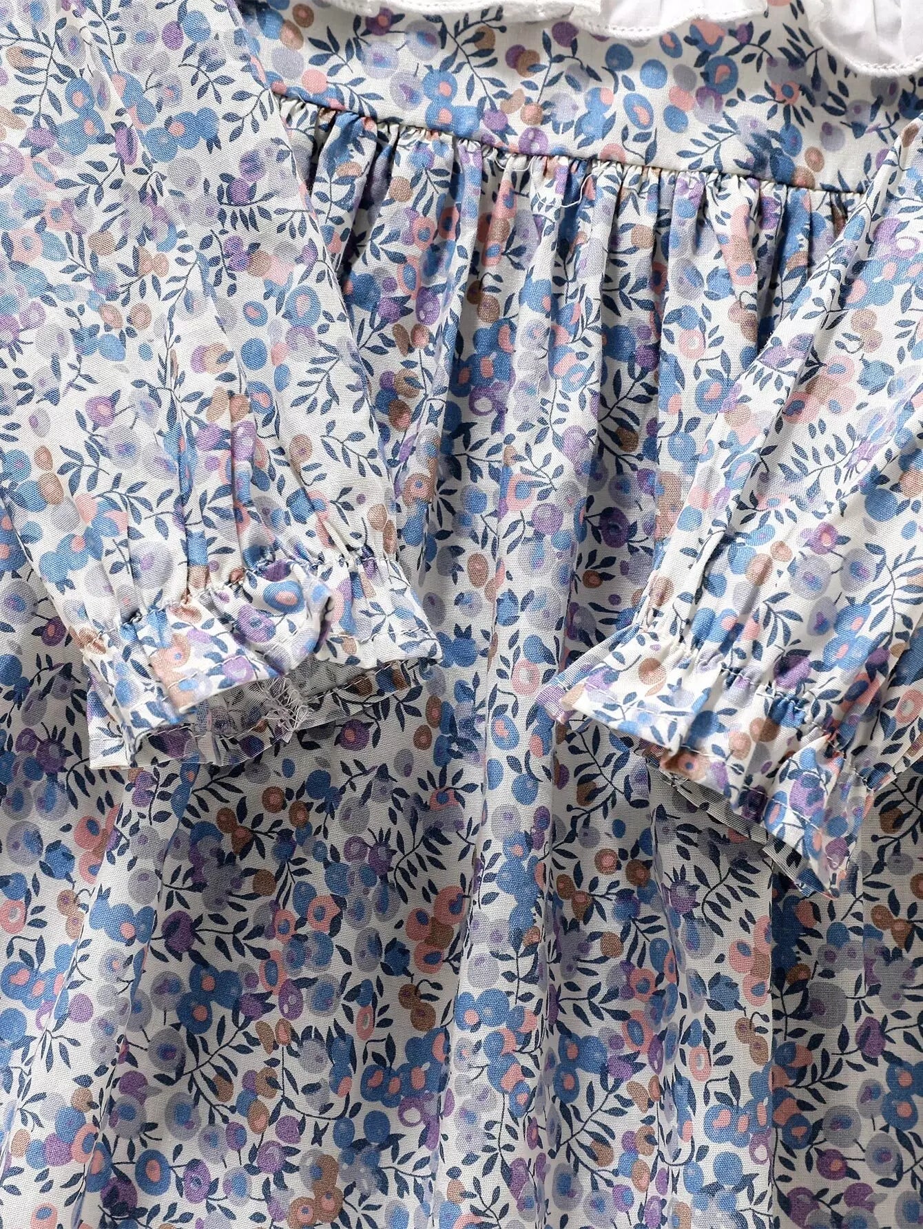 Toddler Girls Ditsy Floral Print Eyelet Embroidery Ruffle Trim Flounce Sleeve Dress