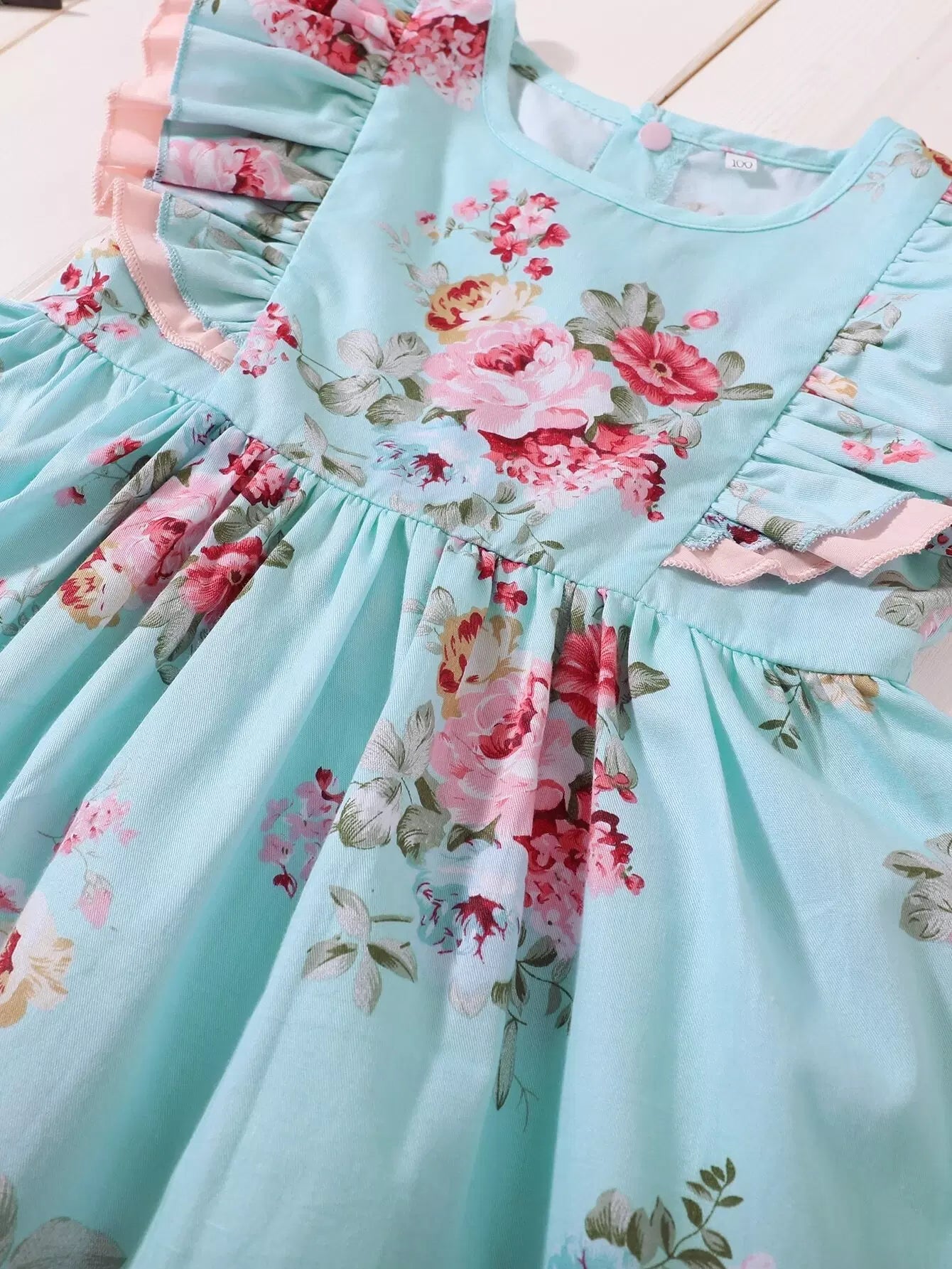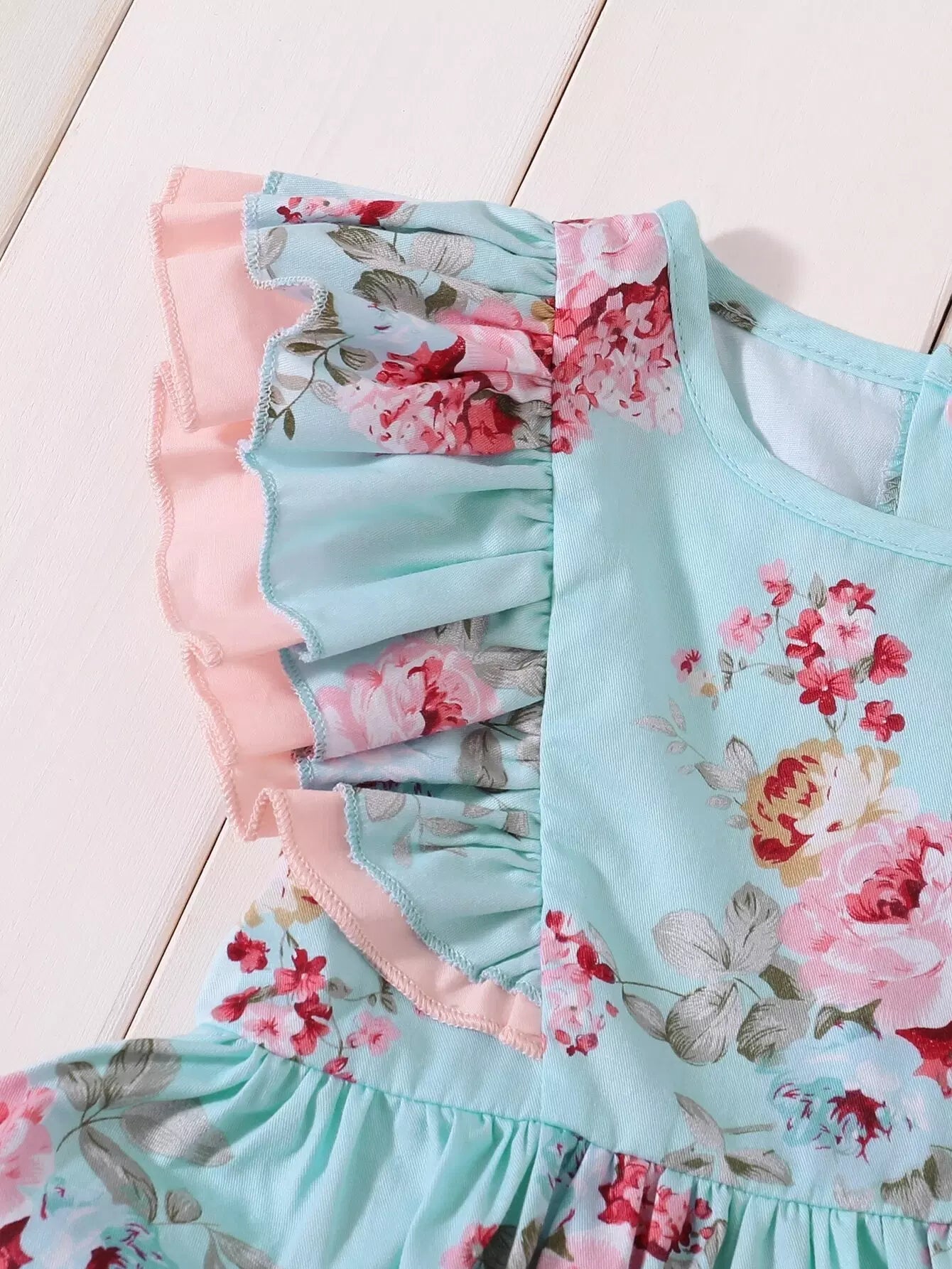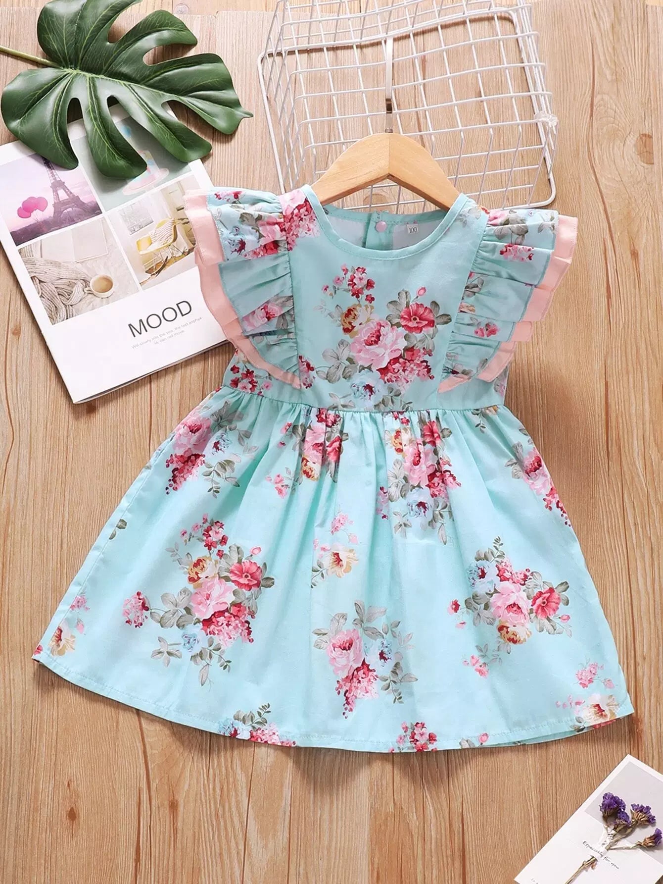 Toddler Girls Floral Print Ruffle Sleeve Smock Dress