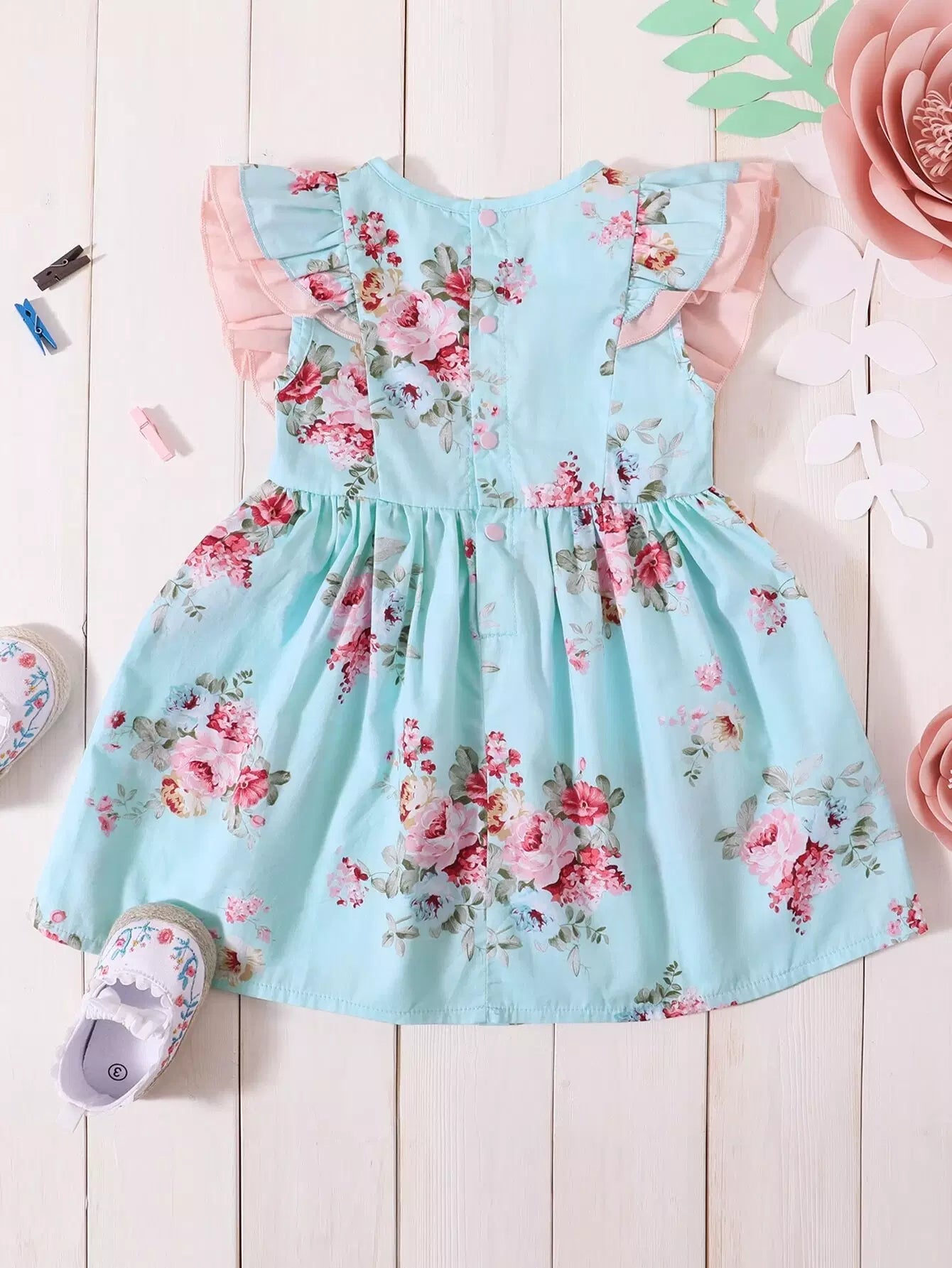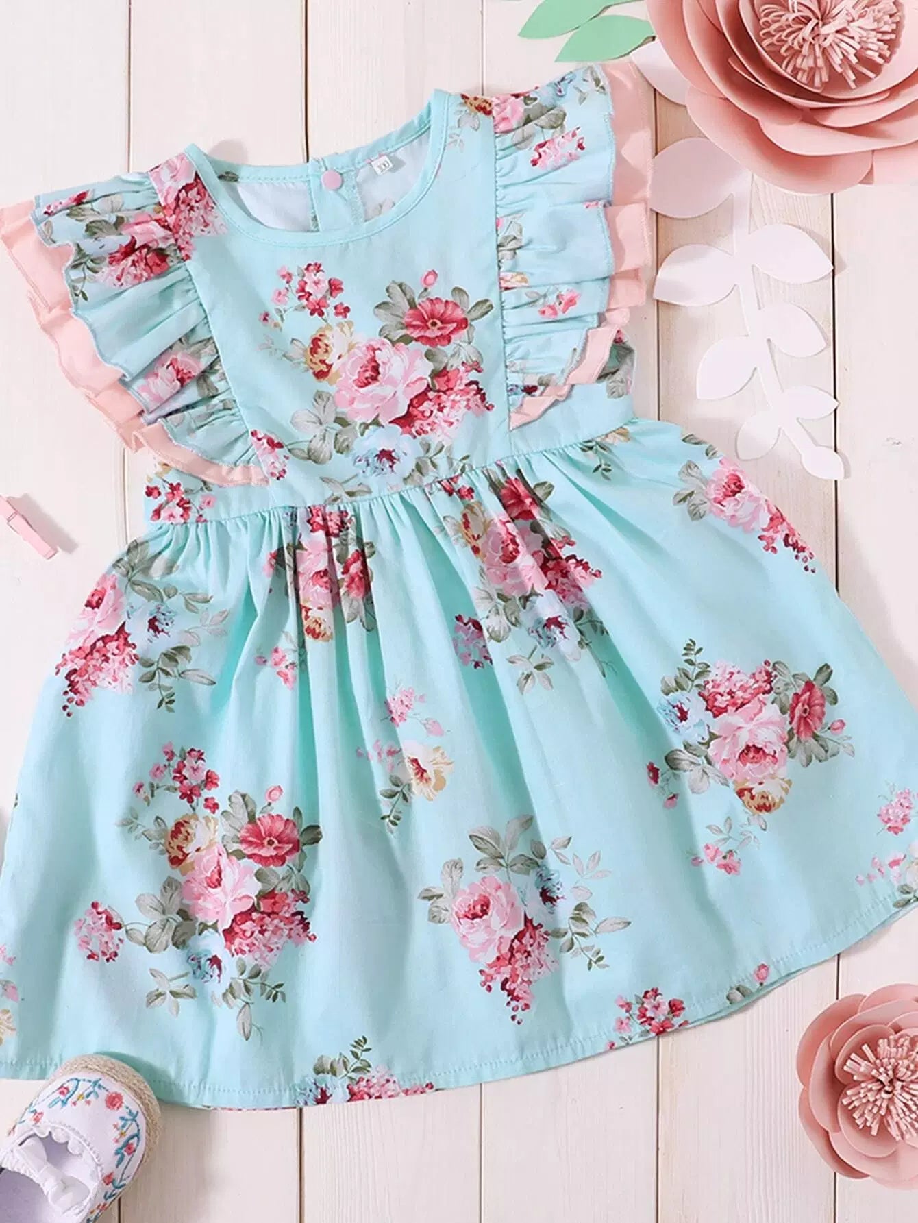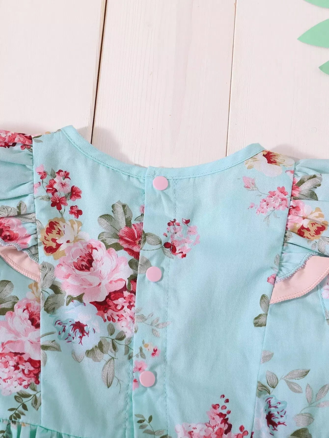 Kids - Toddler Girls Floral Print Ruffle Sleeve Smock Dress