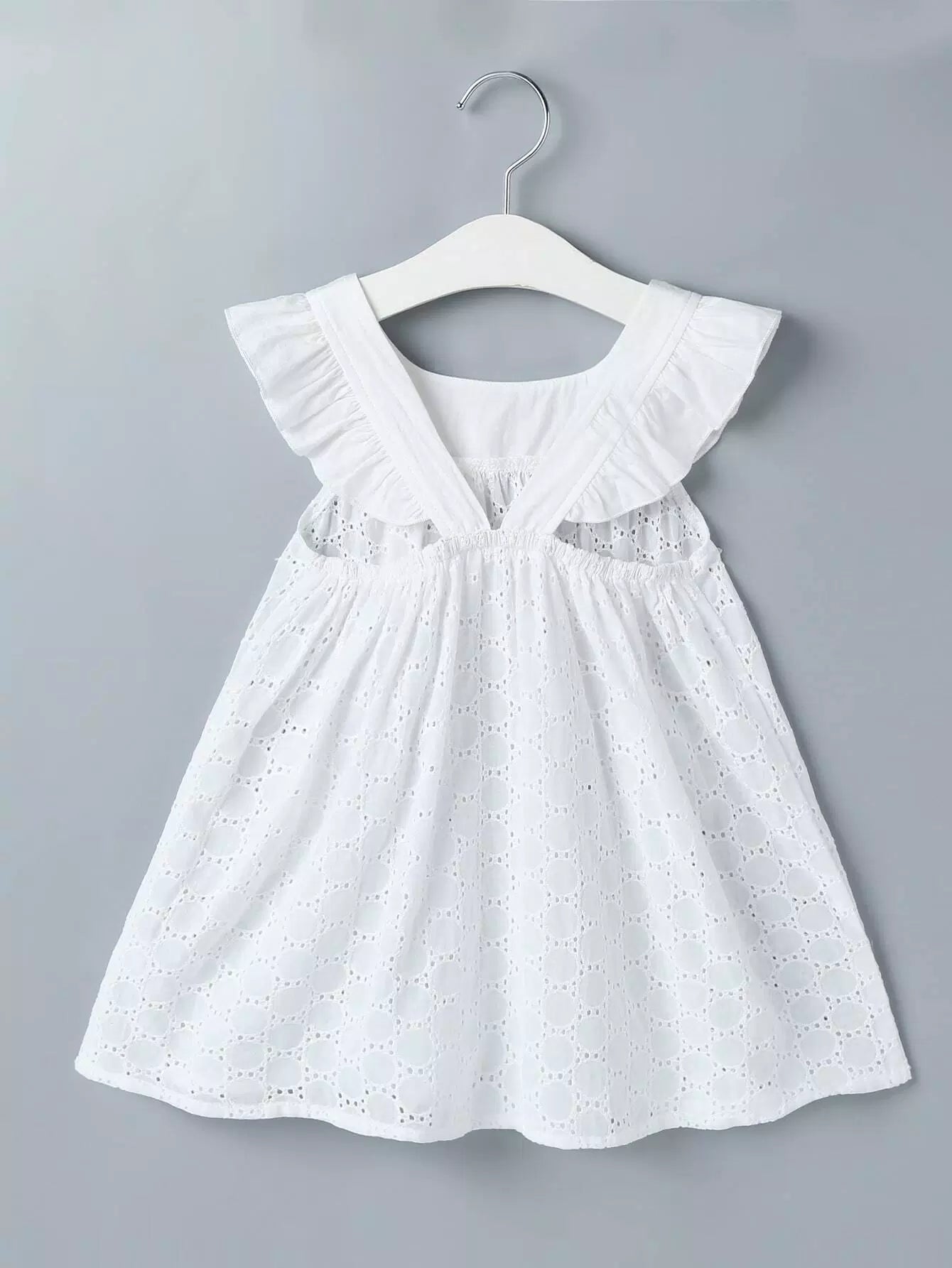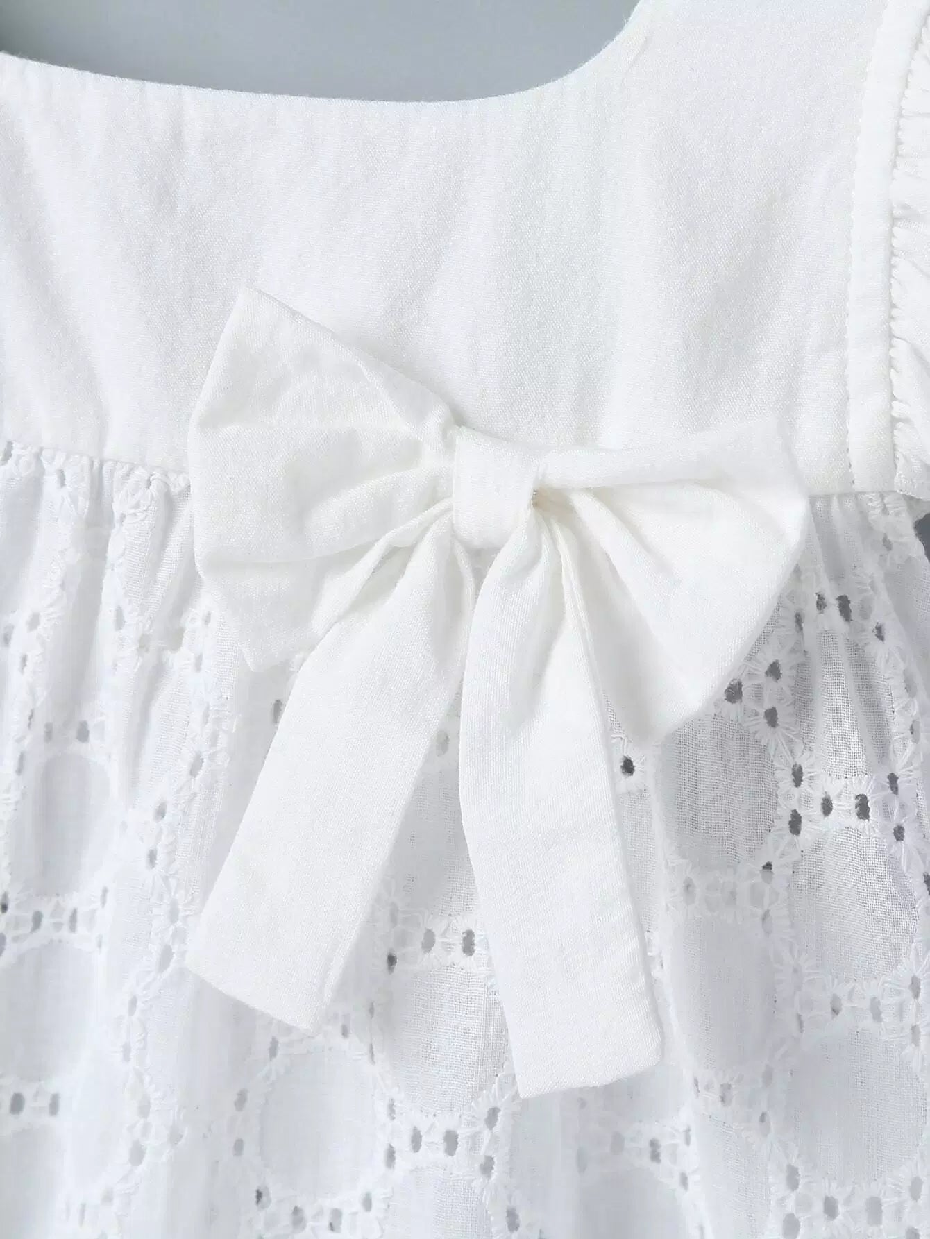 Toddler Girls Hollow Out Bow Front Babydoll Dress