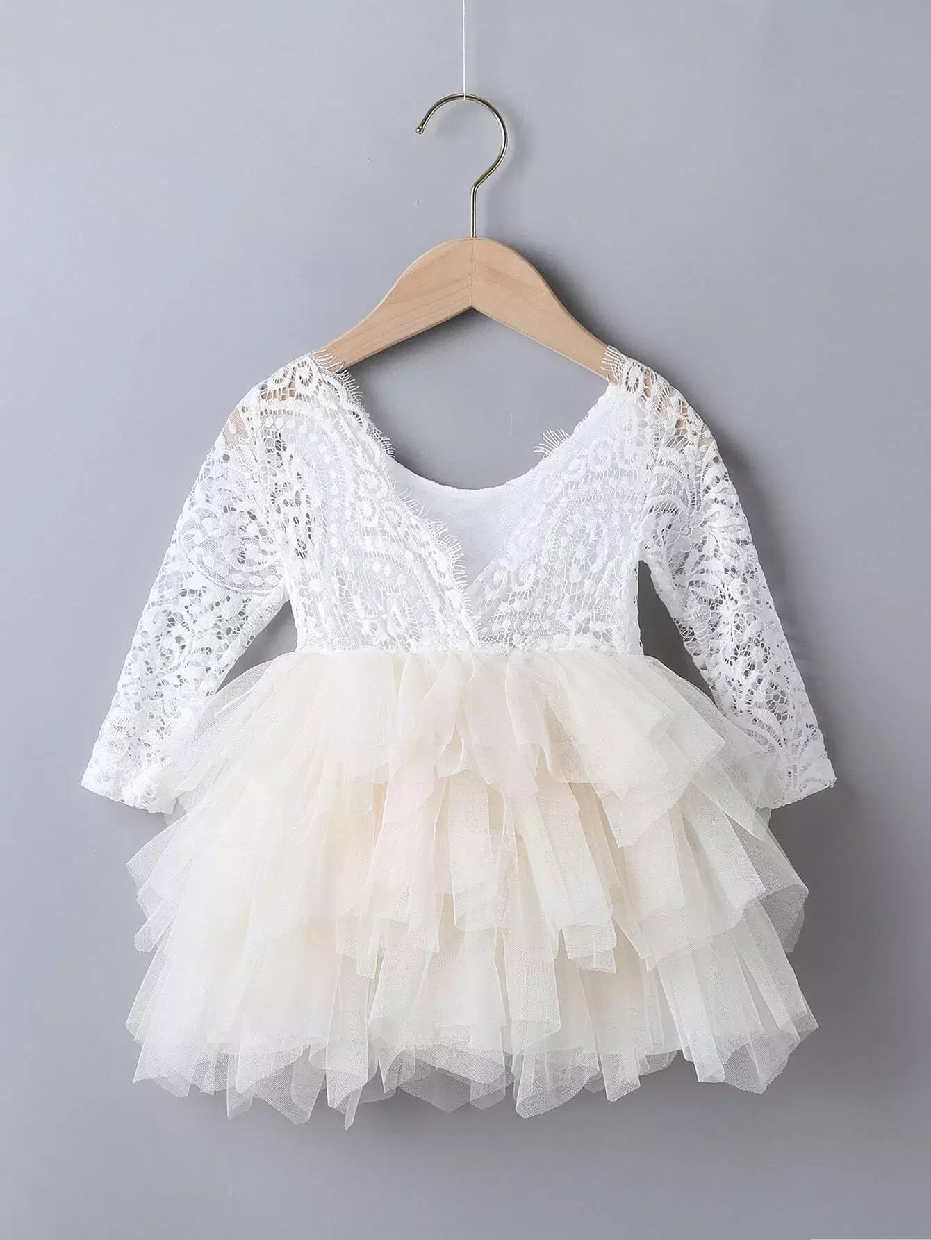 Toddler Girls Lace Panel Tiered Layer Tutu Dress
