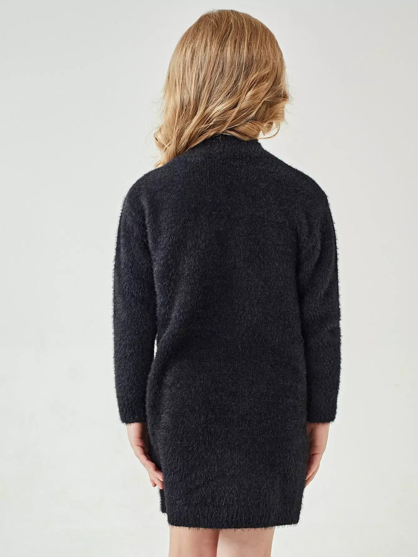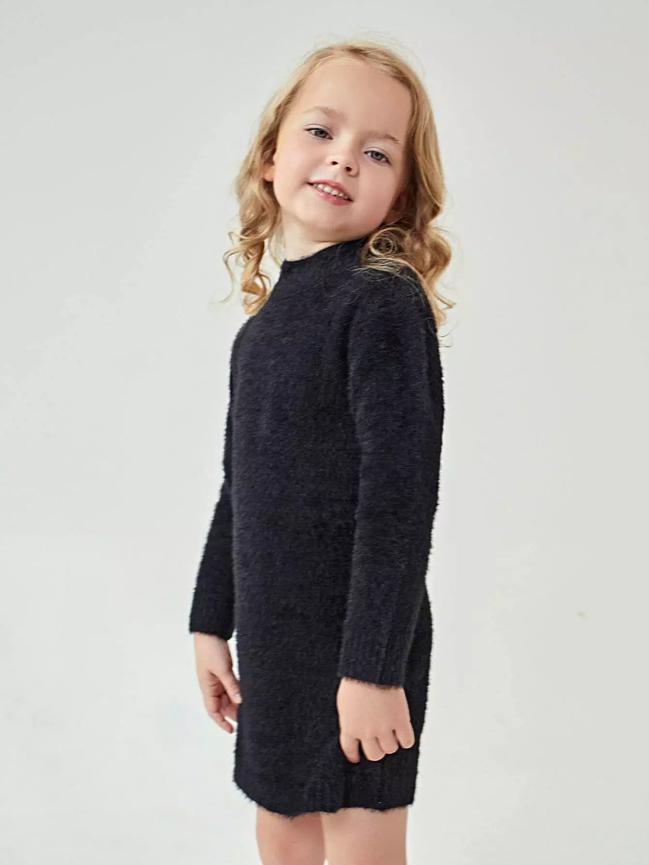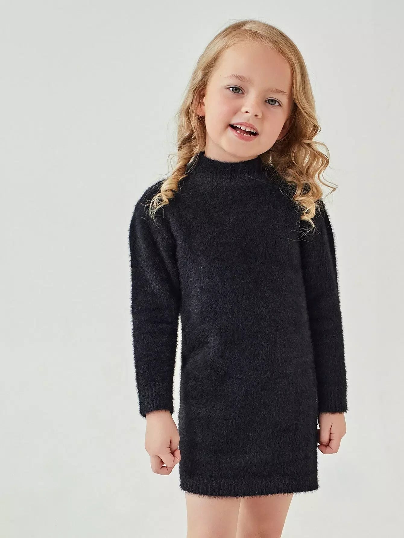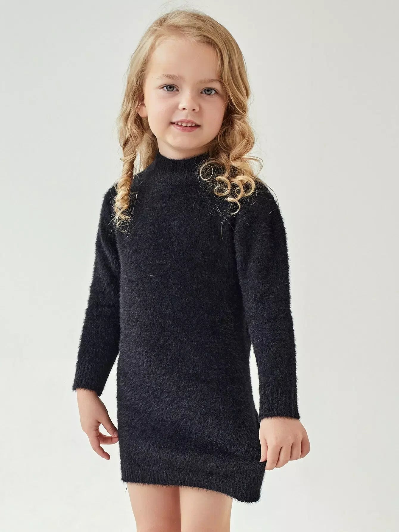 Toddler Girls Mock Neck Fuzzy Sweater Dress