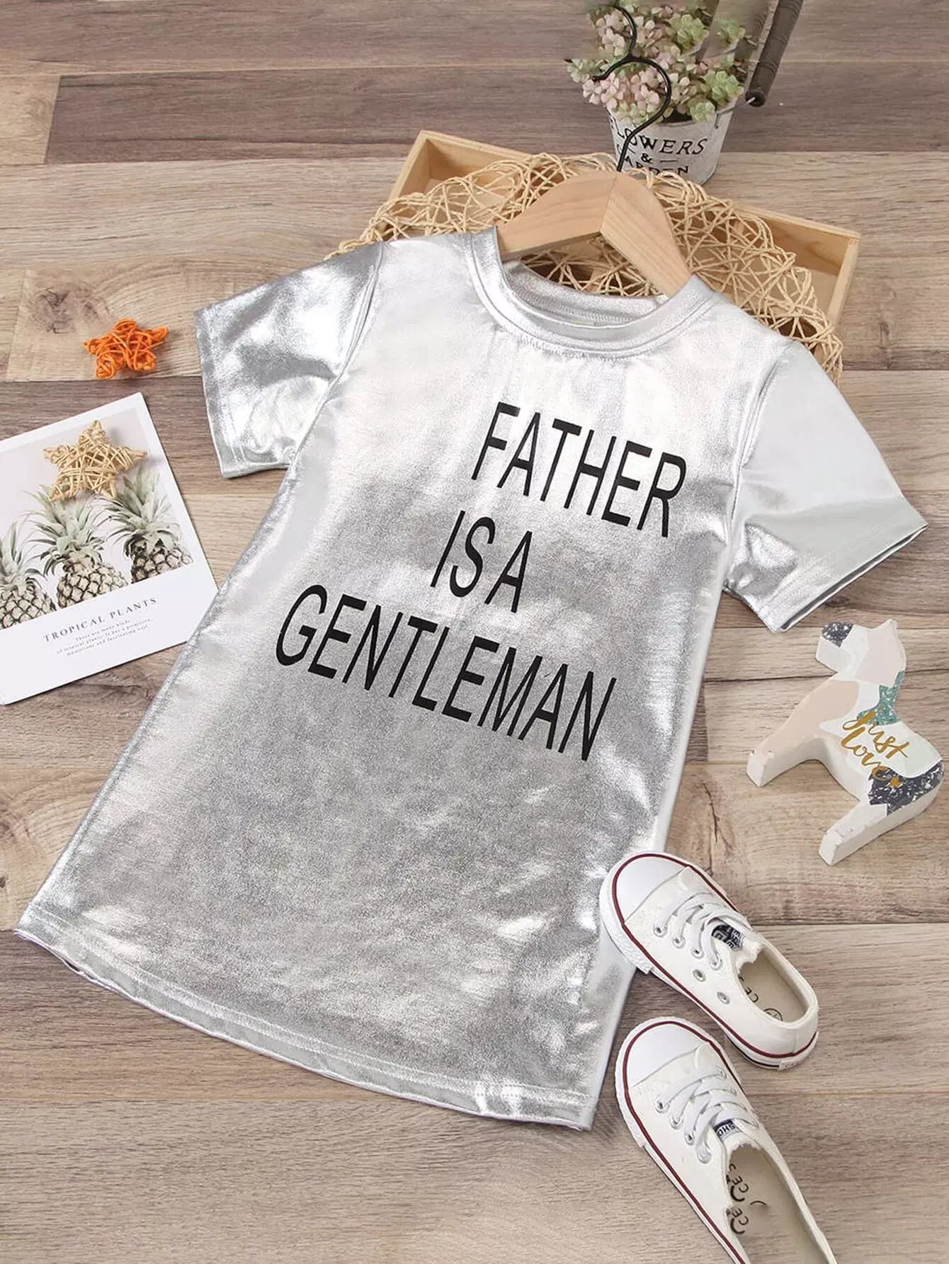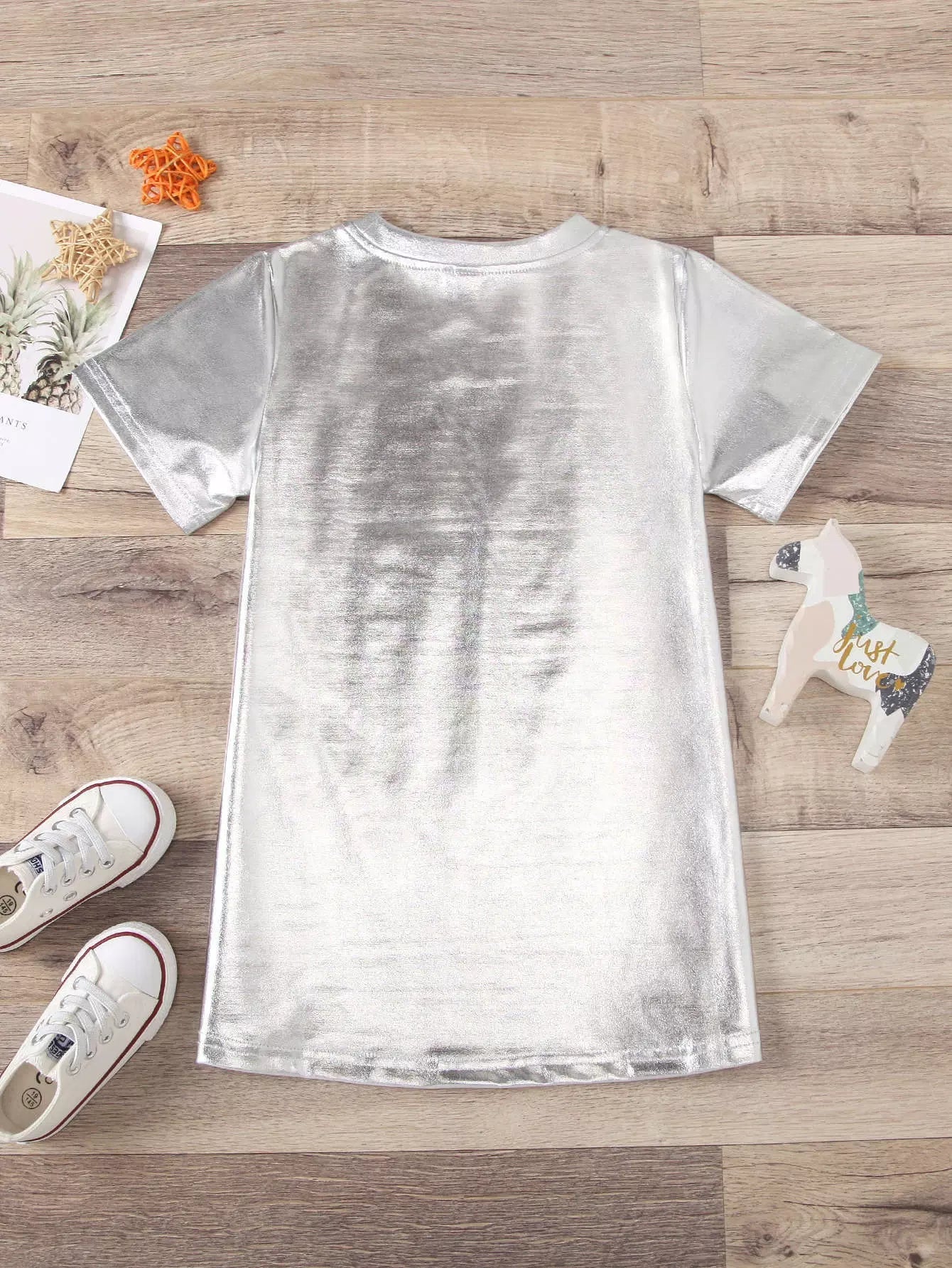 Kids - Toddler Girls PU Leather Slogan Graphic Dress