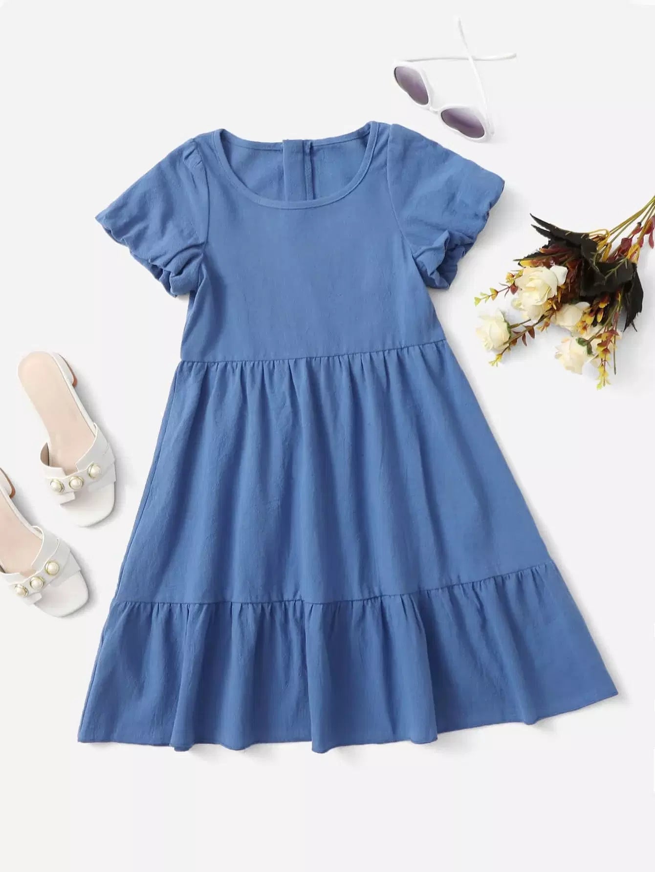 Toddler Girls Puff Sleeve Ruffle Hem Dress