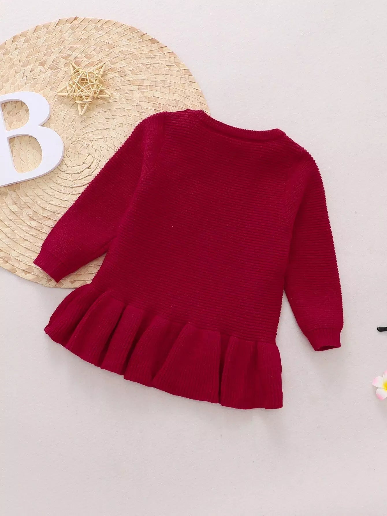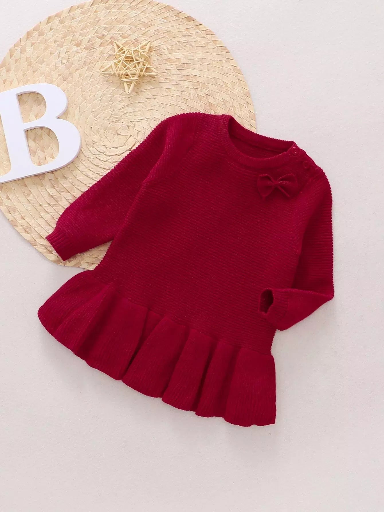 Toddler Girls Ruffle Hem Bow Detail Sweater Dress