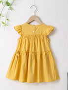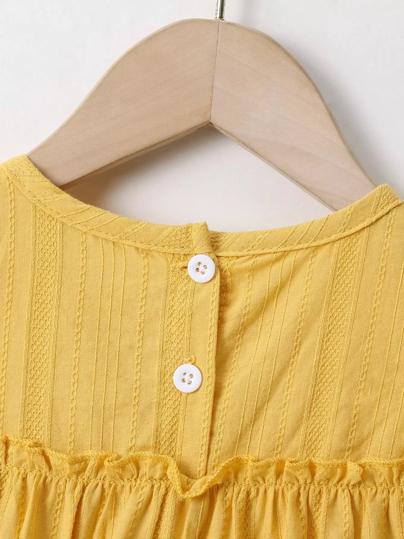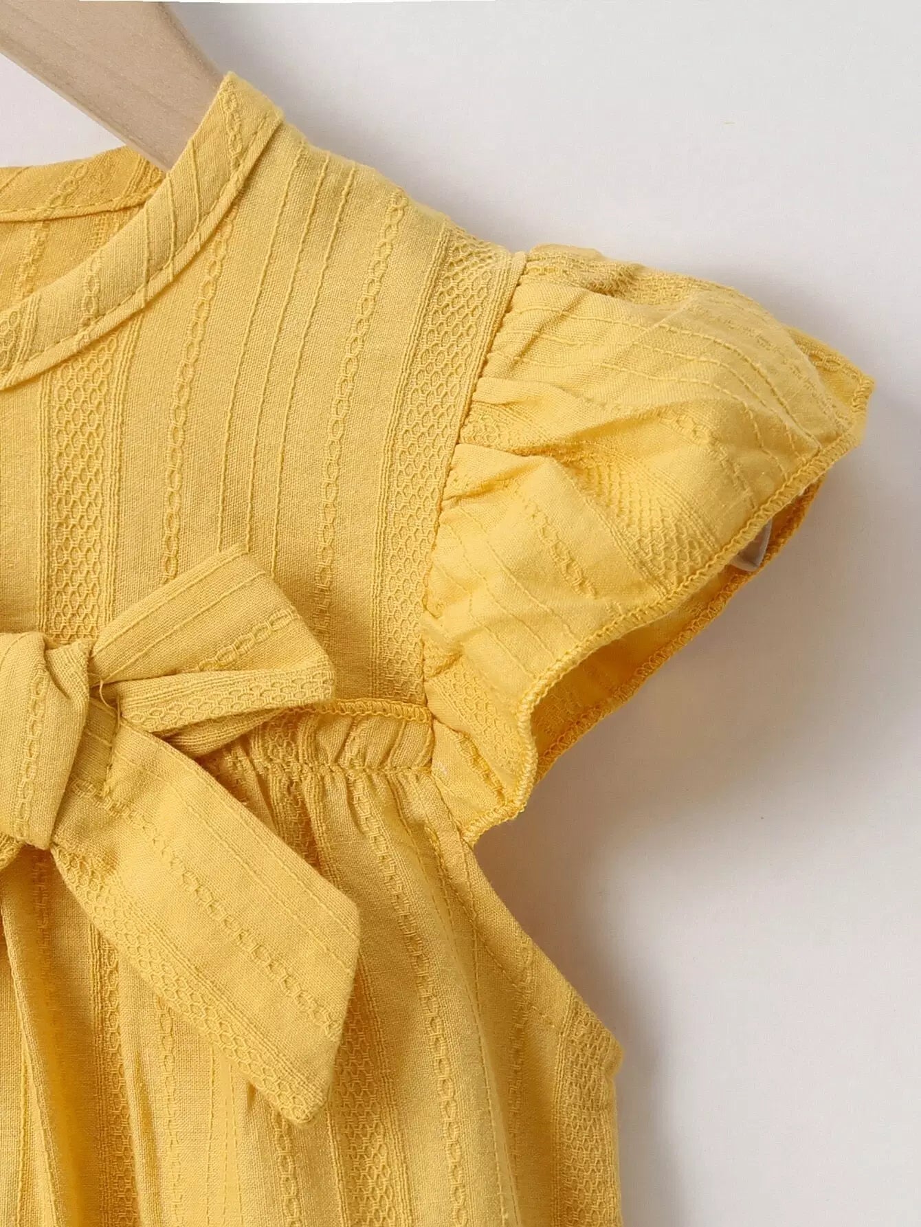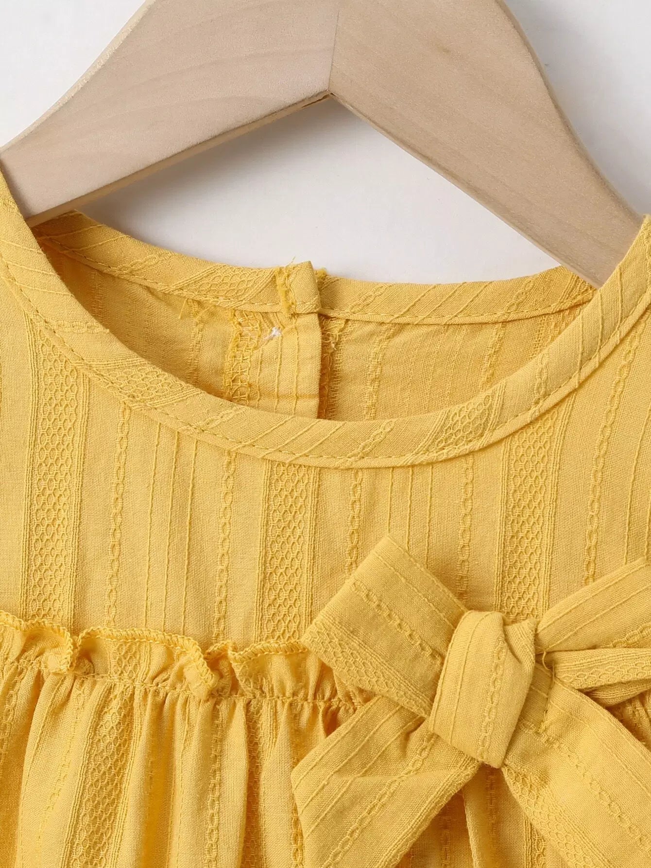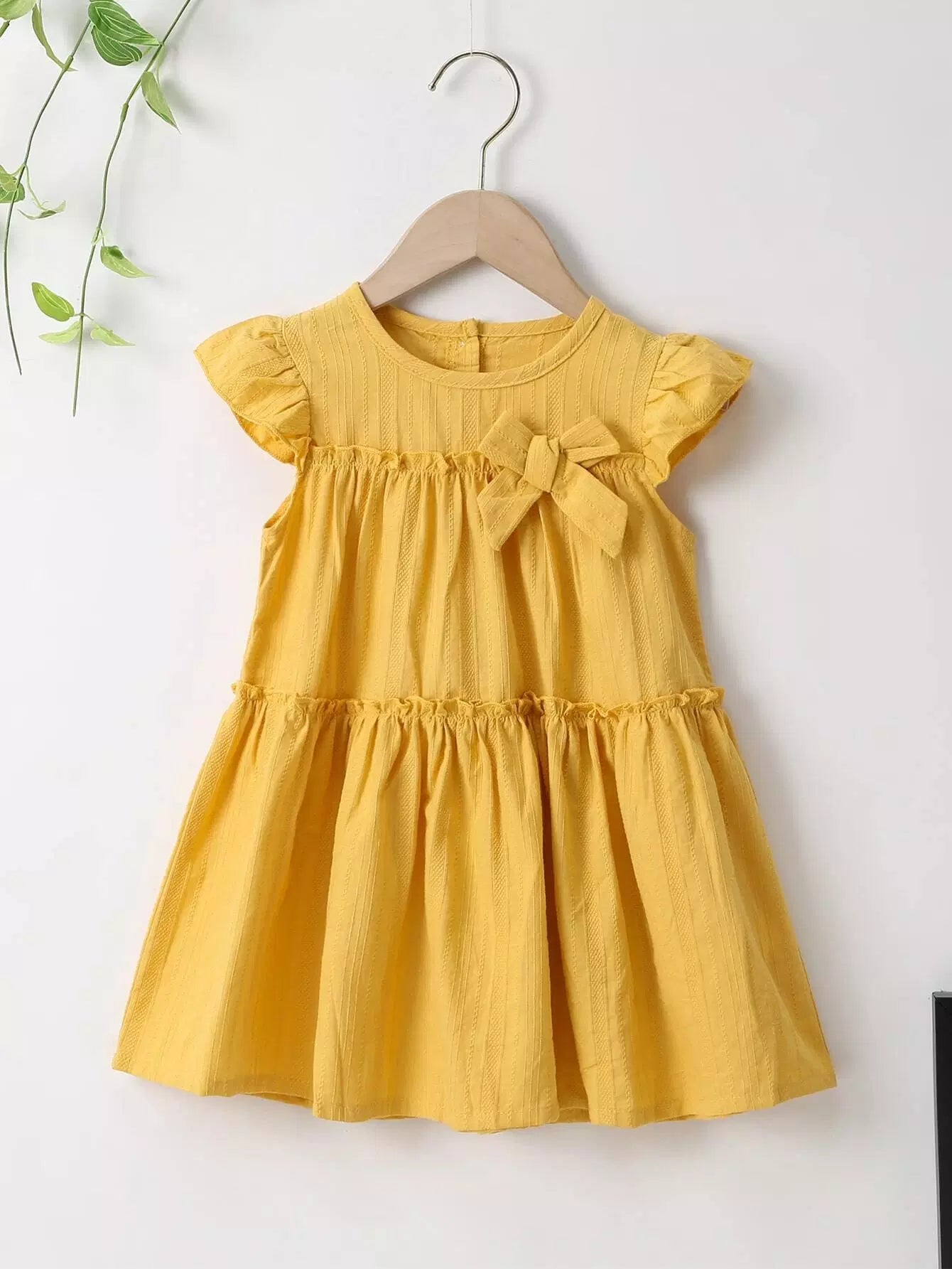 Toddler Girls Solid Bow Front Frill Trim Smock Dress